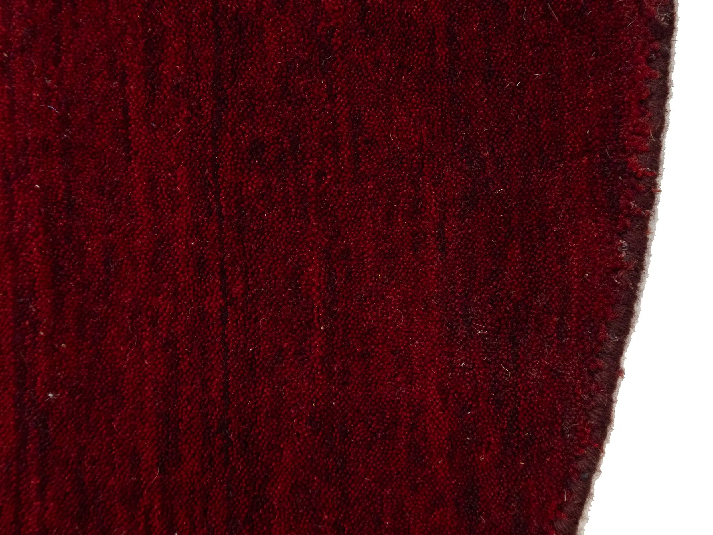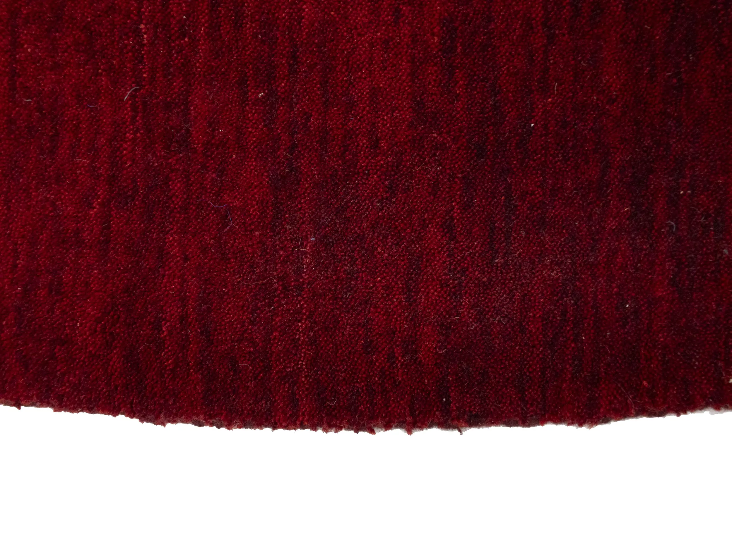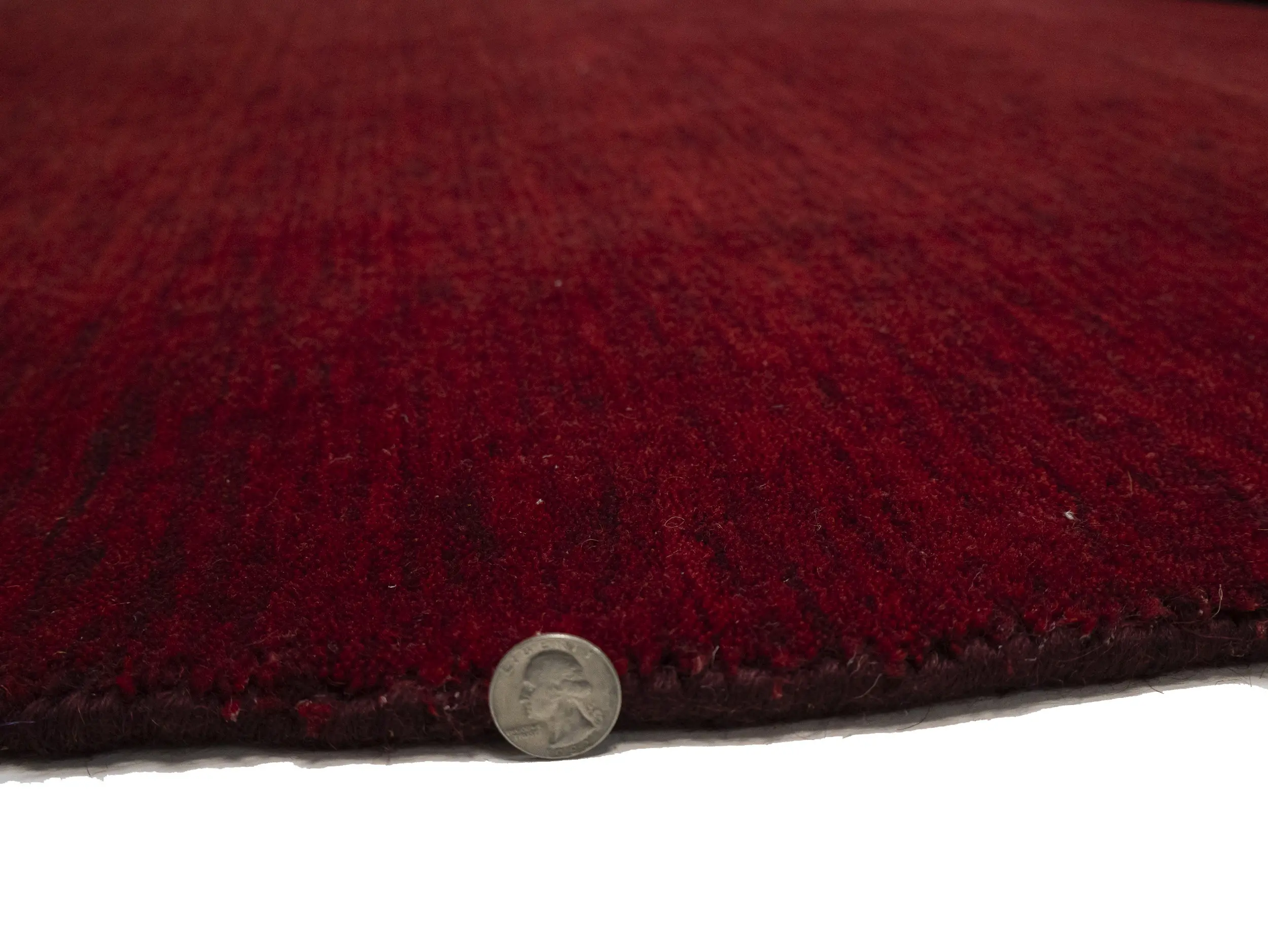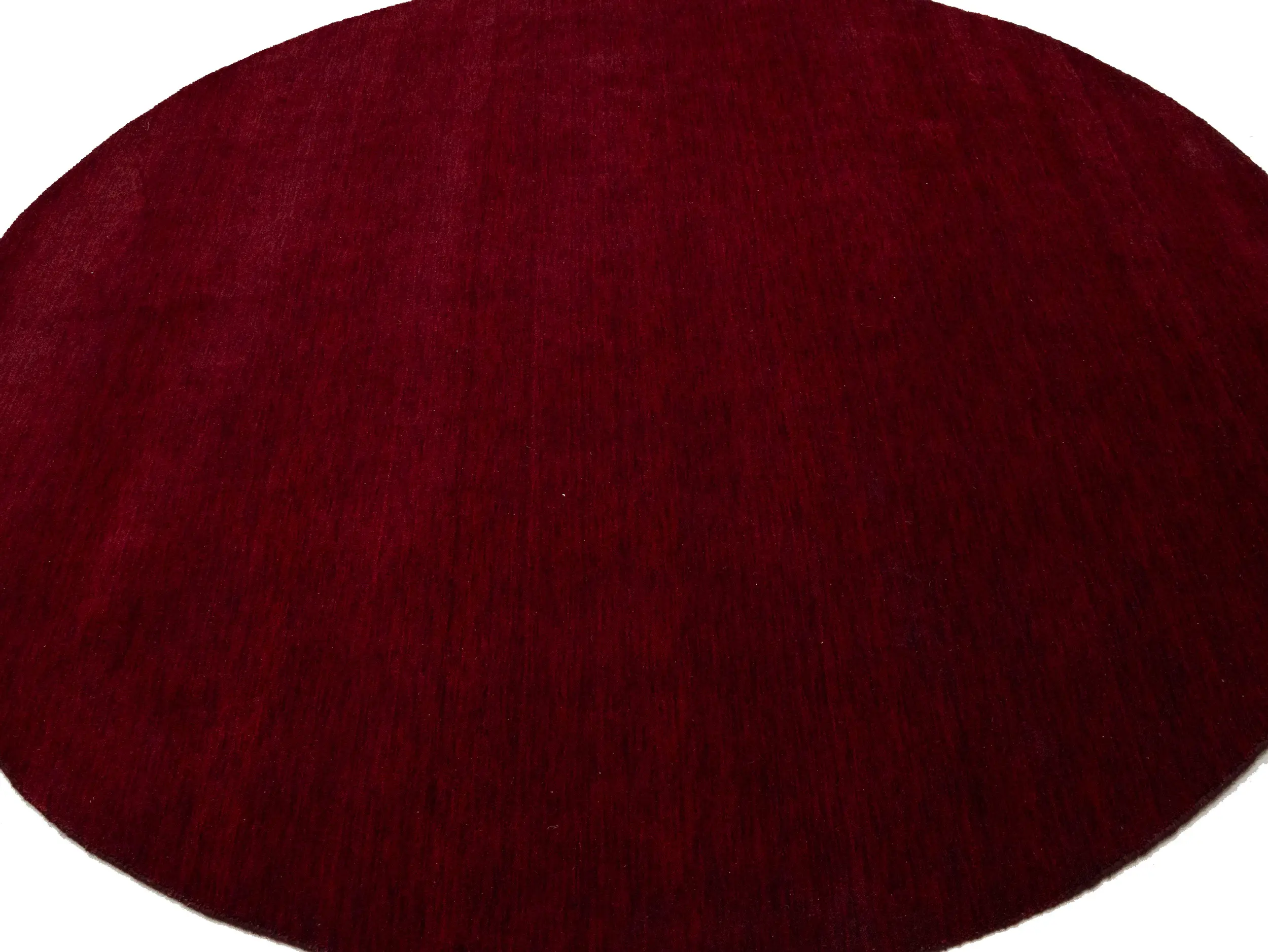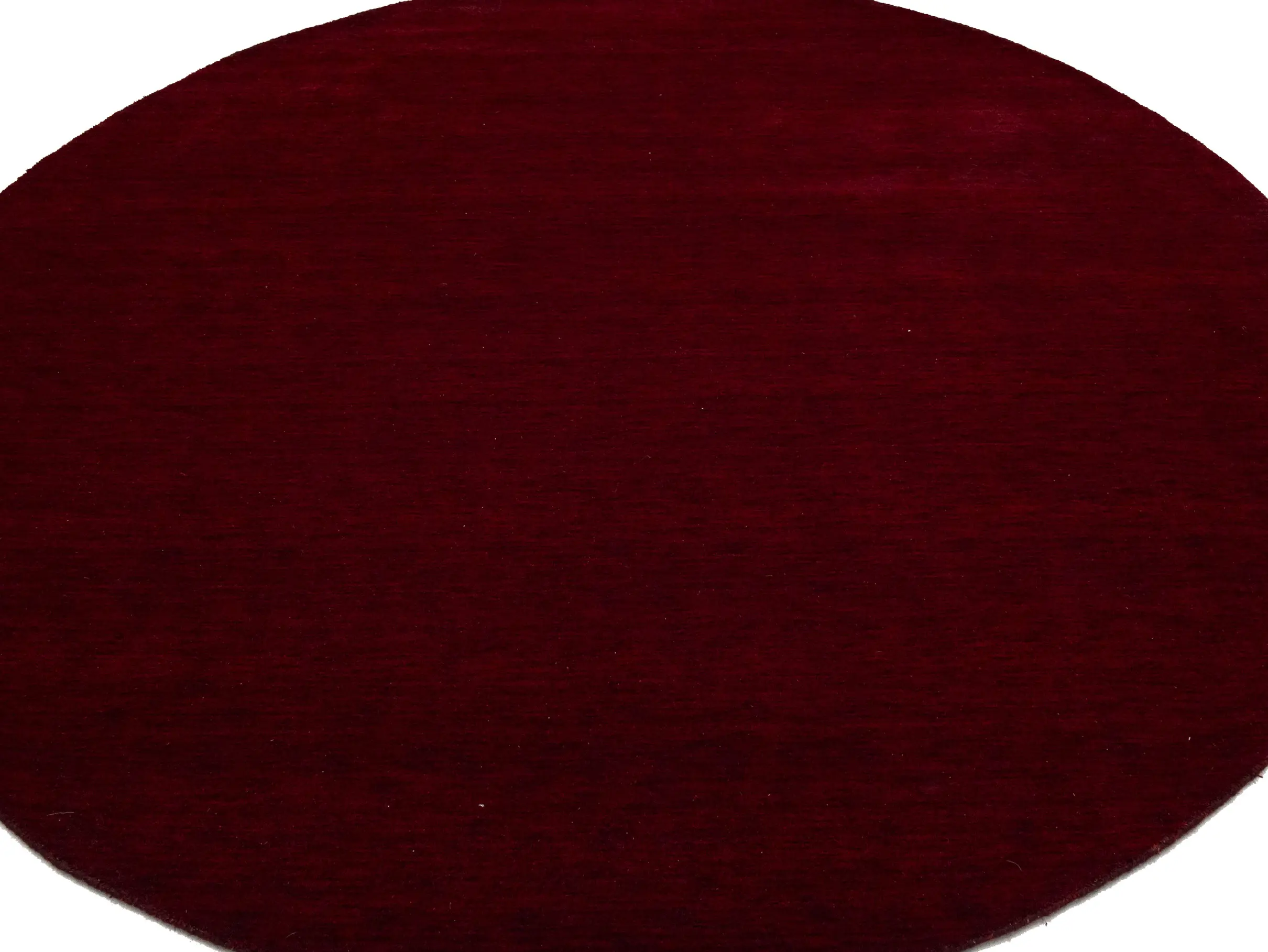This hand-loomed 8X8 Maroon Red Oriental Round rug from India features a modern, Solid design that seamlessly integrates traditional craftsmanship with contemporary style, showcasing a striking Maroon Red primary color. It provides a luxuriant softness and durability underfoot, as it is constructed from premium wool with a cotton foundation. The rug is optimized for high-traffic areas due to its medium pile height and knot density of 100 knots per square inch, which ensures durability and comfort. This rug, which is in exceptional condition and was recently manufactured, is an ideal complement to any contemporary setting, providing both versatility and timeless elegance.