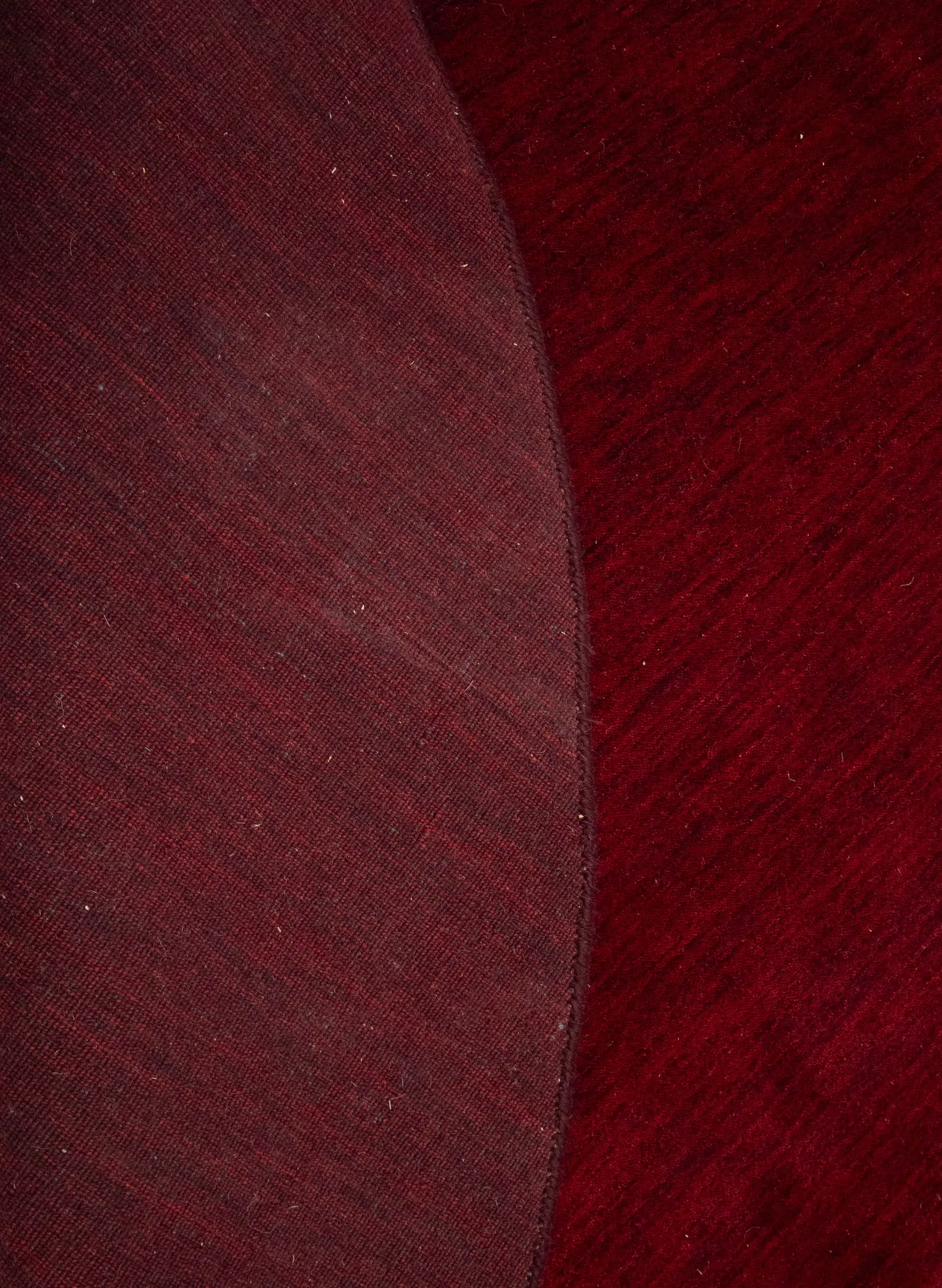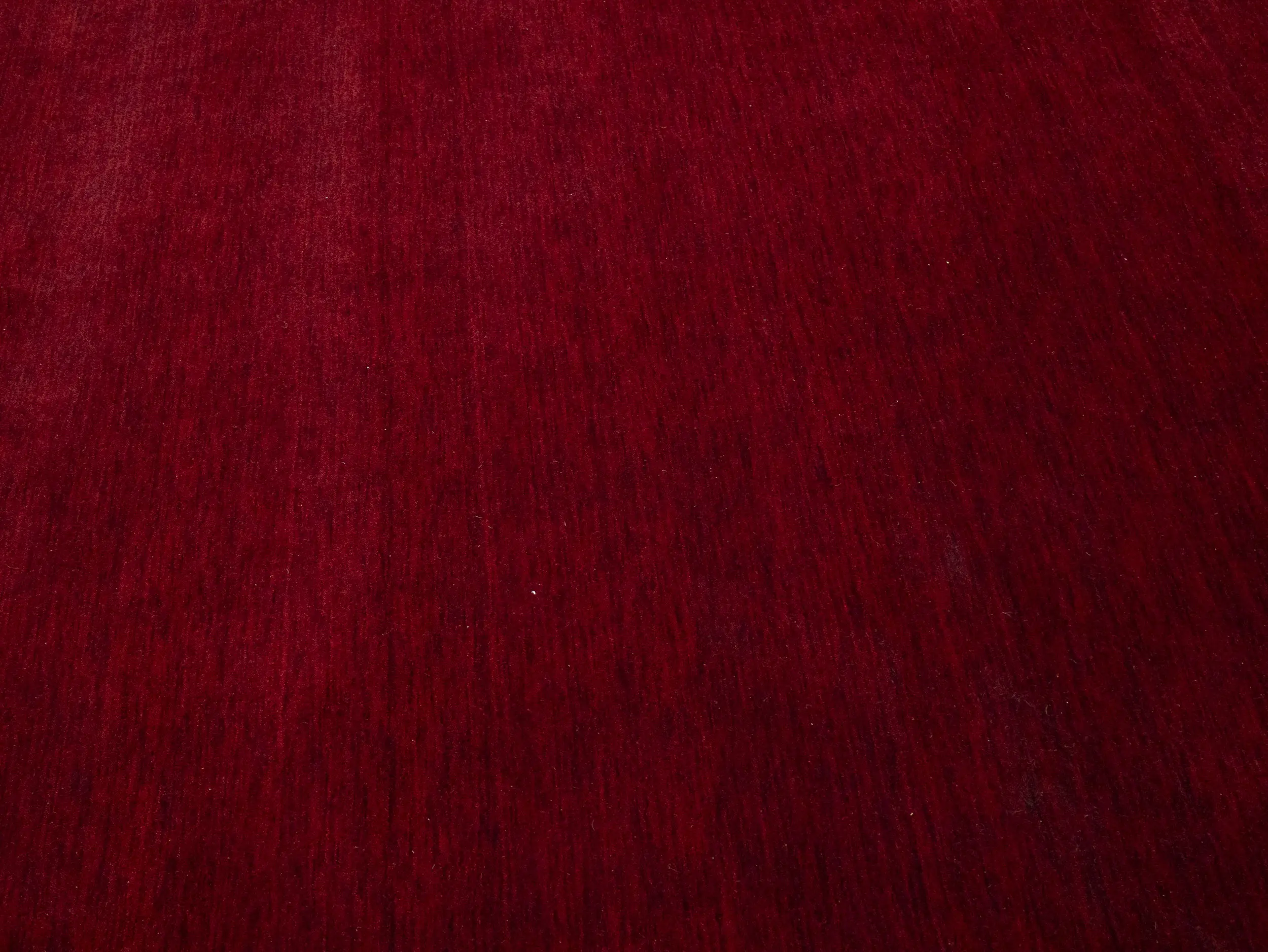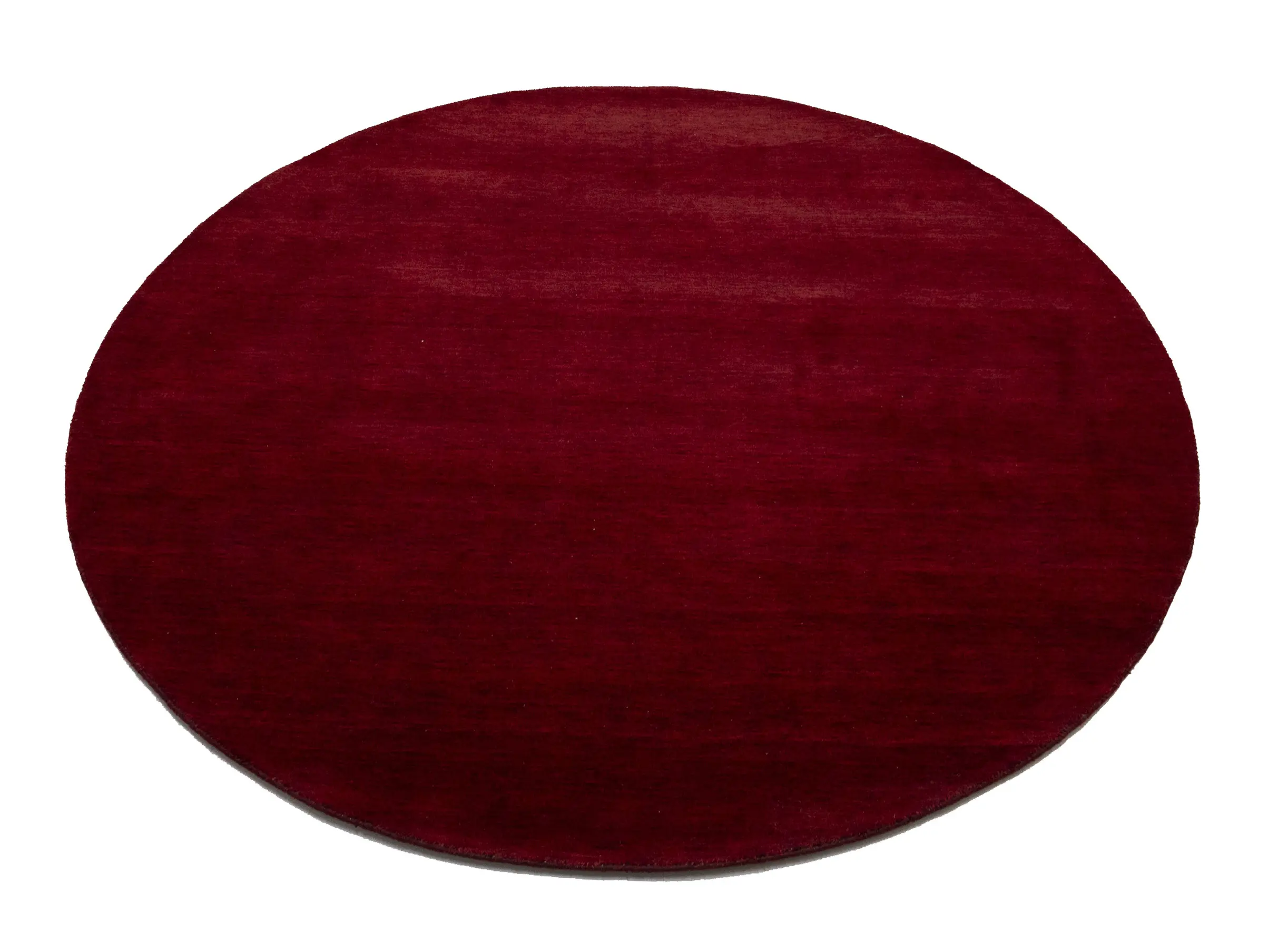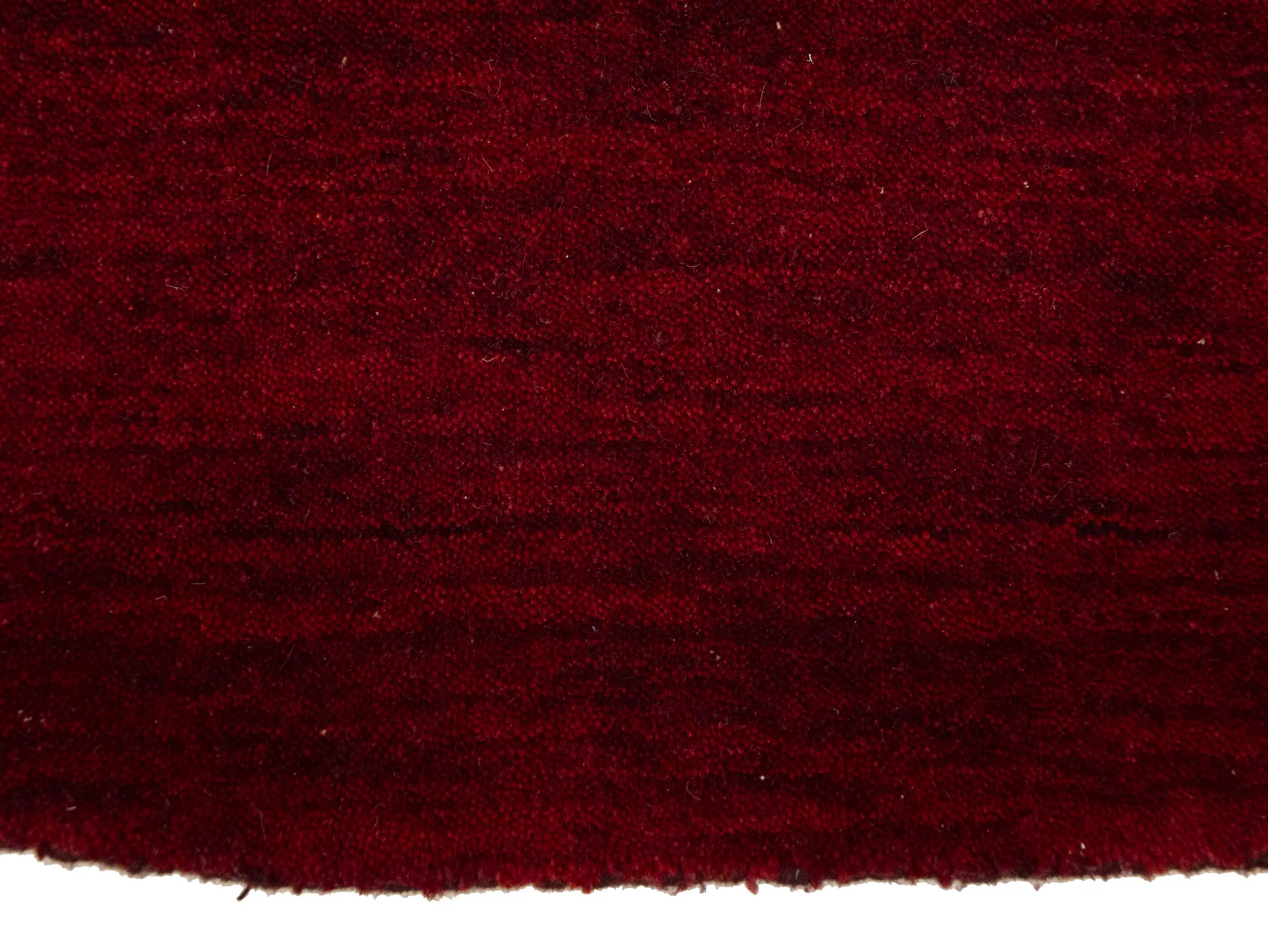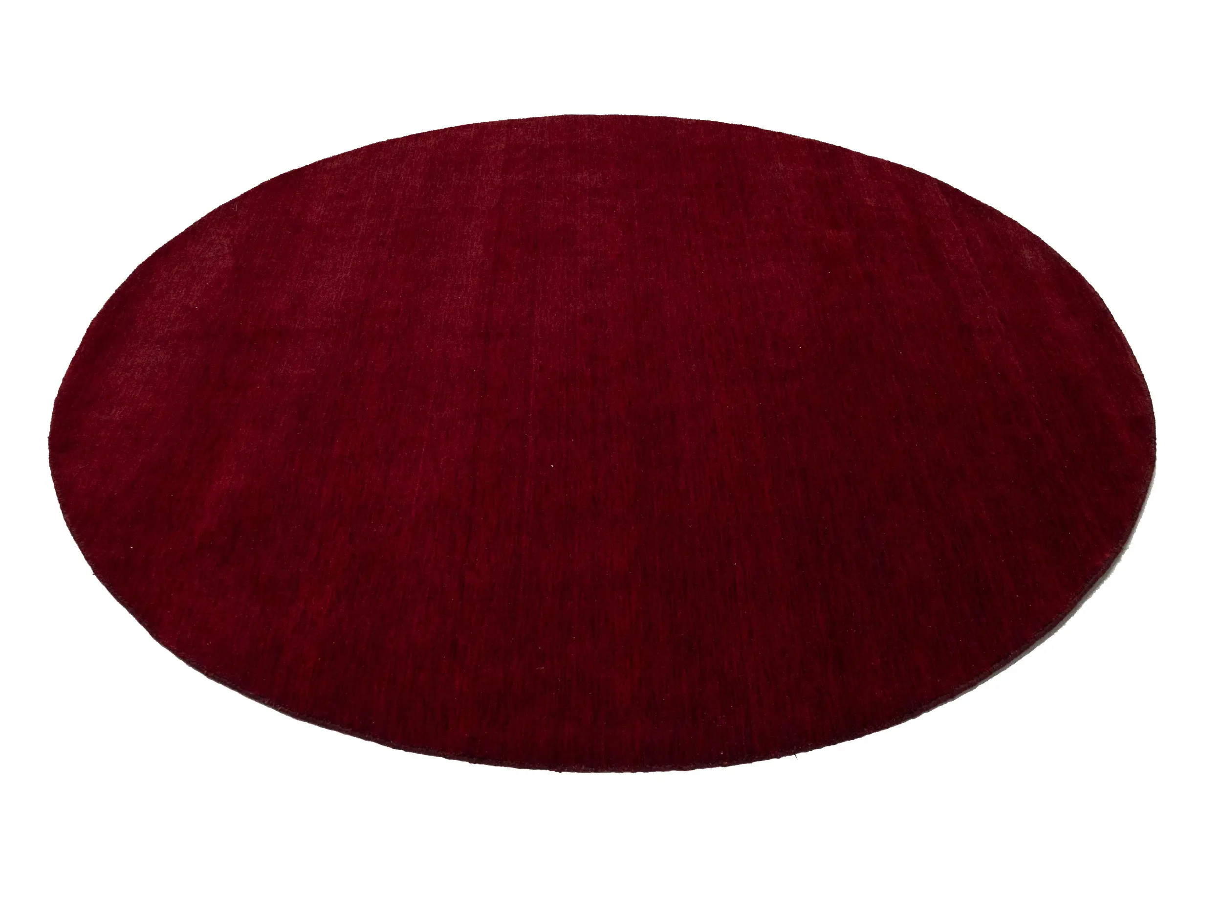 This hand-loomed 8X8 Maroon Red Oriental Round rug from India features a modern, Solid design that seamlessly integrates traditional craftsmanship with contemporary style, showcasing a striking Maroon Red primary color. It provides a luxuriant softness and durability underfoot, as it is constructed from premium wool with a cotton foundation. The rug is optimized for high-traffic areas due to its medium pile height and knot density of 100 knots per square inch, which ensures durability and comfort. This rug, which is in exceptional condition and was recently manufactured, is an ideal complement to any contemporary setting, providing both versatility and timeless elegance.