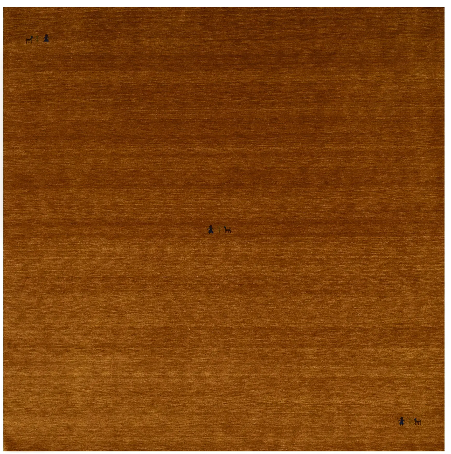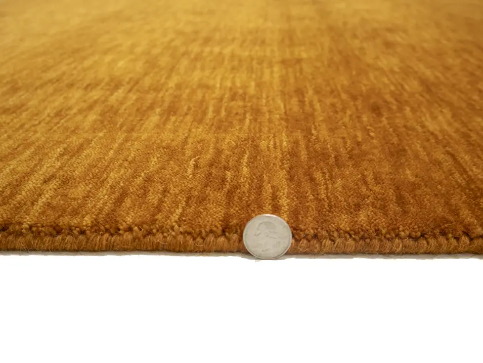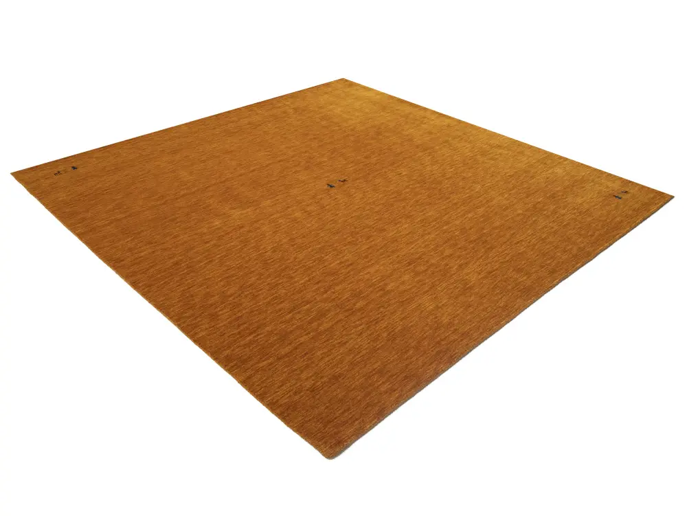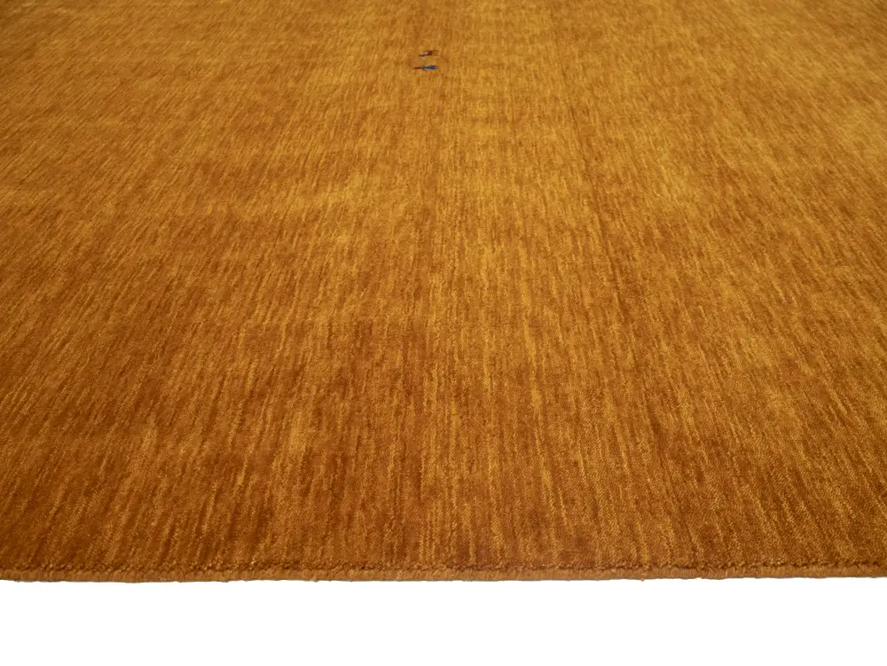This hand-loomed 8X8 Orange Oriental Square rug from India features a modern, Solid design that seamlessly integrates traditional craftsmanship with contemporary style, showcasing a striking Orange primary color. It provides a luxuriant softness and durability underfoot, as it is constructed from premium wool with a cotton foundation. The rug is optimized for high-traffic areas due to its medium pile height and knot density of 100 knots per square inch, which ensures durability and comfort. This rug, which is in exceptional condition and was recently manufactured, is an ideal complement to any contemporary setting, providing both versatility and timeless elegance.