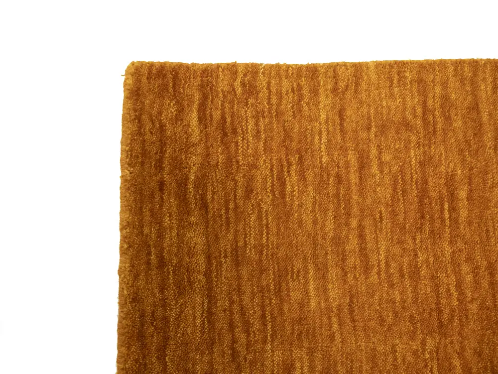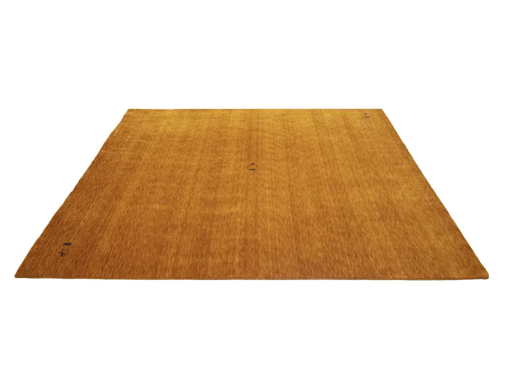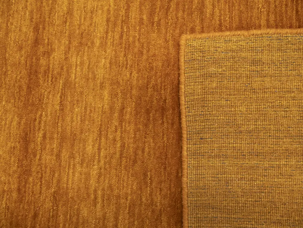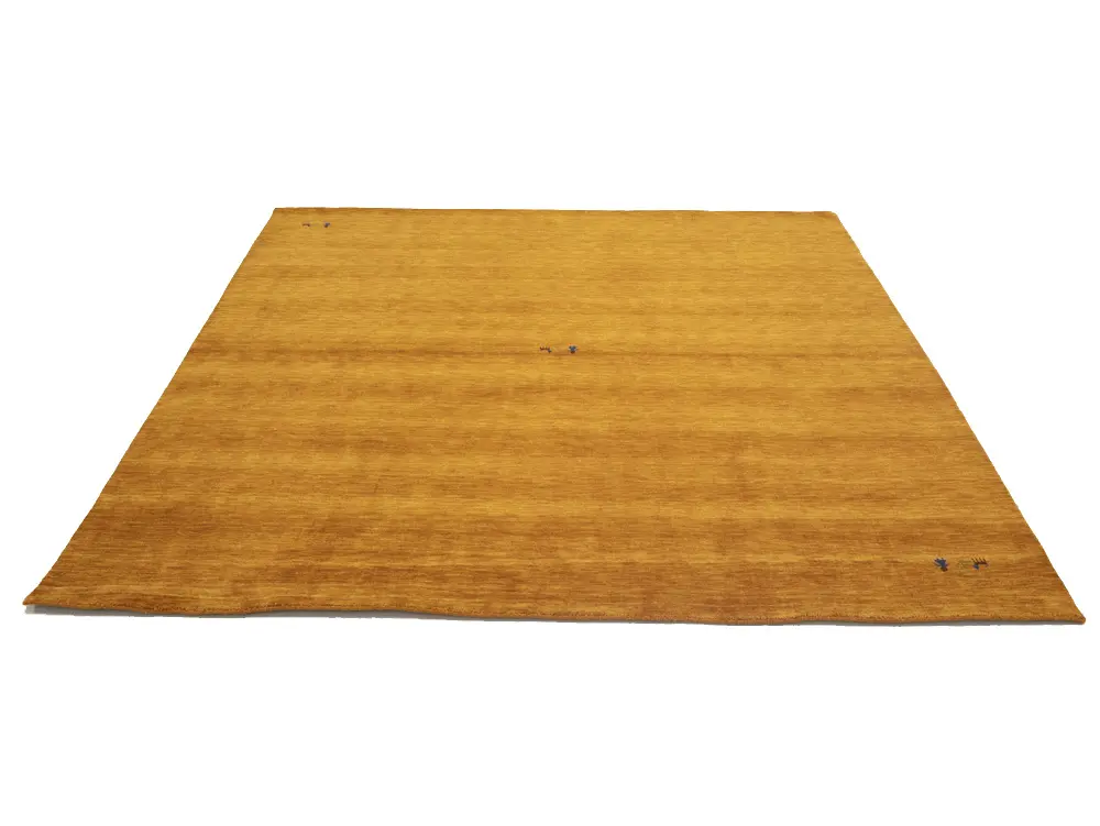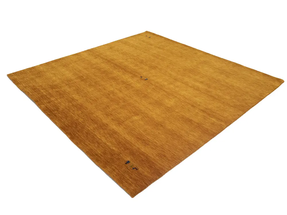 This hand-loomed 8X8 Orange Oriental Square rug from India features a modern, Solid design that seamlessly integrates traditional craftsmanship with contemporary style, showcasing a striking Orange primary color. It provides a luxuriant softness and durability underfoot, as it is constructed from premium wool with a cotton foundation. The rug is optimized for high-traffic areas due to its medium pile height and knot density of 100 knots per square inch, which ensures durability and comfort. This rug, which is in exceptional condition and was recently manufactured, is an ideal complement to any contemporary setting, providing both versatility and timeless elegance.