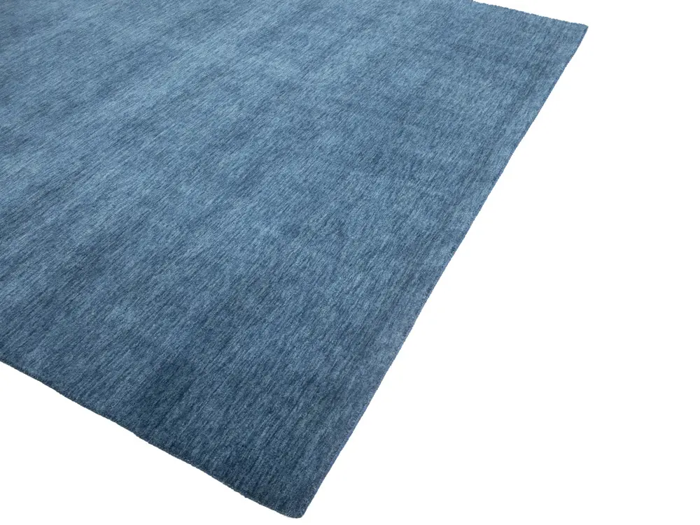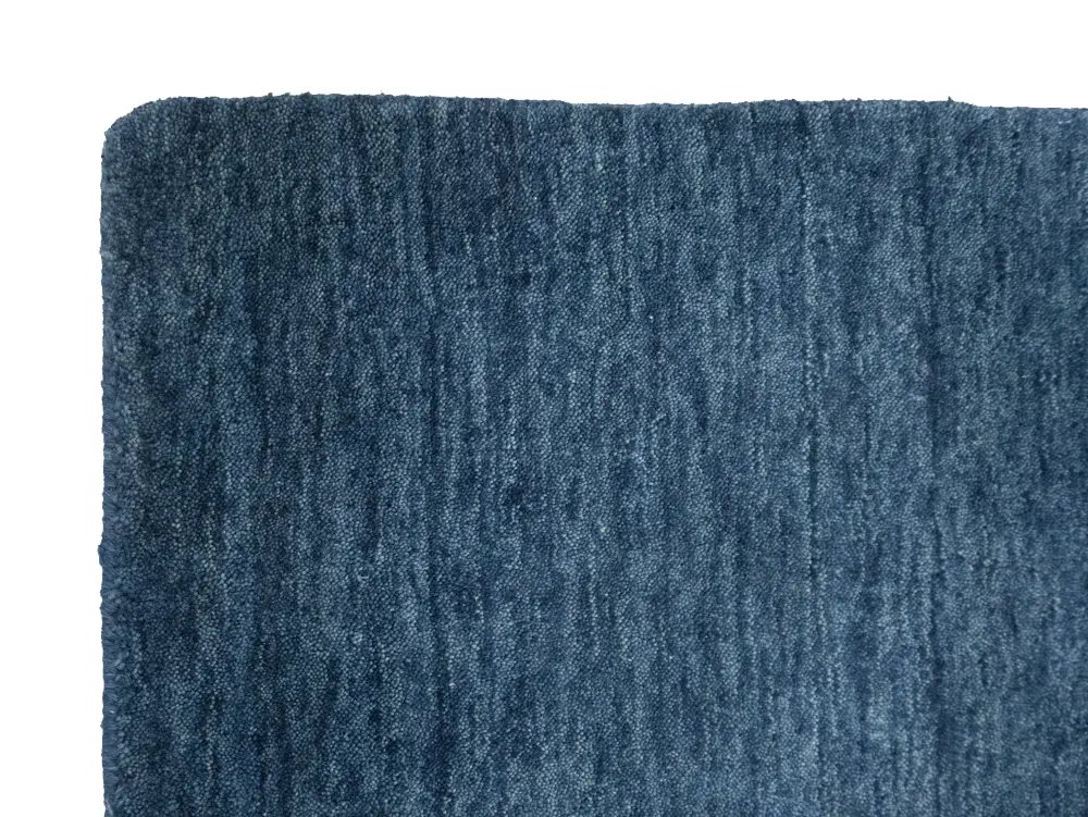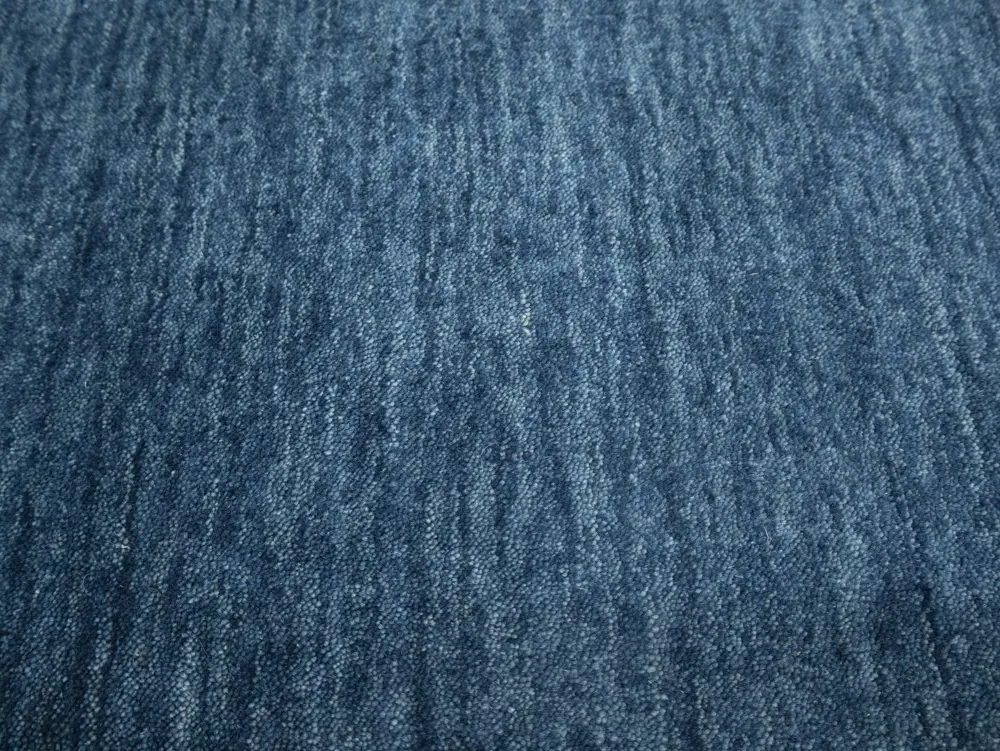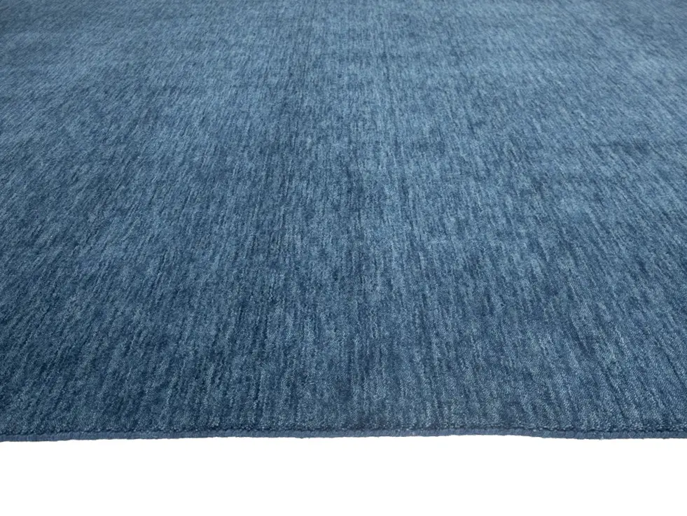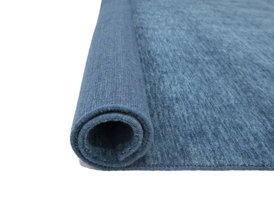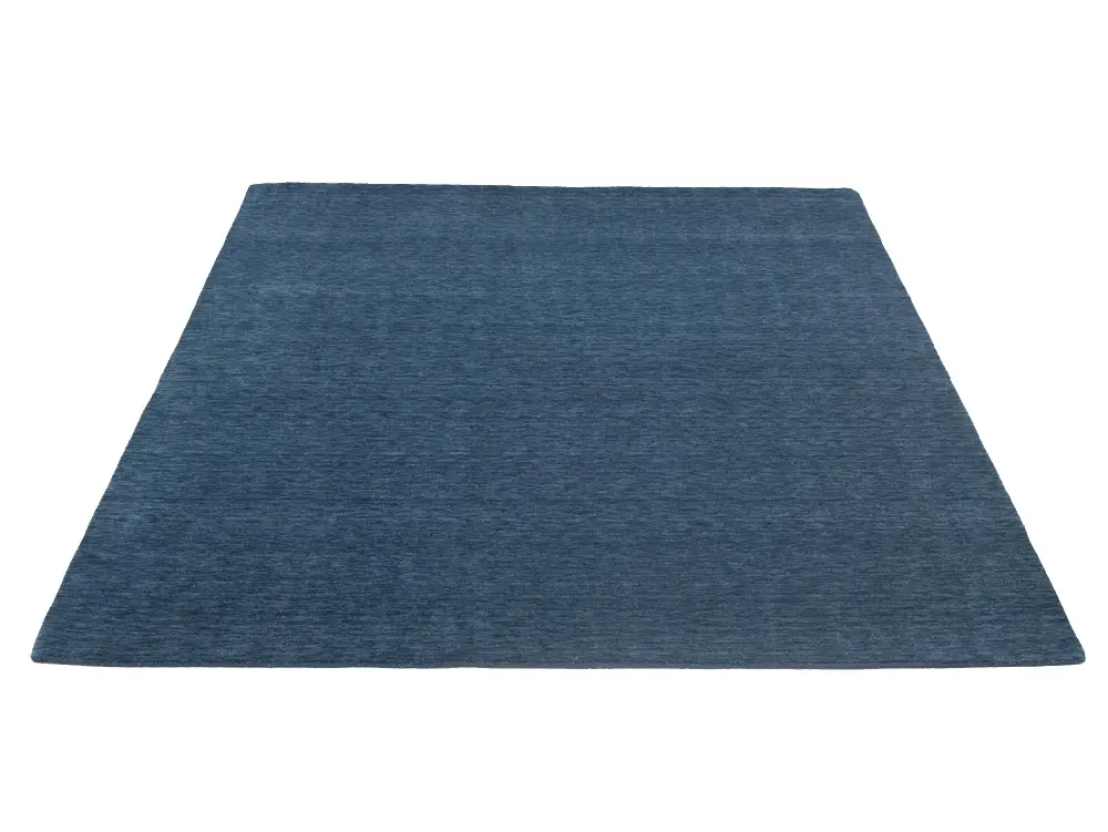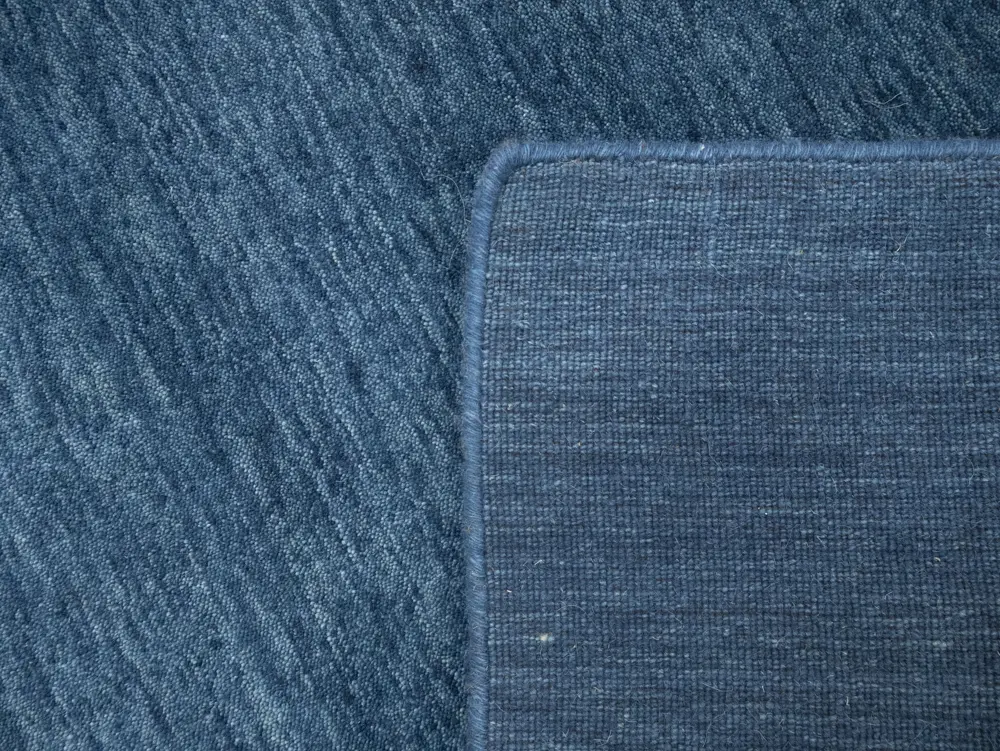 This hand-loomed 8X8 Steel Blue Oriental Square rug from India features a modern, Solid design that seamlessly integrates traditional craftsmanship with contemporary style, showcasing a striking Steel Blue primary color. It provides a luxuriant softness and durability underfoot, as it is constructed from premium wool with a cotton foundation. The rug is optimized for high-traffic areas due to its medium pile height and knot density of 100 knots per square inch, which ensures durability and comfort. This rug, which is in exceptional condition and was recently manufactured, is an ideal complement to any contemporary setting, providing both versatility and timeless elegance.