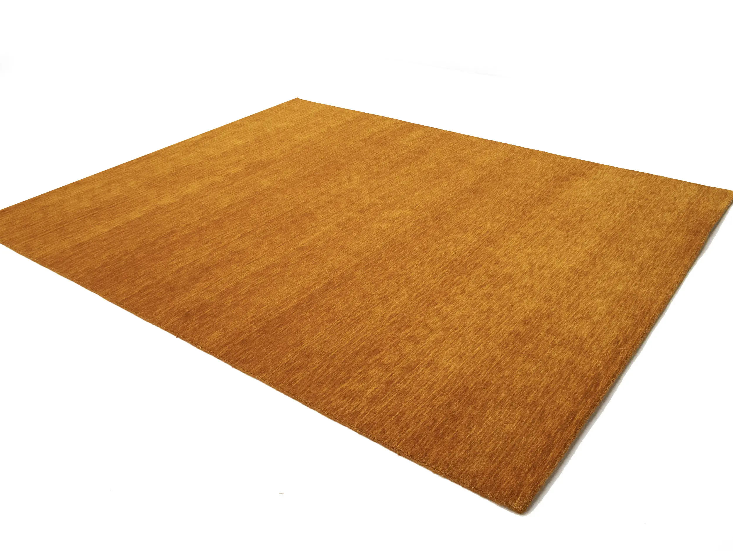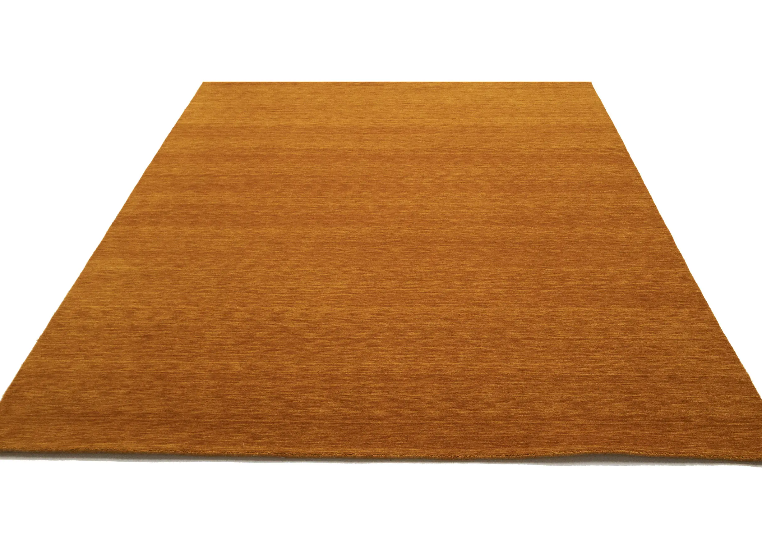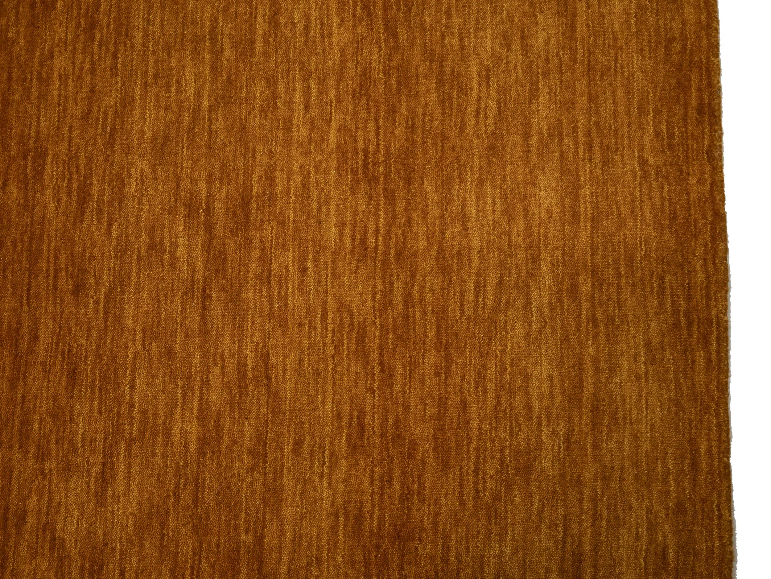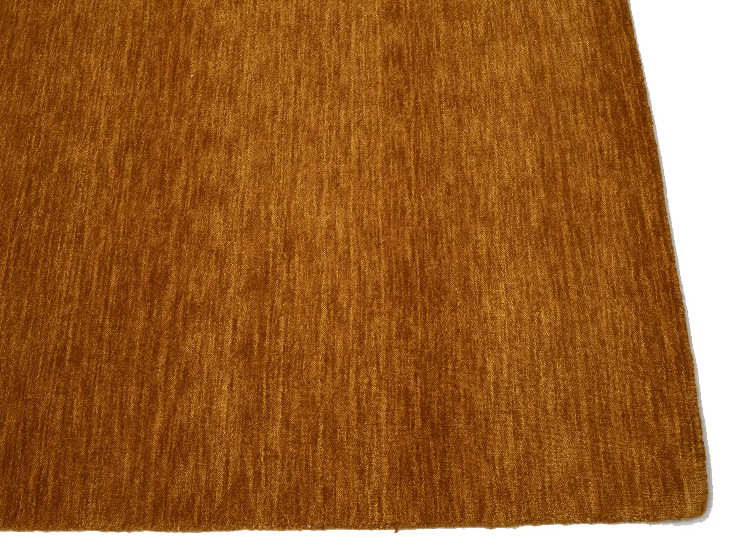 This hand-loomed 8X10 Orange Oriental rug from India features a modern, Solid design that seamlessly integrates traditional craftsmanship with contemporary style, showcasing a striking Orange primary color. It provides a luxuriant softness and durability underfoot, as it is constructed from premium wool with a cotton foundation. The rug is optimized for high-traffic areas due to its medium pile height and knot density of 100 knots per square inch, which ensures durability and comfort. This rug, which is in exceptional condition and was recently manufactured, is an ideal complement to any contemporary setting, providing both versatility and timeless elegance.