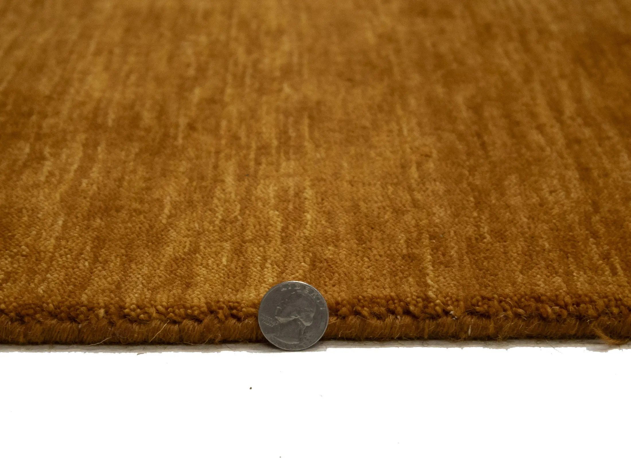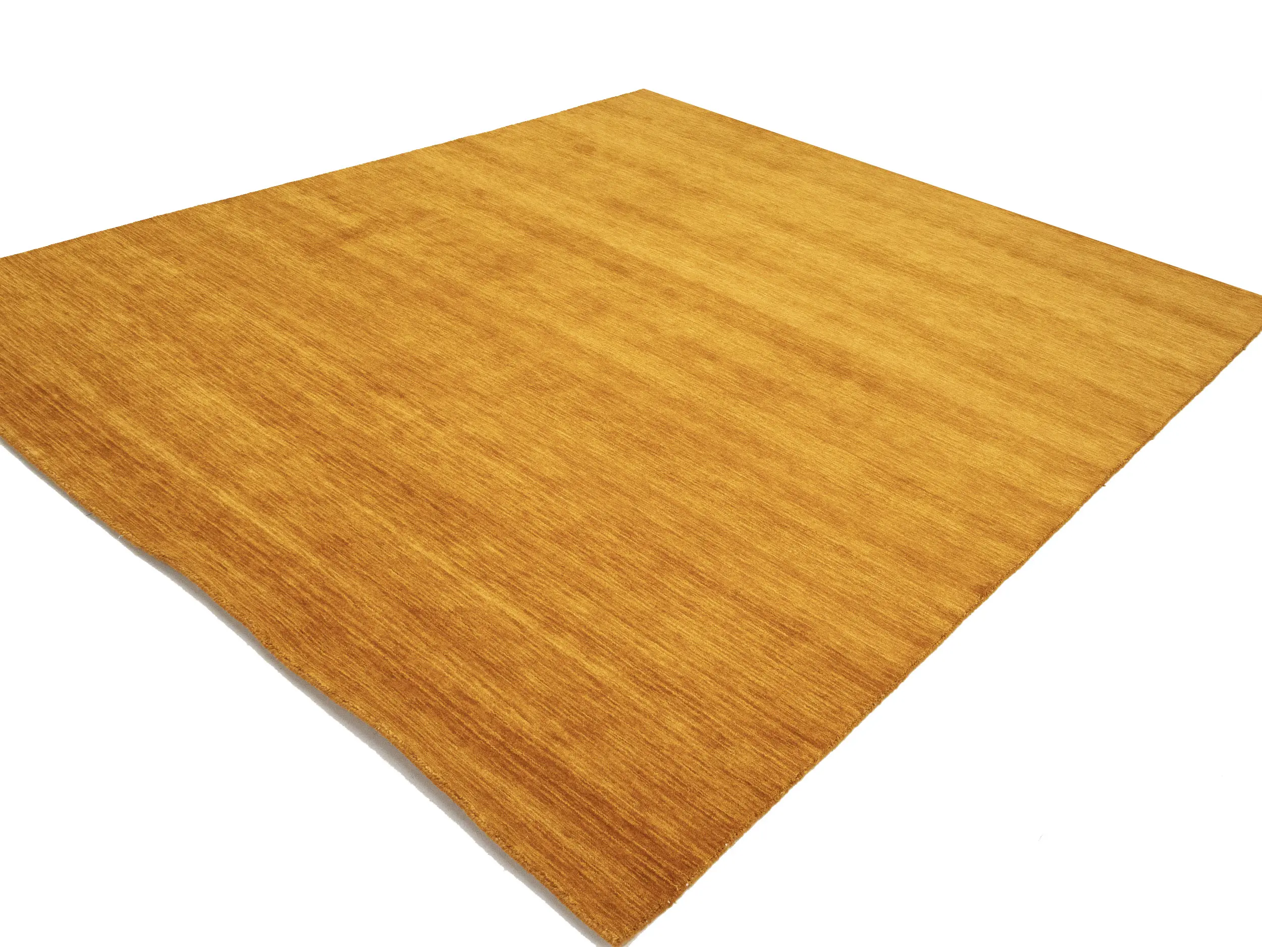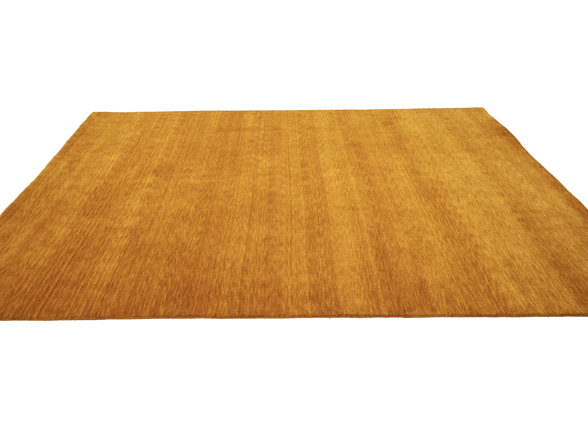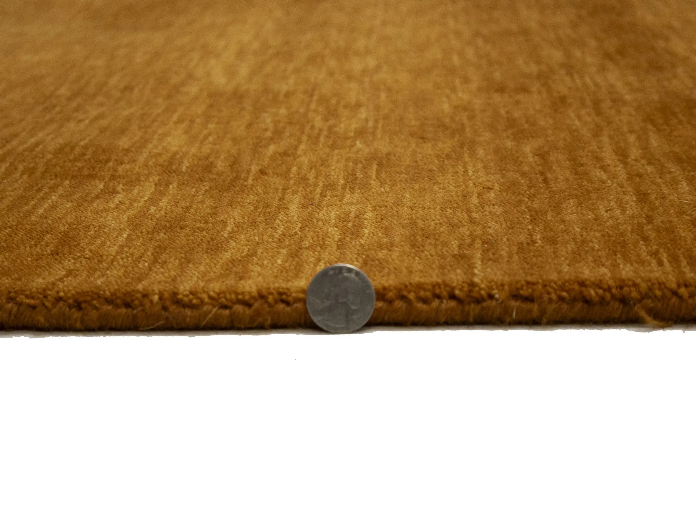 This hand-loomed 8X10 Orange Oriental rug from India features a modern, Solid design that seamlessly integrates traditional craftsmanship with contemporary style, showcasing a striking Orange primary color. It provides a luxuriant softness and durability underfoot, as it is constructed from premium wool with a cotton foundation. The rug is optimized for high-traffic areas due to its medium pile height and knot density of 100 knots per square inch, which ensures durability and comfort. This rug, which is in exceptional condition and was recently manufactured, is an ideal complement to any contemporary setting, providing both versatility and timeless elegance.