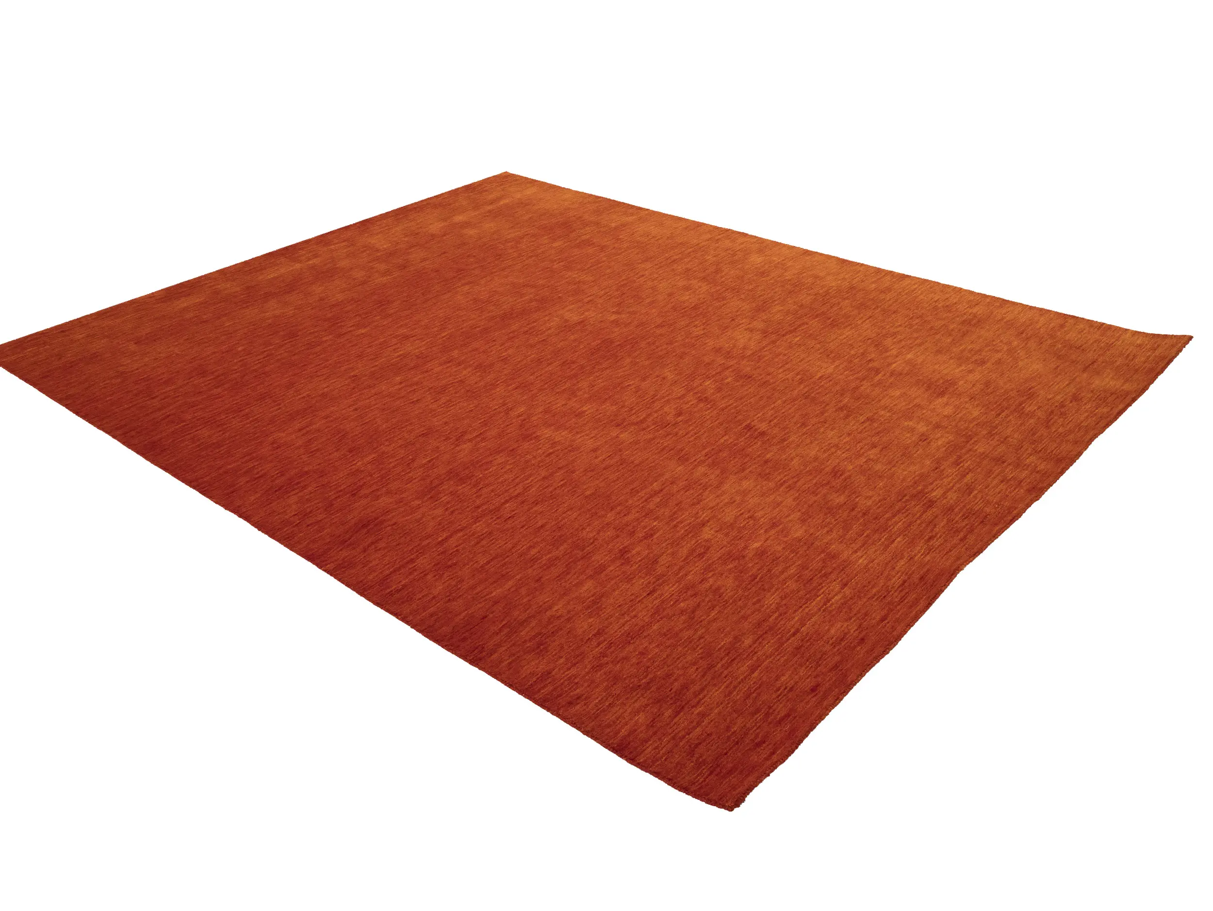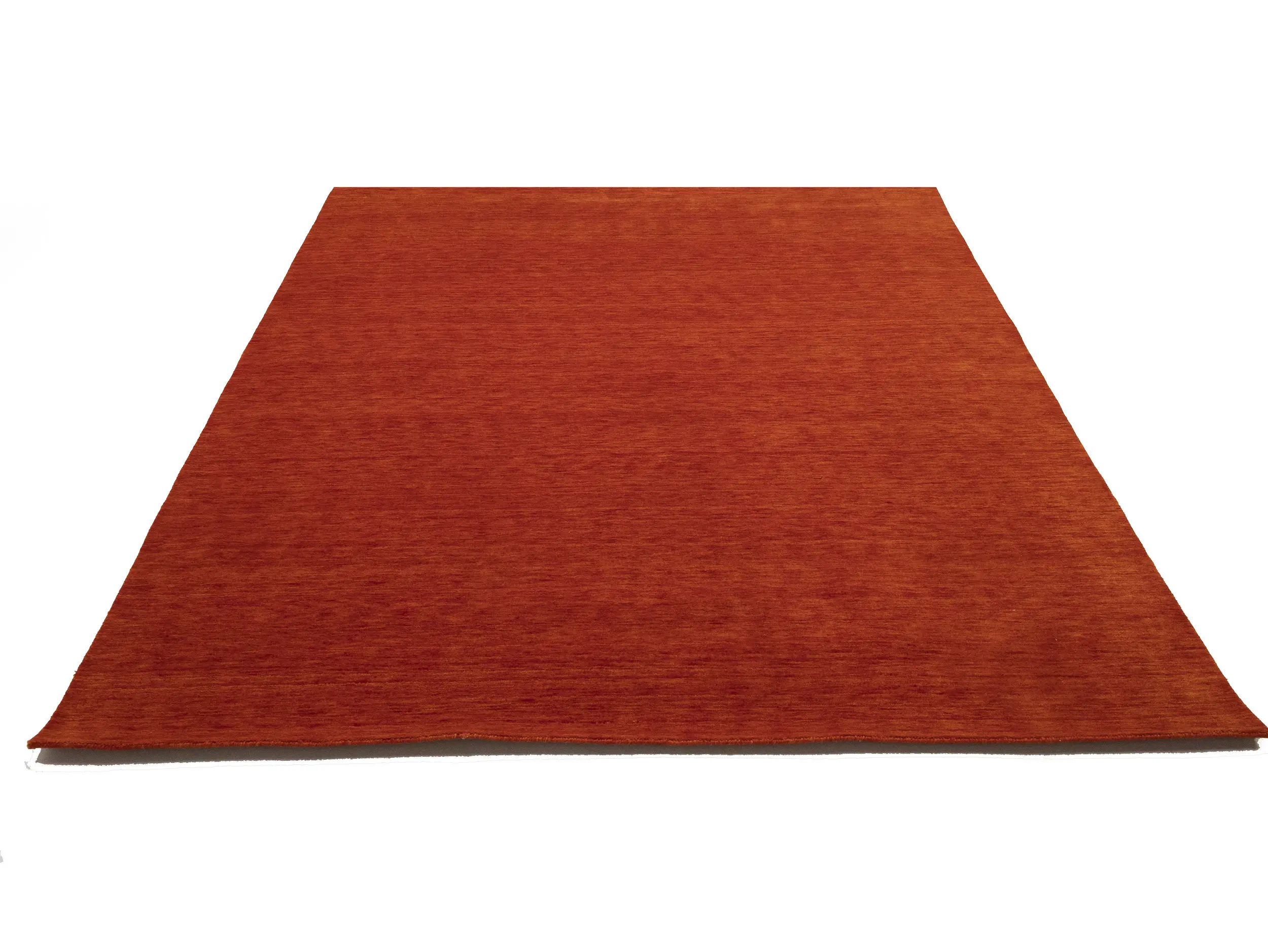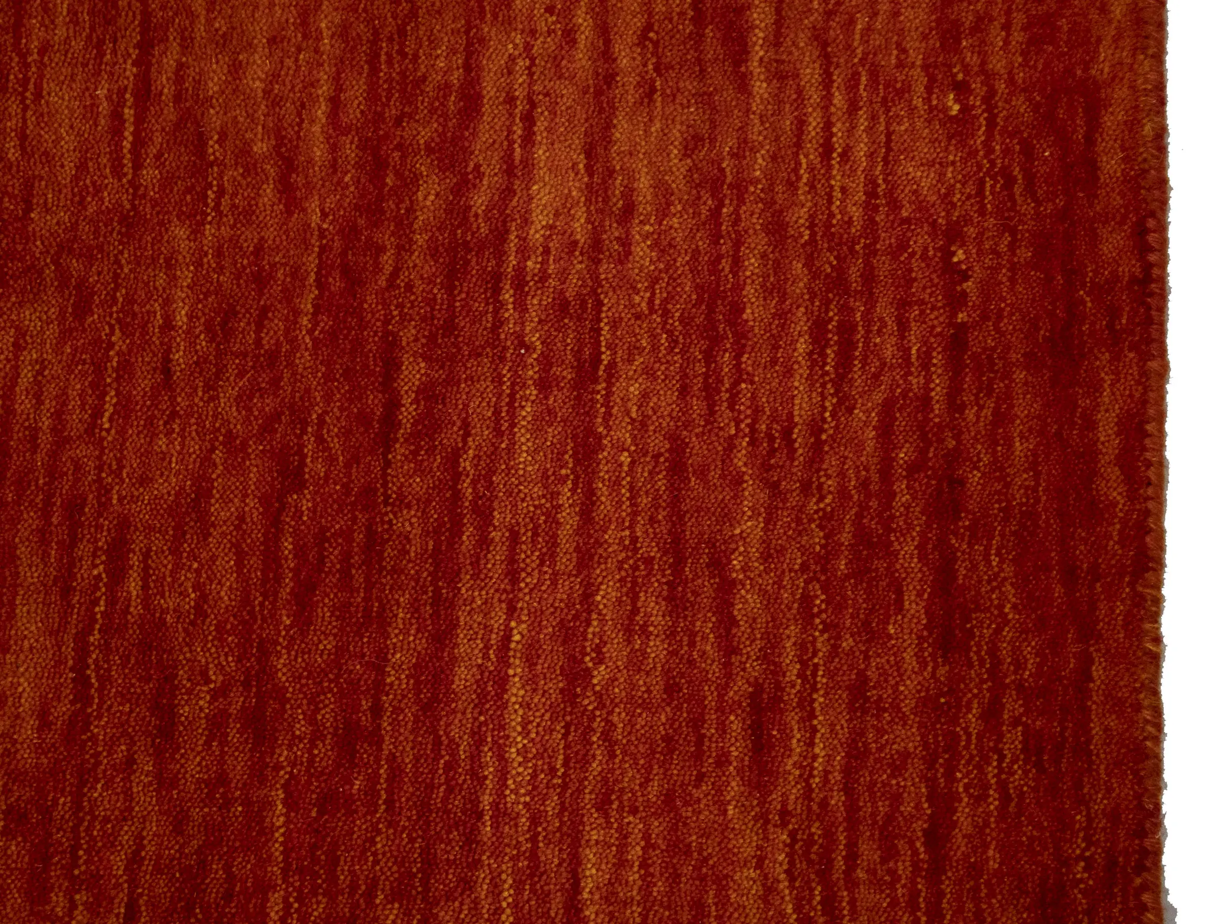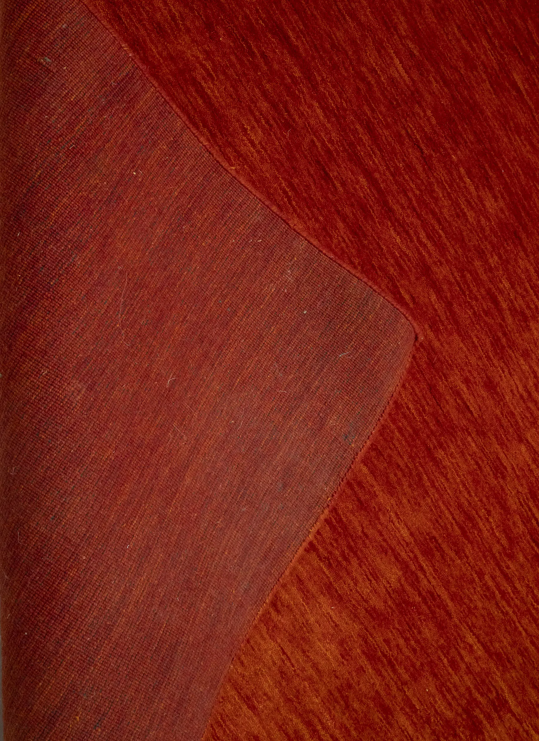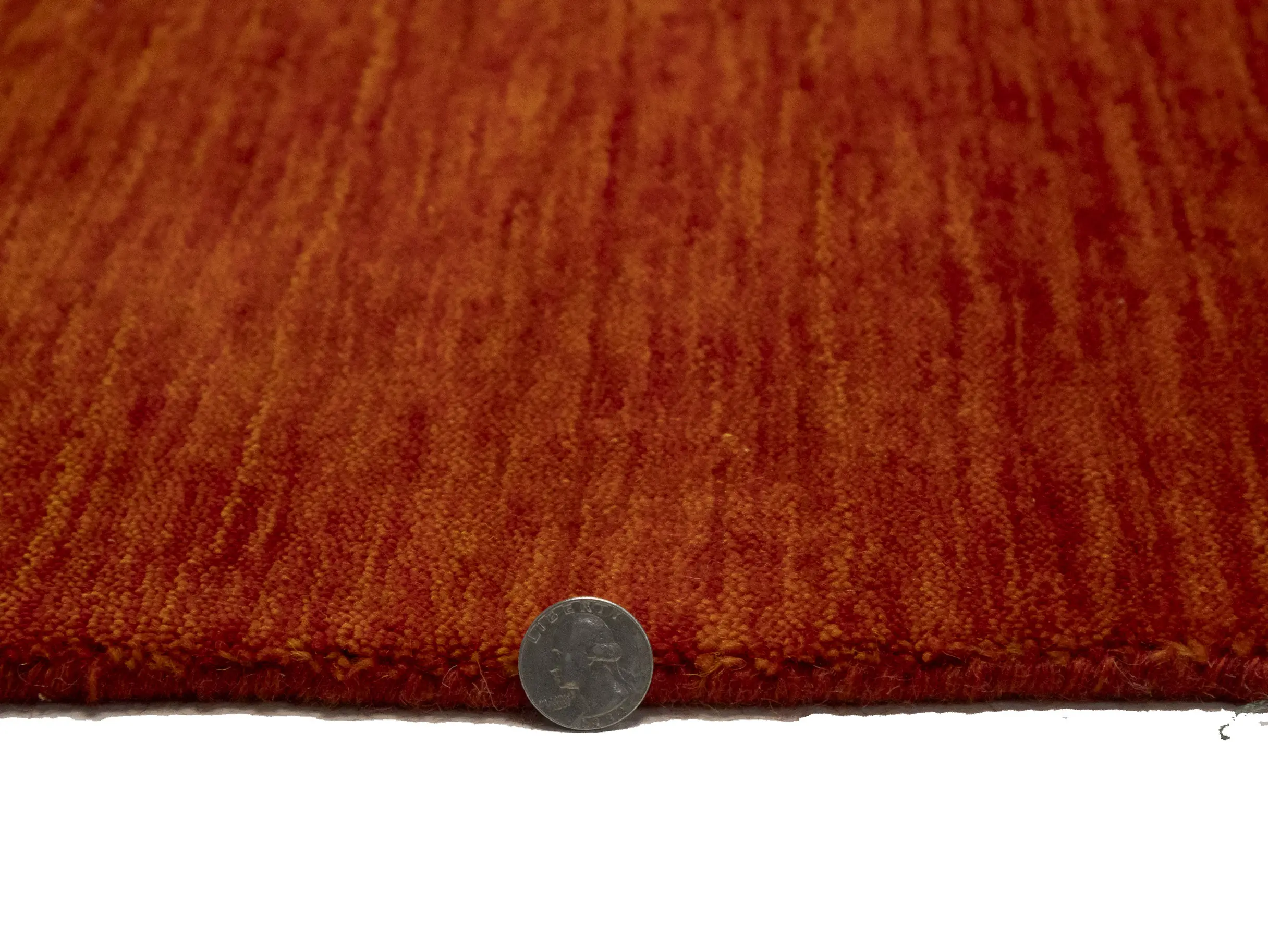 This hand-loomed 8X10 Orange Red Oriental rug from India features a modern, Solid design that seamlessly integrates traditional craftsmanship with contemporary style, showcasing a striking Orange Red primary color. It provides a luxuriant softness and durability underfoot, as it is constructed from premium wool with a cotton foundation. The rug is optimized for high-traffic areas due to its medium pile height and knot density of 100 knots per square inch, which ensures durability and comfort. This rug, which is in exceptional condition and was recently manufactured, is an ideal complement to any contemporary setting, providing both versatility and timeless elegance.