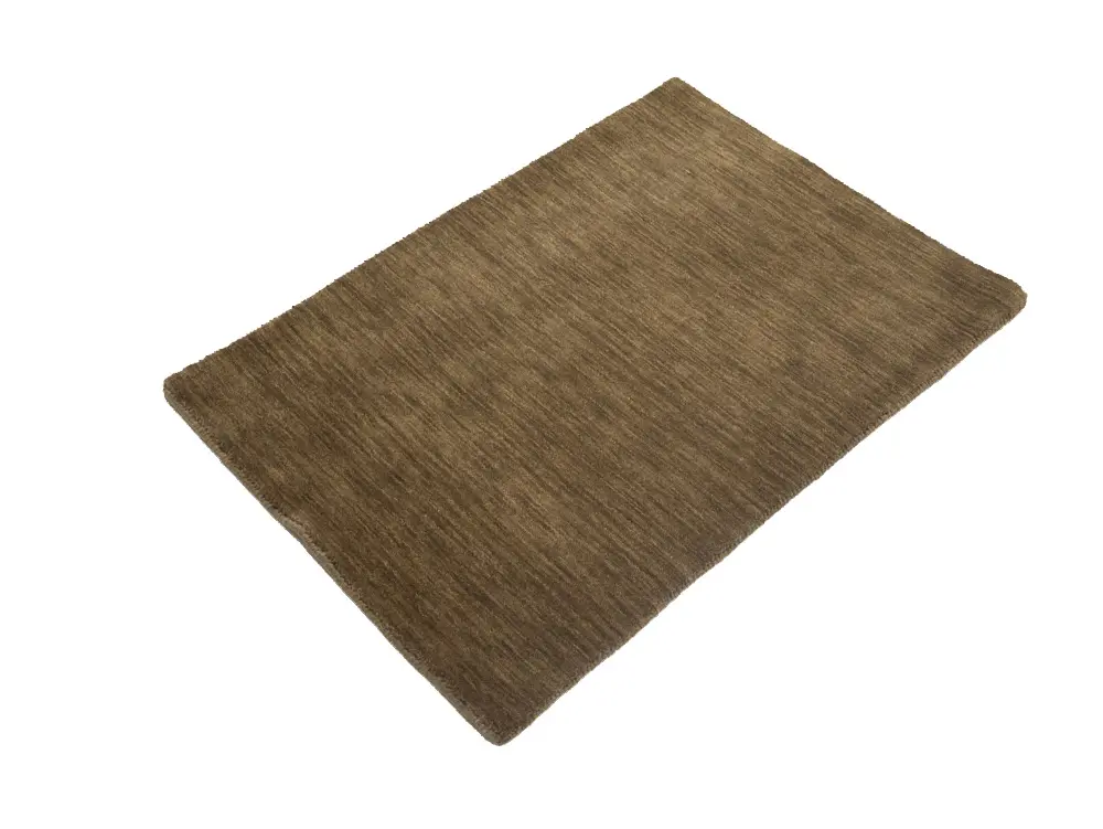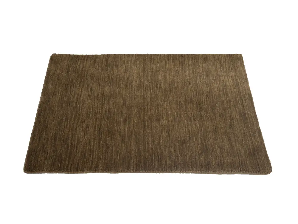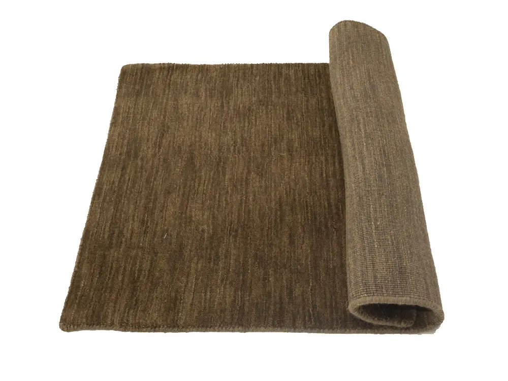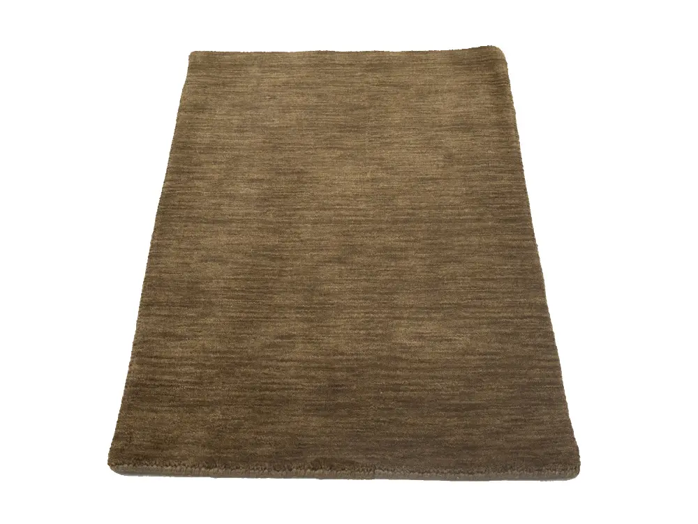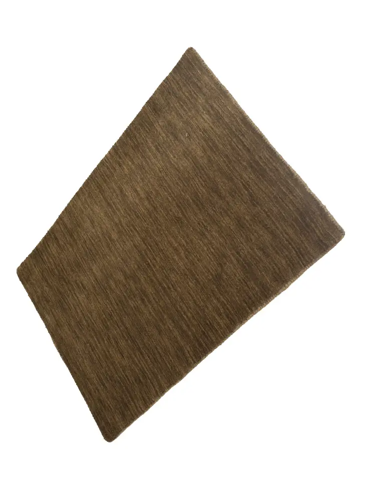This hand-loomed Oriental rug from India features a modern, Solid design that seamlessly integrates traditional craftsmanship with contemporary style, showcasing a striking Brown primary color. It provides a luxuriant softness and durability underfoot, as it is constructed from premium wool with a cotton foundation. The rug is optimized for high-traffic areas due to its medium pile height and knot density of 100 knots per square inch, which ensures durability and comfort. This rug, which is in exceptional condition and was recently manufactured, is an ideal complement to any contemporary setting, providing both versatility and timeless elegance.
