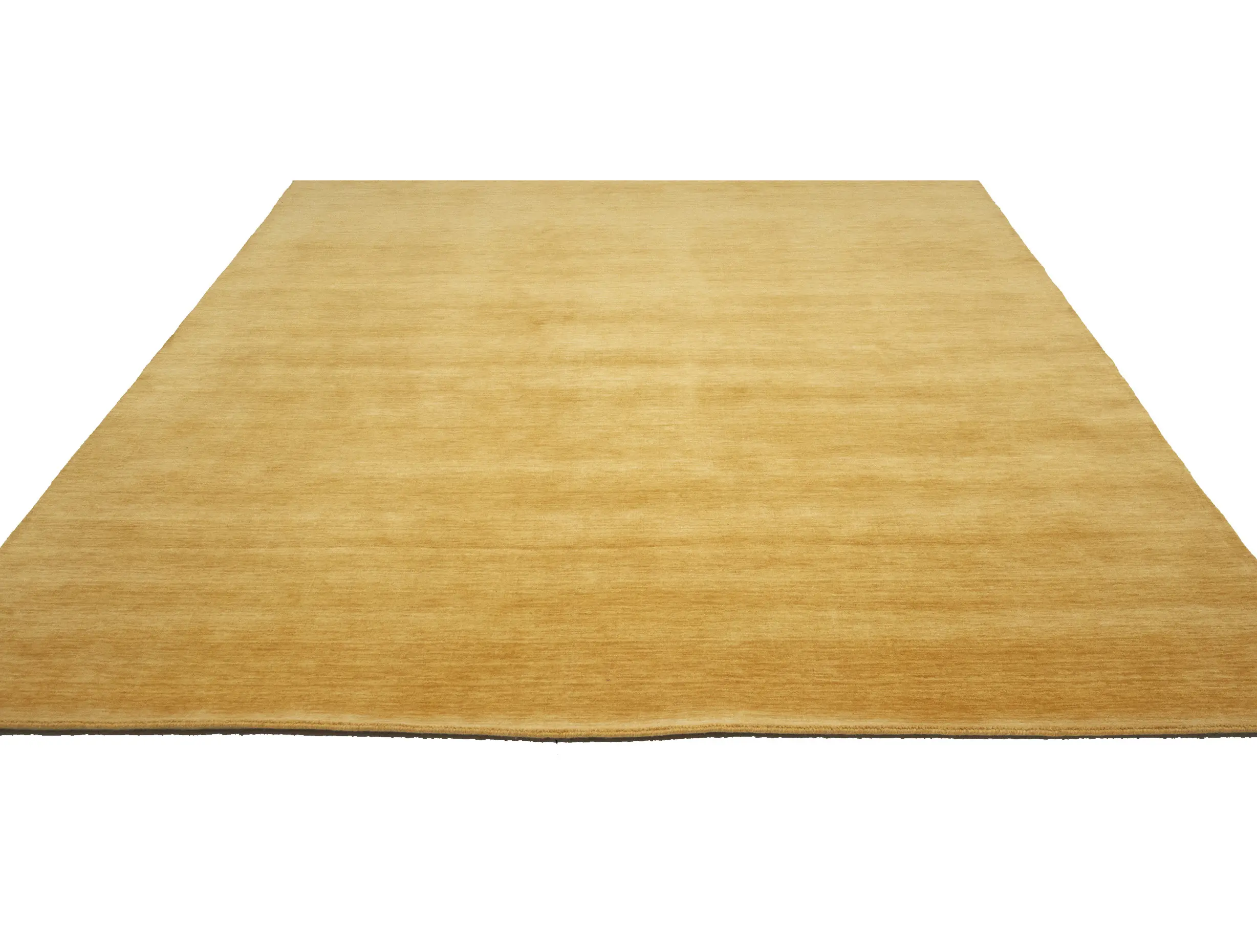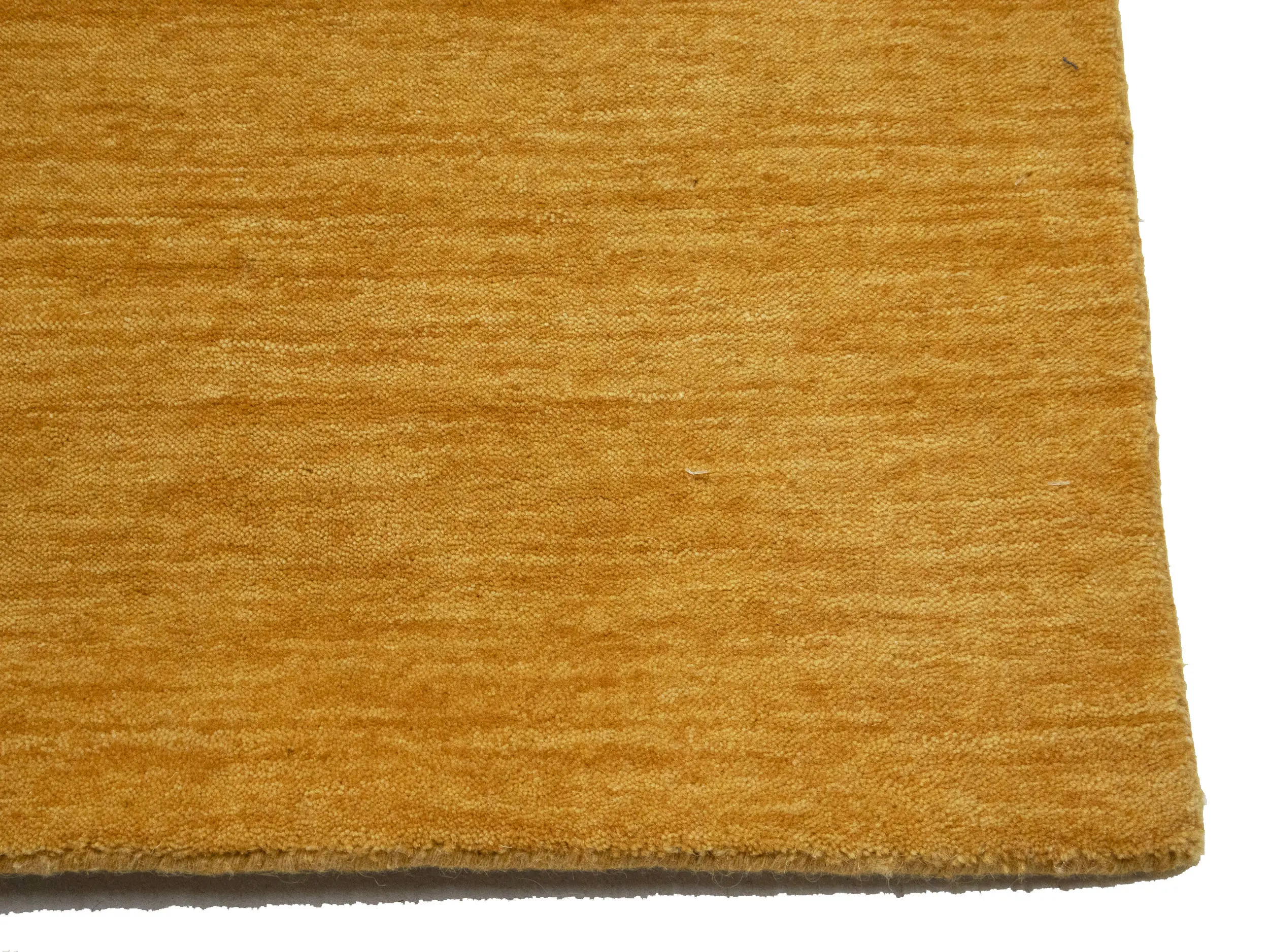 This hand-loomed 8X10 Golden Peach Oriental rug from India features a modern, Solid design that seamlessly integrates traditional craftsmanship with contemporary style, showcasing a striking Golden Peach primary color. It provides a luxuriant softness and durability underfoot, as it is constructed from premium wool with a cotton foundation. The rug is optimized for high-traffic areas due to its medium pile height and knot density of 100 knots per square inch, which ensures durability and comfort. This rug, which is in exceptional condition and was recently manufactured, is an ideal complement to any contemporary setting, providing both versatility and timeless elegance.Â