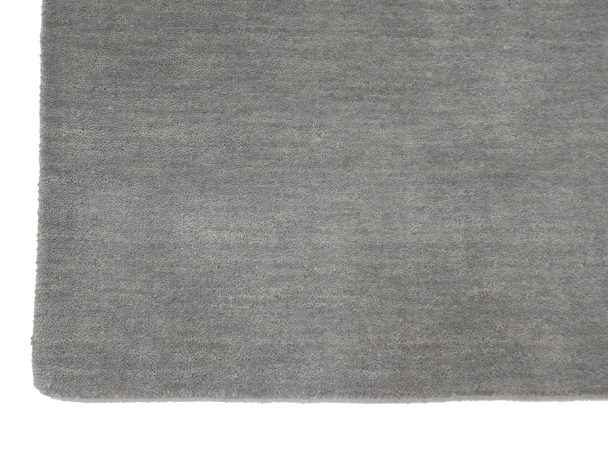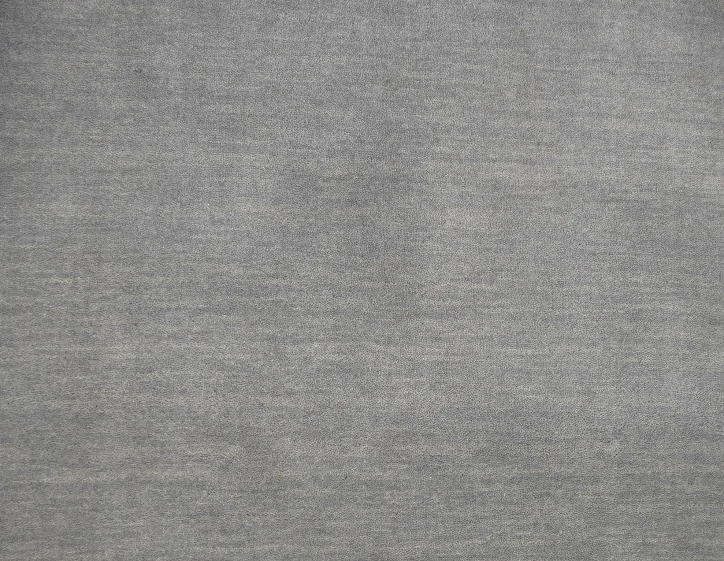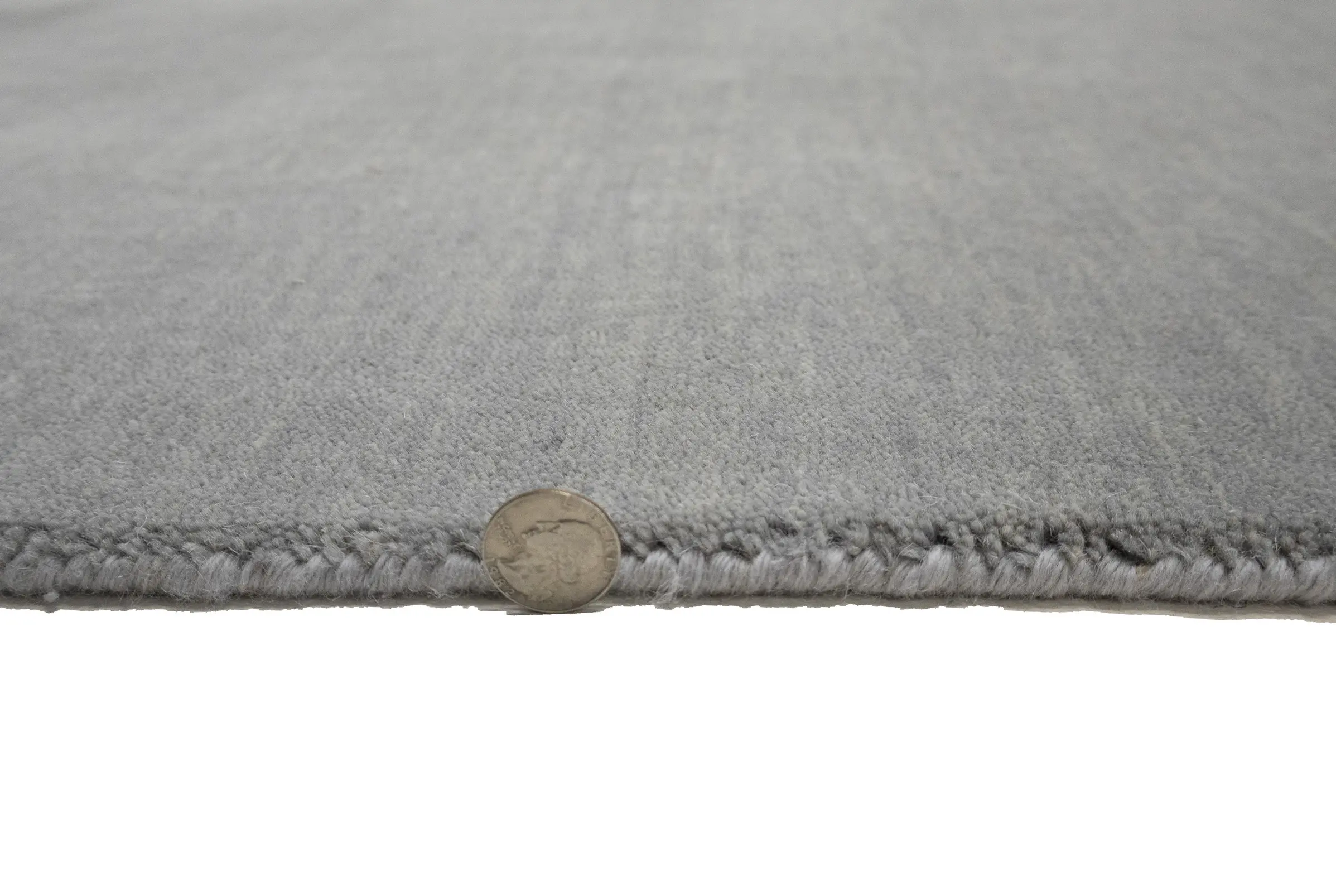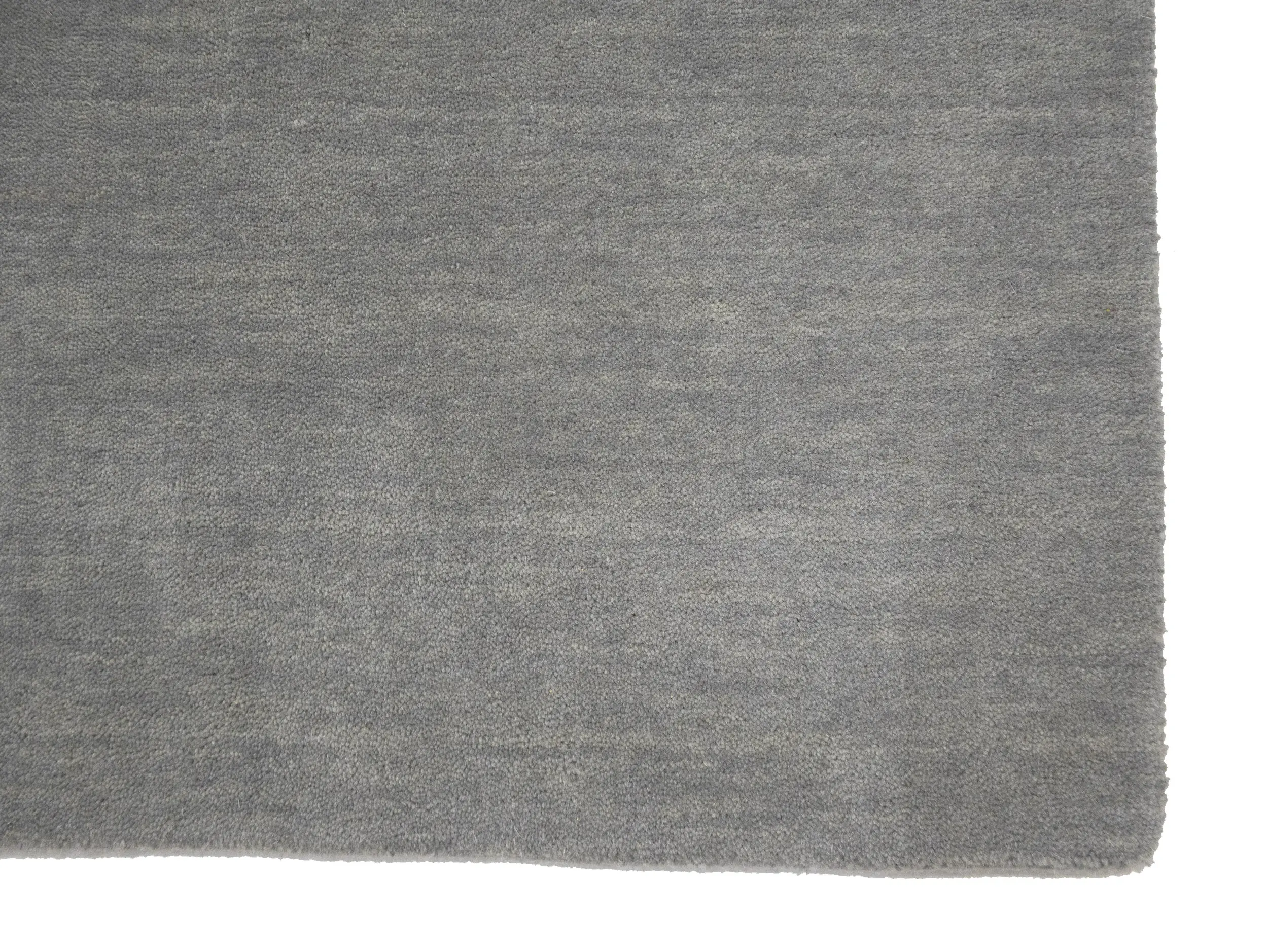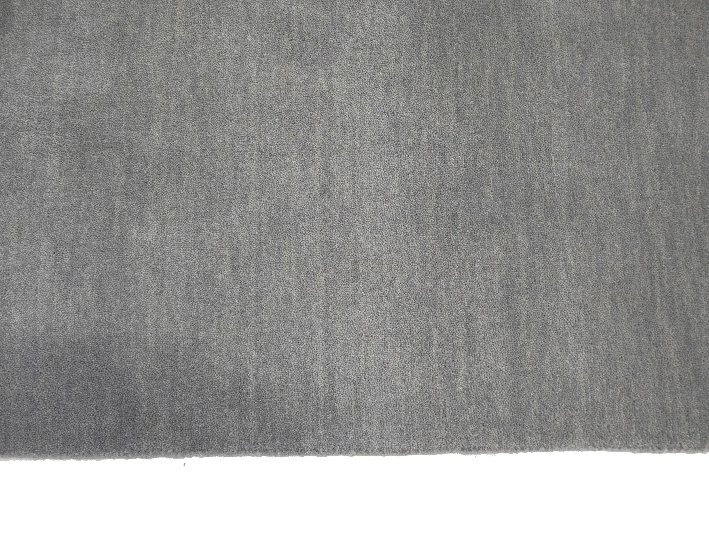 This hand-loomed 3X12 Gray Oriental Runner rug from India features a modern, Solid design that seamlessly integrates traditional craftsmanship with contemporary style, showcasing a striking Gray primary color. It provides a luxuriant softness and durability underfoot, as it is constructed from premium wool with a cotton foundation. The rug is optimized for high-traffic areas due to its medium pile height and knot density of 100 knots per square inch, which ensures durability and comfort. This rug, which is in exceptional condition and was recently manufactured, is an ideal complement to any contemporary setting, providing both versatility and timeless elegance.