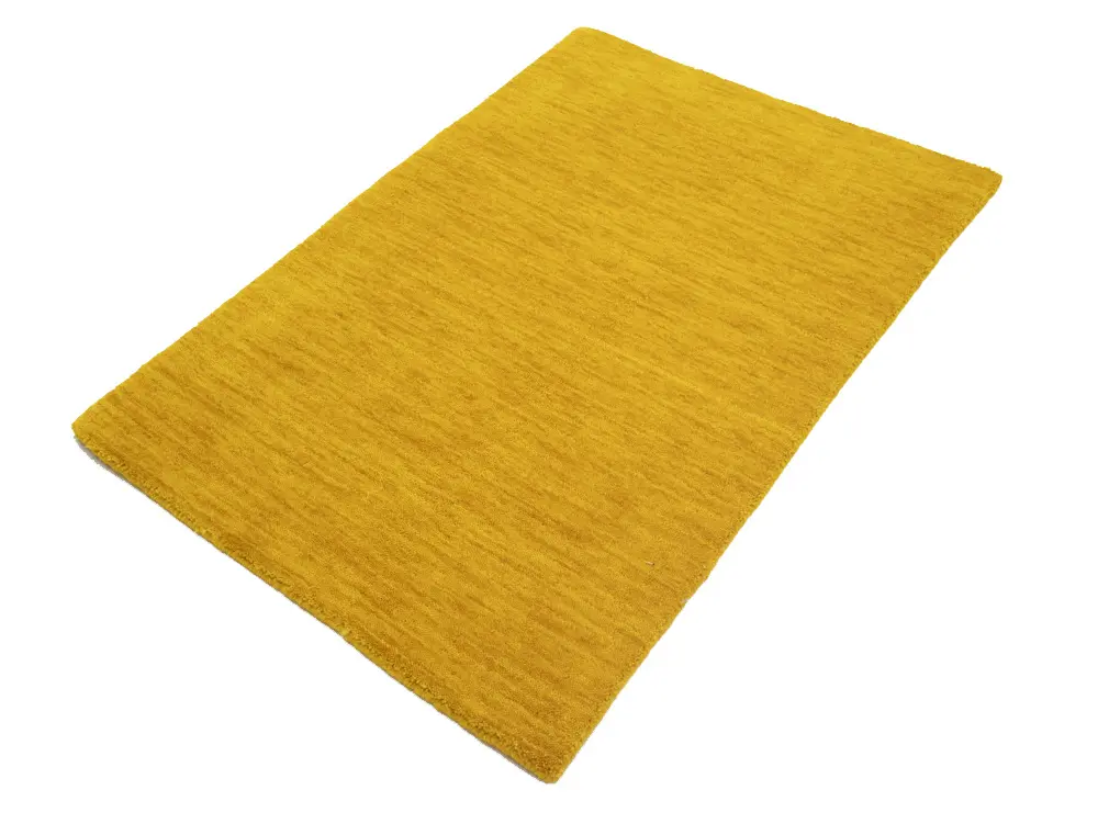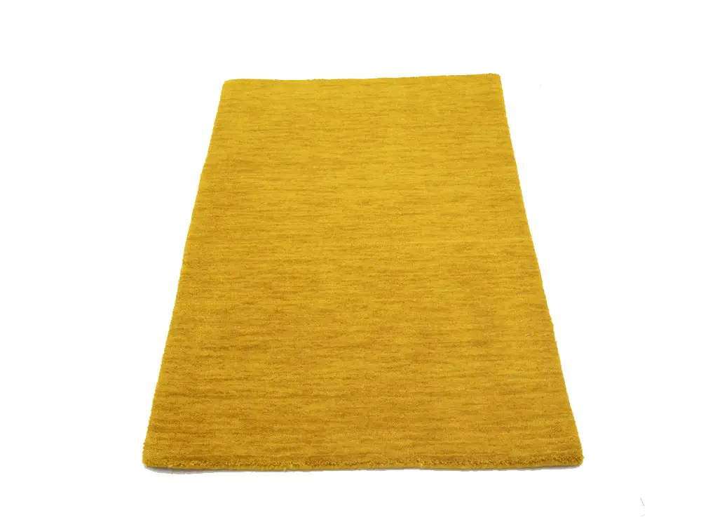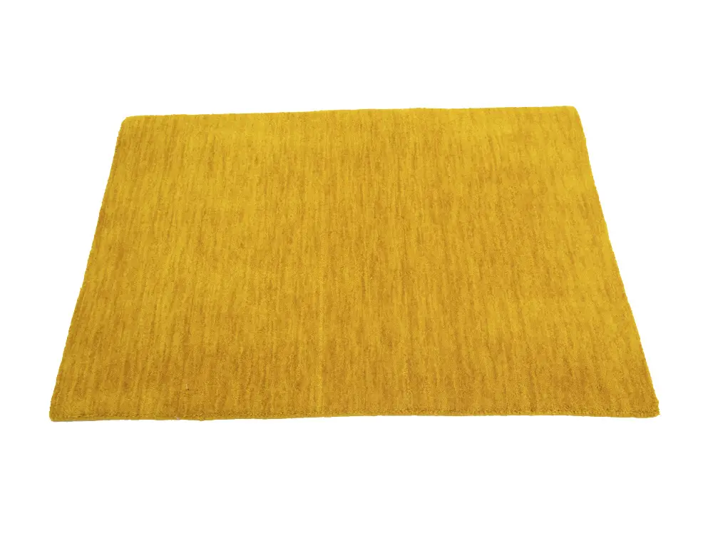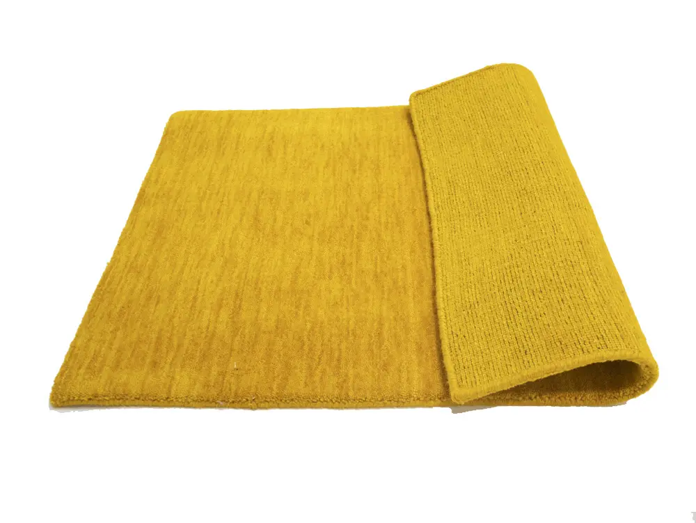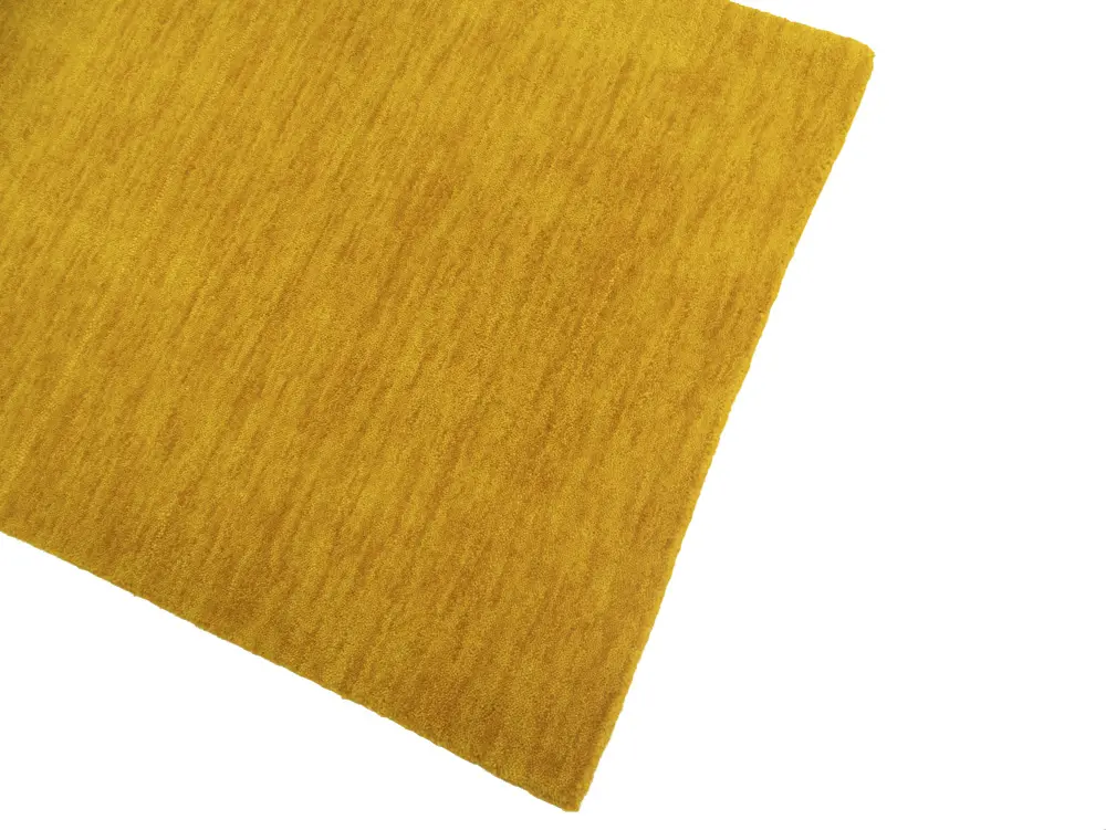 This hand-loomed 2X3 Marigold Oriental rug from India features a modern, Solid design that seamlessly integrates traditional craftsmanship with contemporary style, showcasing a striking Marigold primary color. It provides a luxuriant softness and durability underfoot, as it is constructed from premium wool with a cotton foundation. The rug is optimized for high-traffic areas due to its medium pile height and knot density of 100 knots per square inch, which ensures durability and comfort. This rug, which is in exceptional condition and was recently manufactured, is an ideal complement to any contemporary setting, providing both versatility and timeless elegance.
