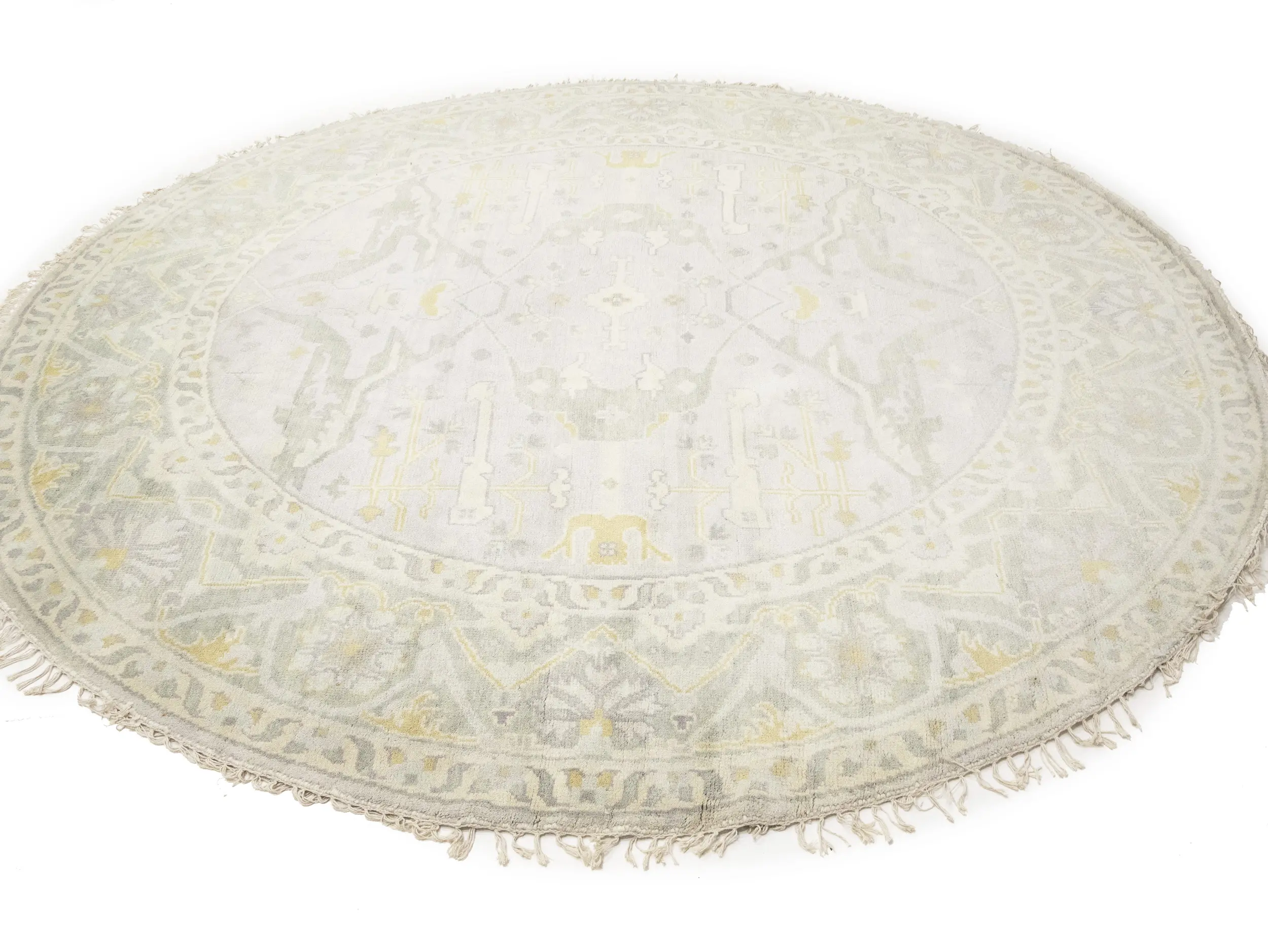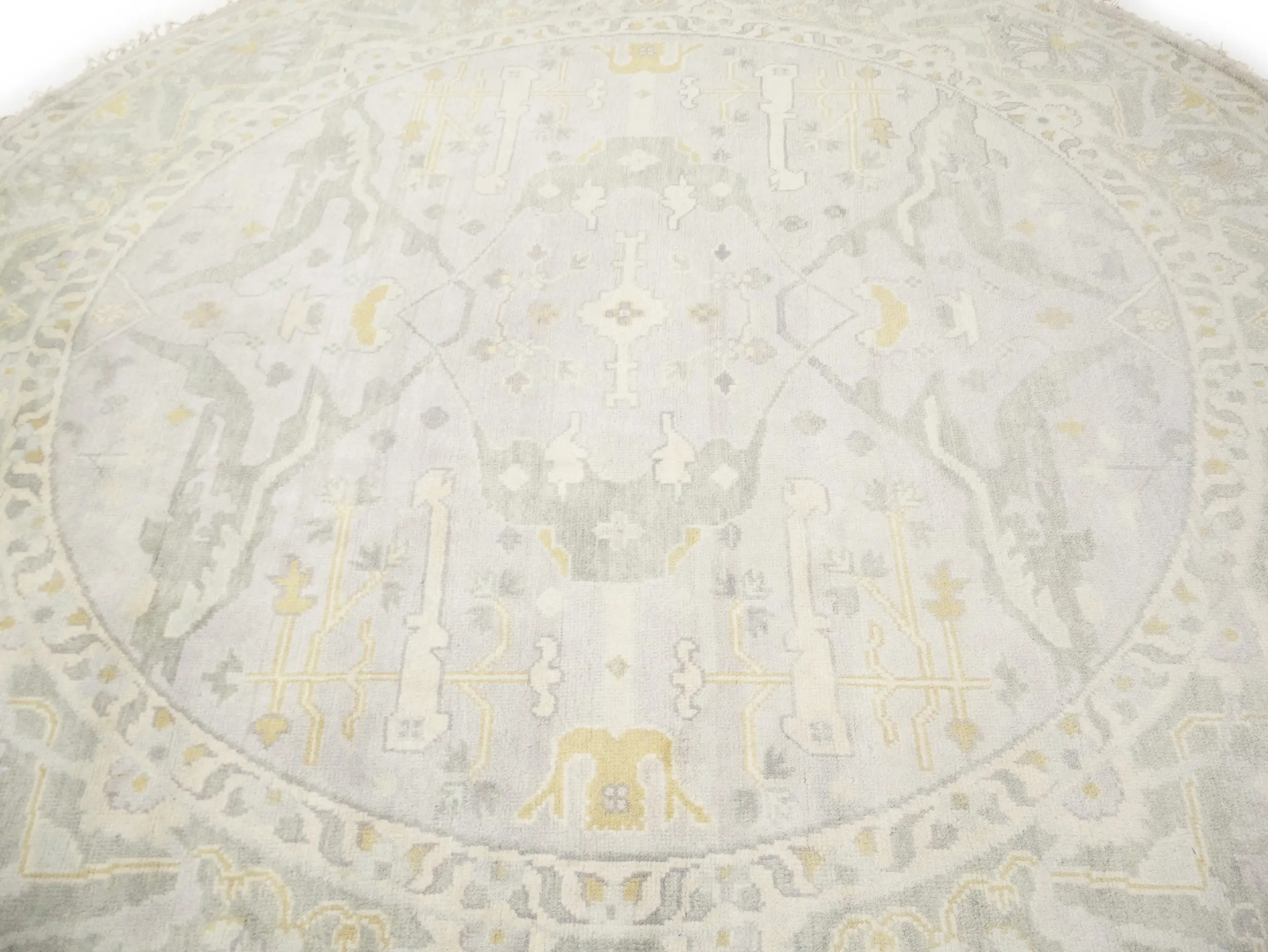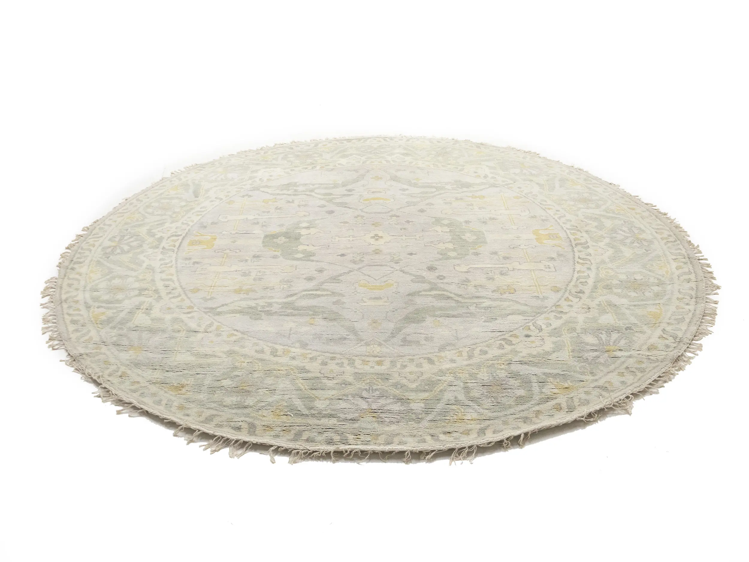 Muted Light Gray Floral Traditional 9X9 Oushak Oriental Round Rug