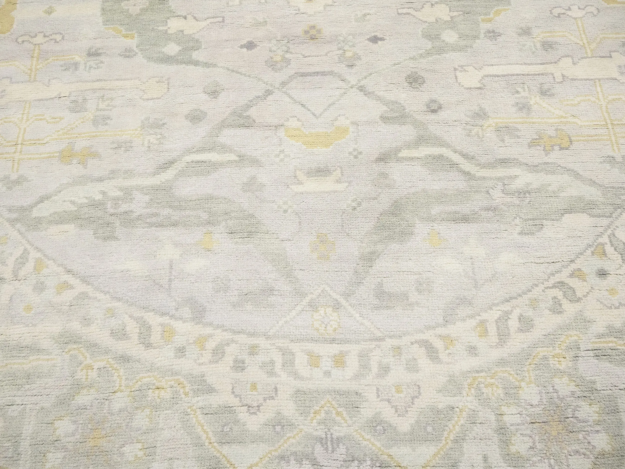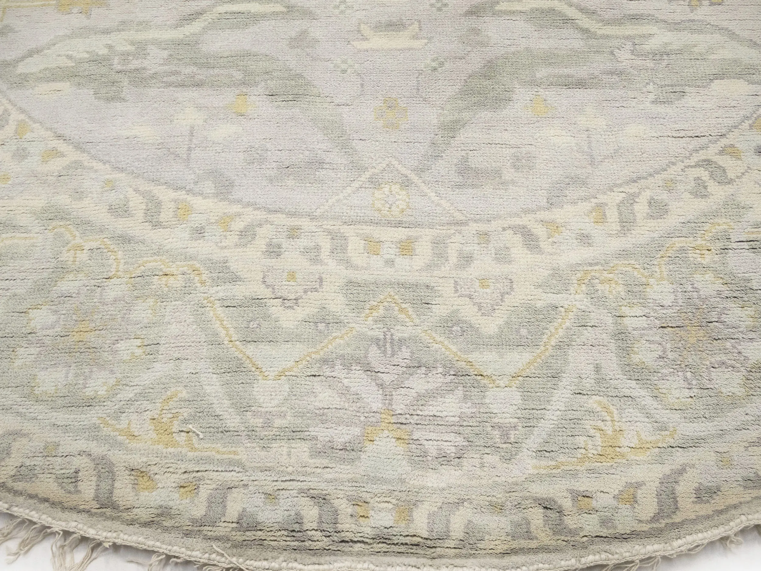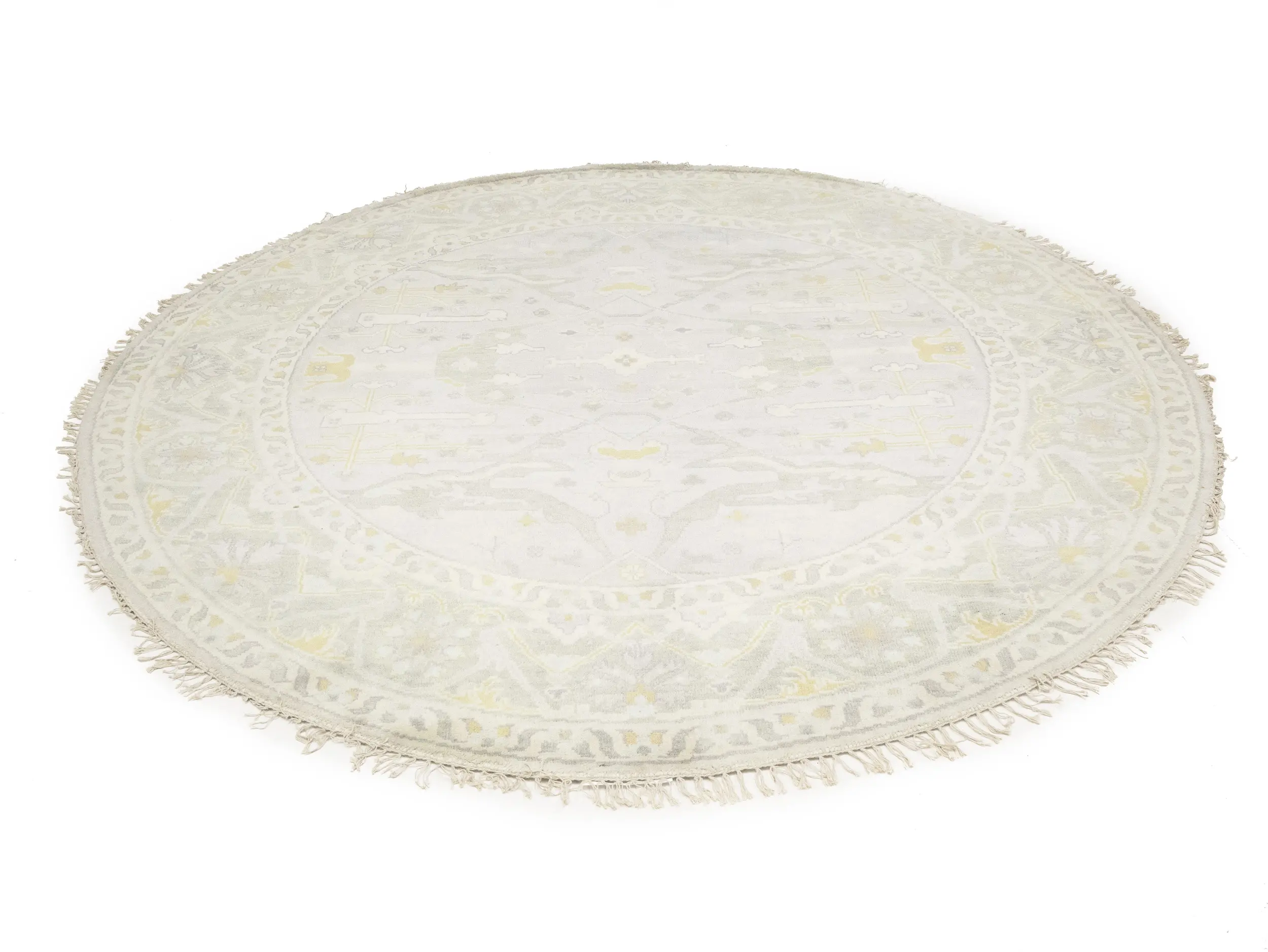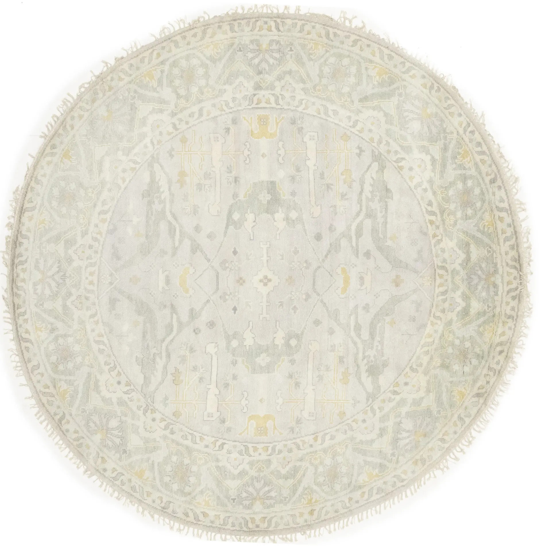 Muted Light Gray Floral Traditional 9X9 Oushak Oriental Round Rug
