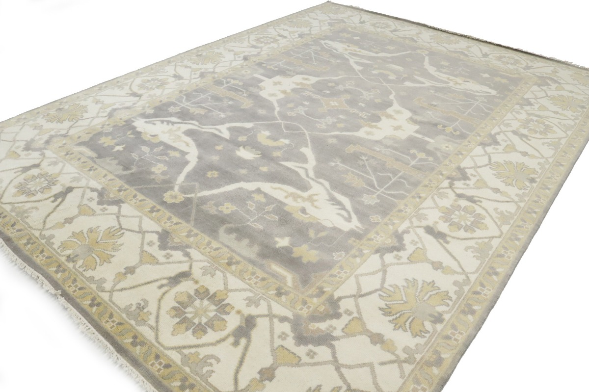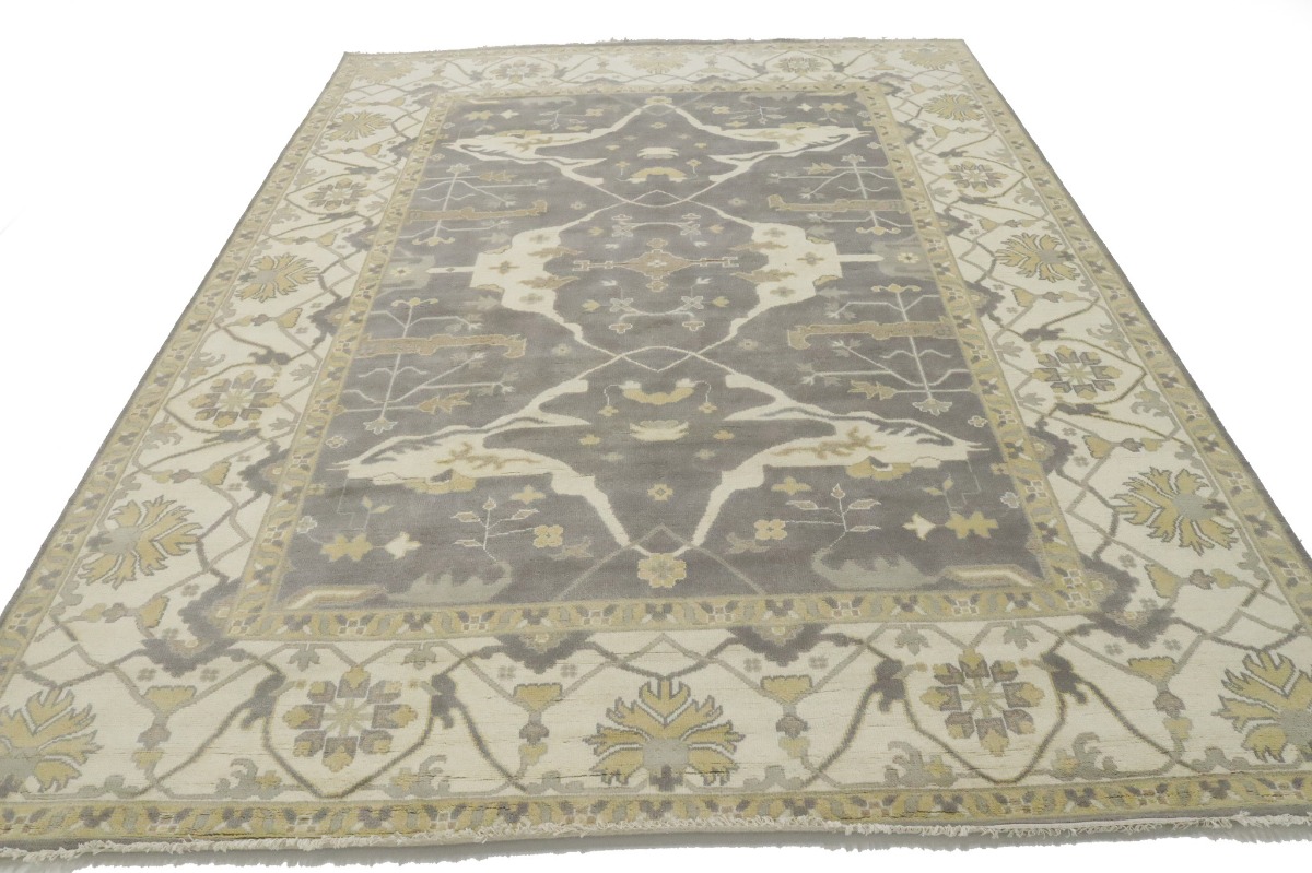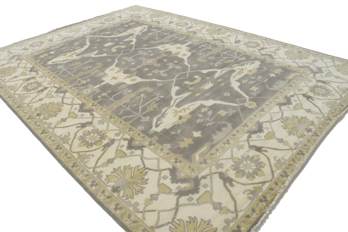 Pastel Brown Floral 10X14 Oushak Oriental Rug