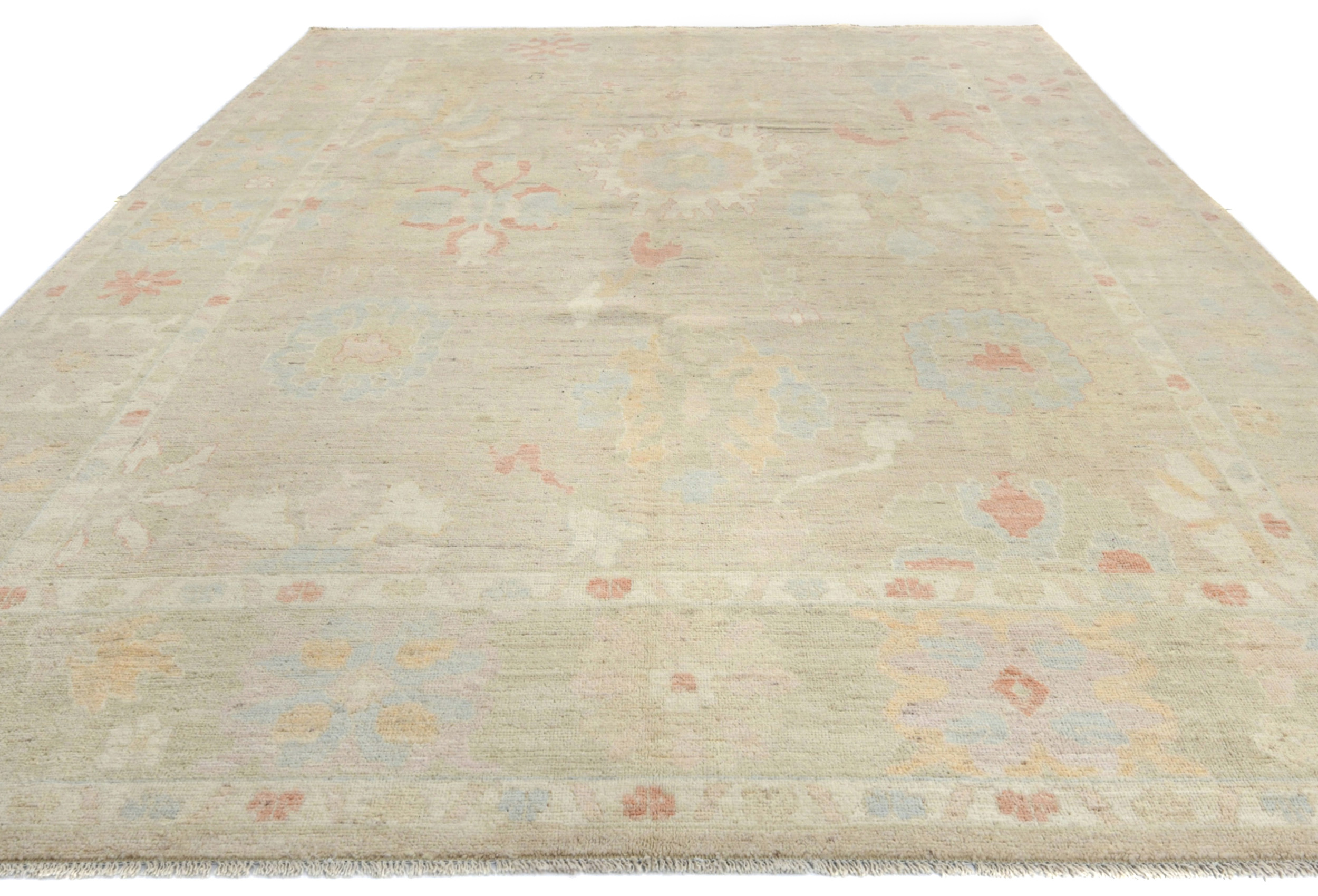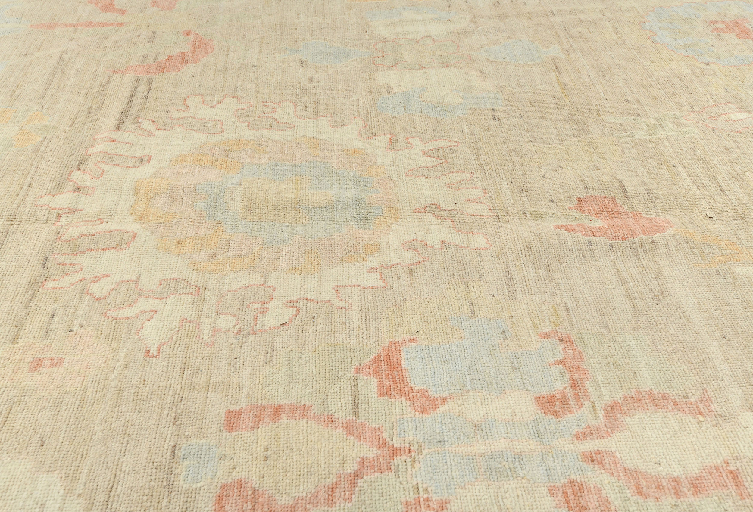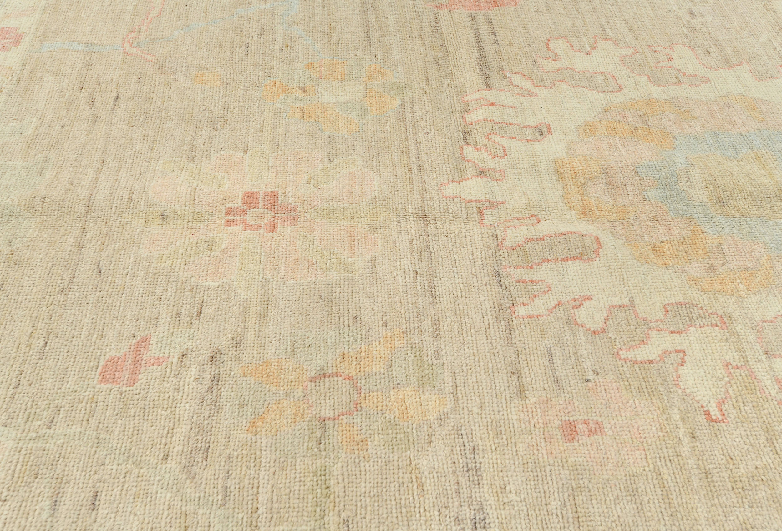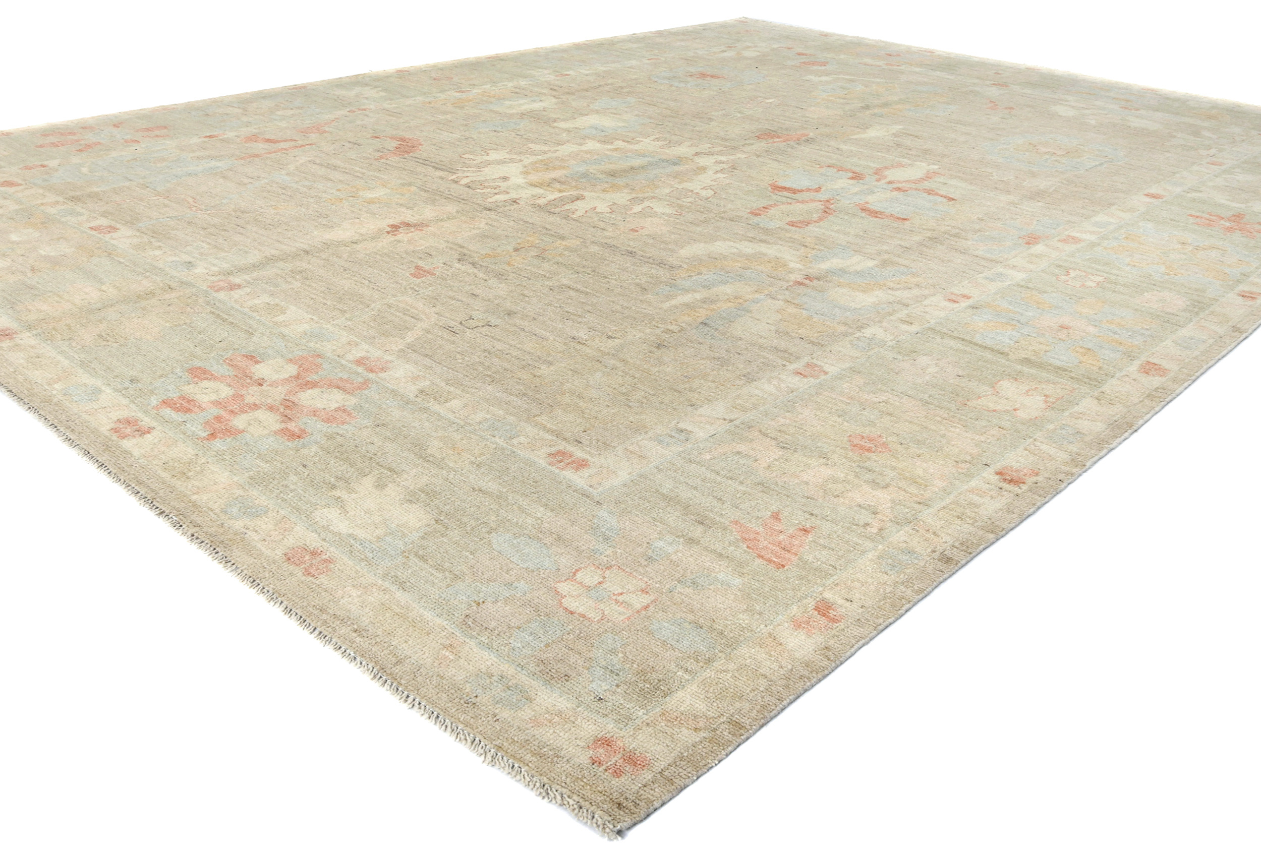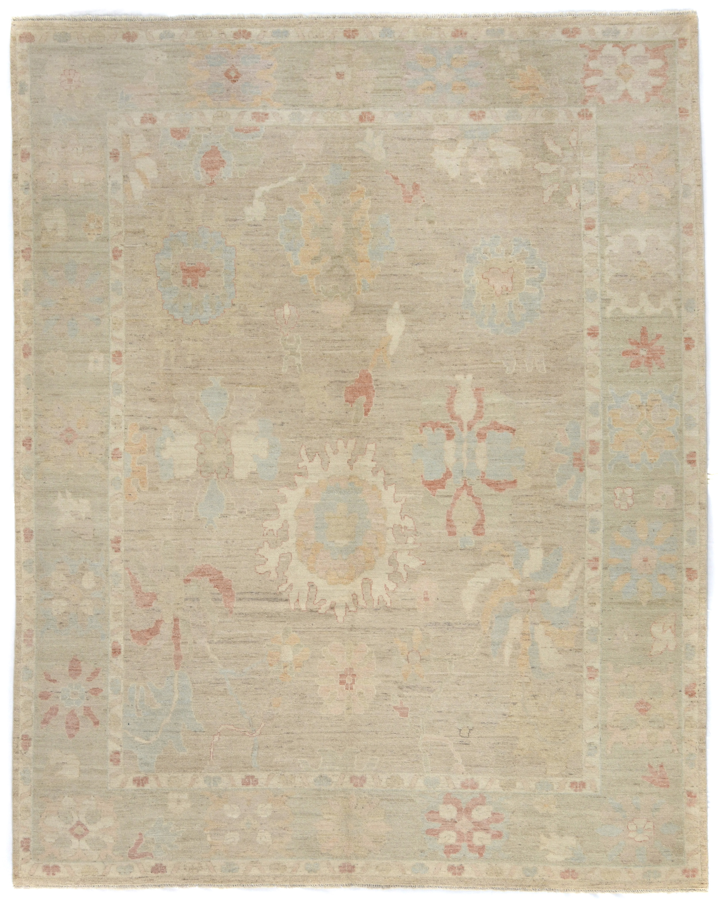 Pastel Brown Floral Oushak Peshawar 10X13 Pakistan Oriental Rug