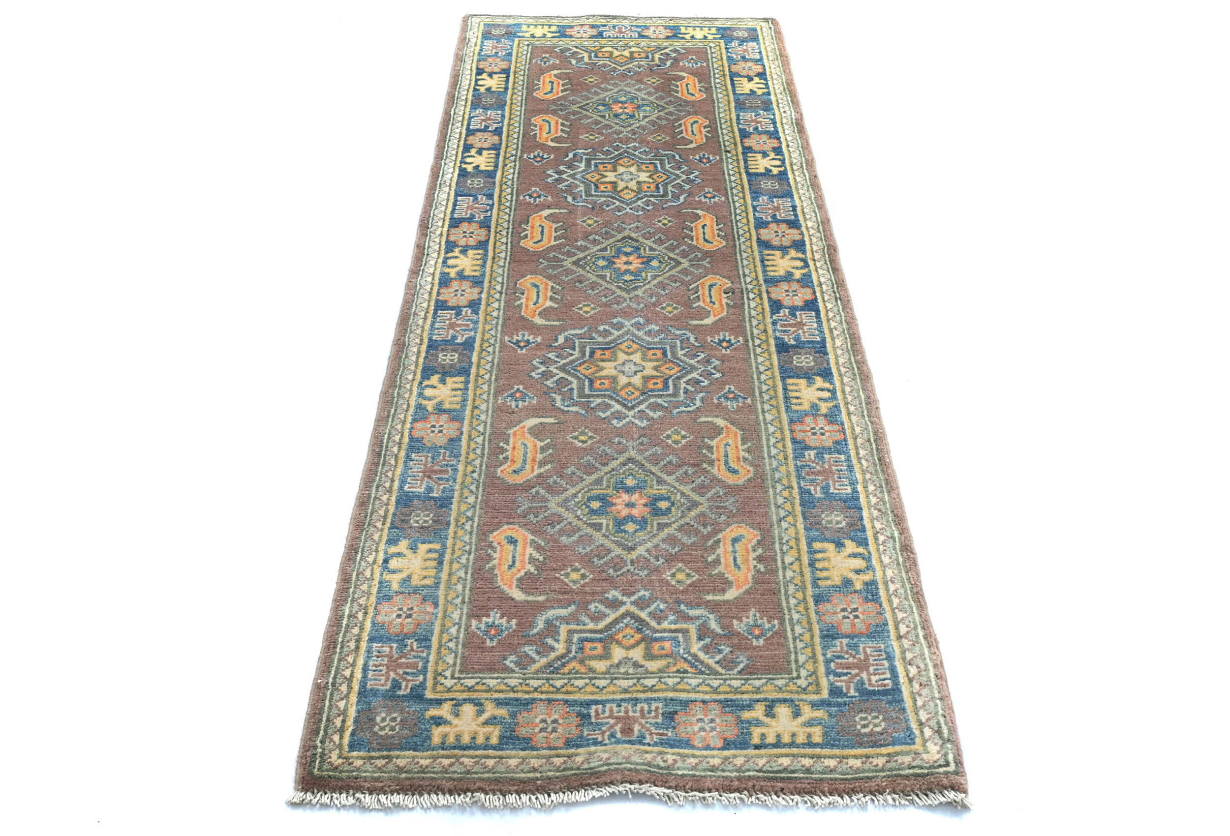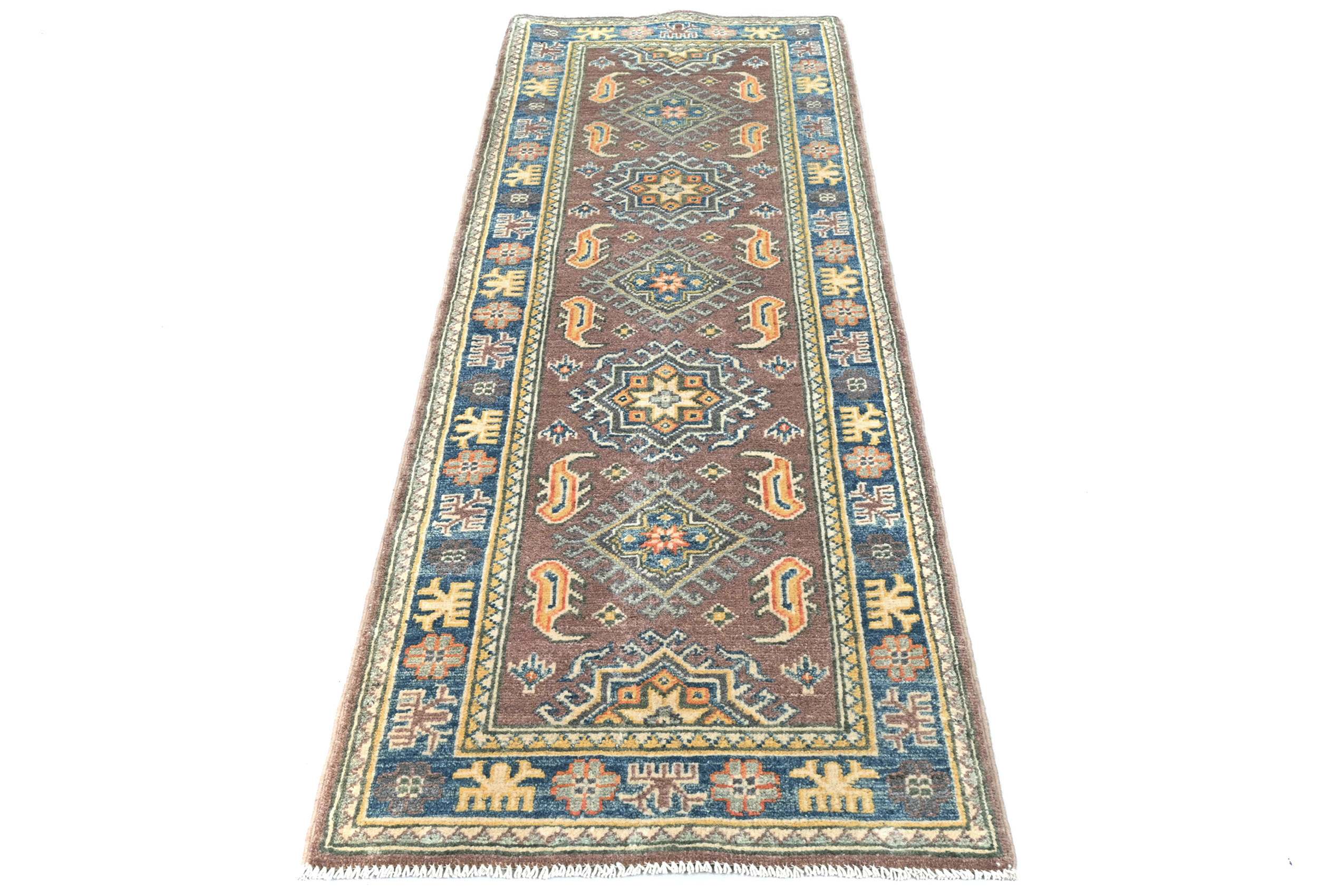Pastel Brown Tribal Geometric 2X6 Kazak Pakistan Oriental Runner Rug