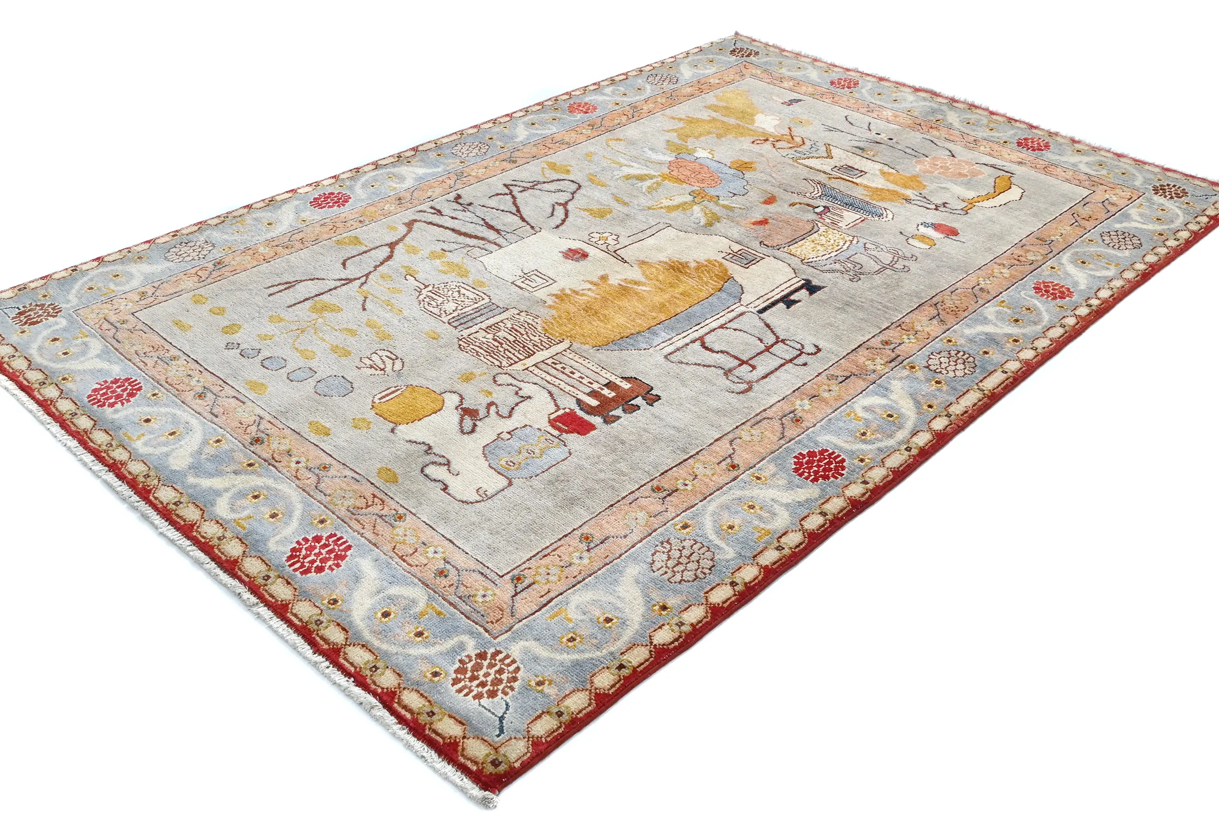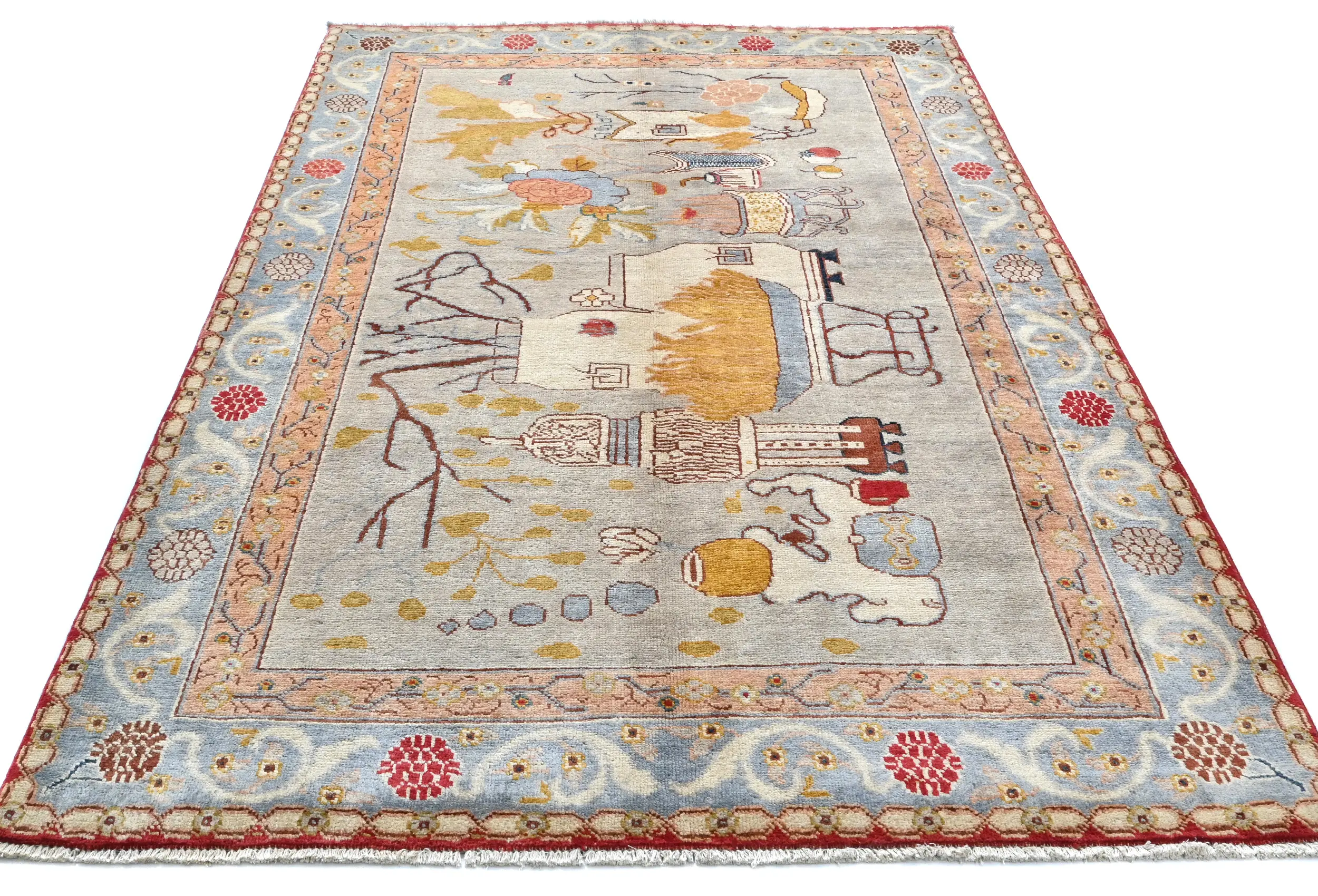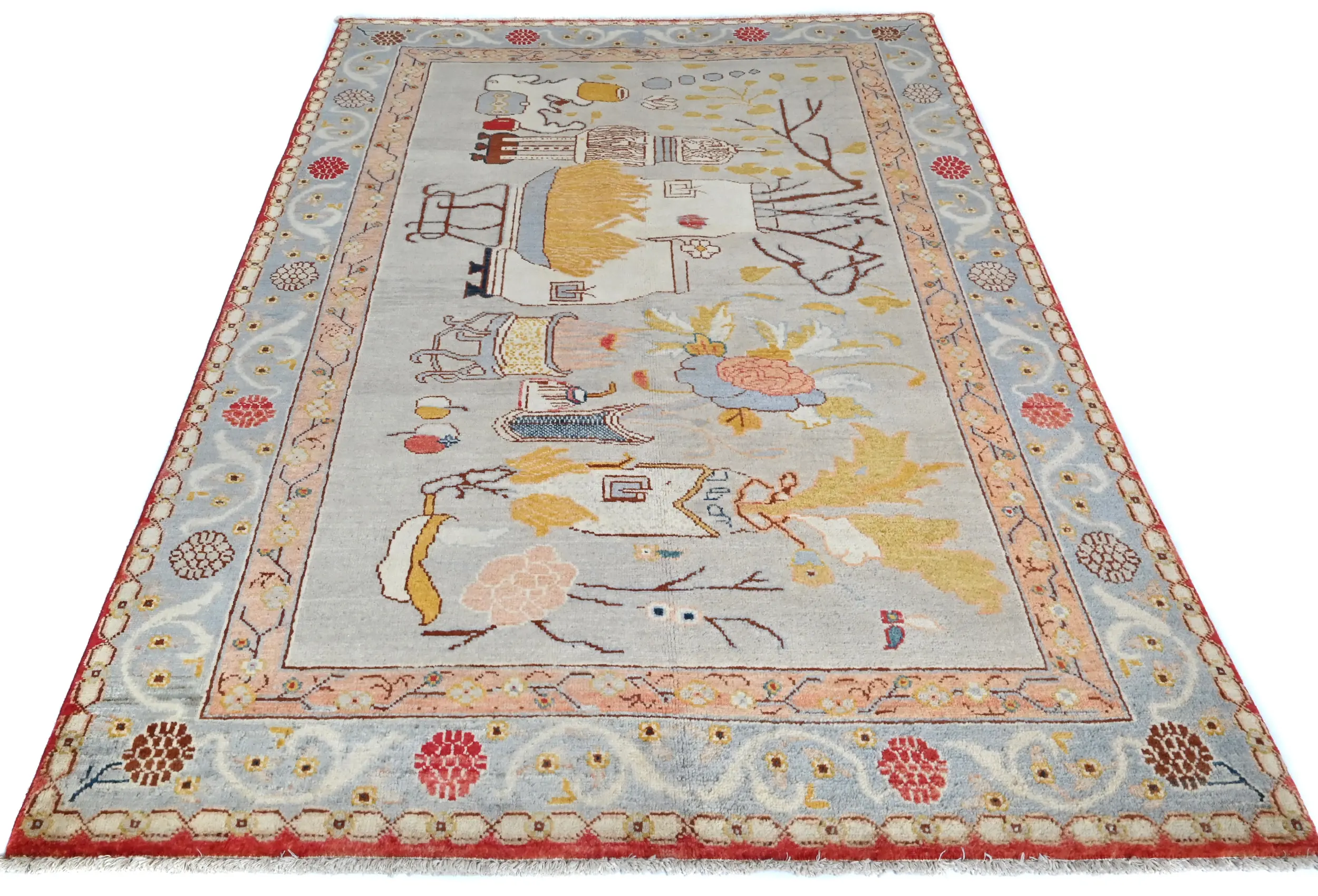 Pastel Gray Pictorial Modern 4'6X7'0 Kazak Pakistan Rug