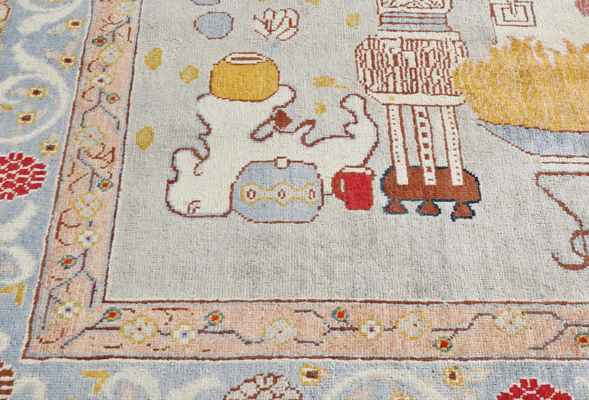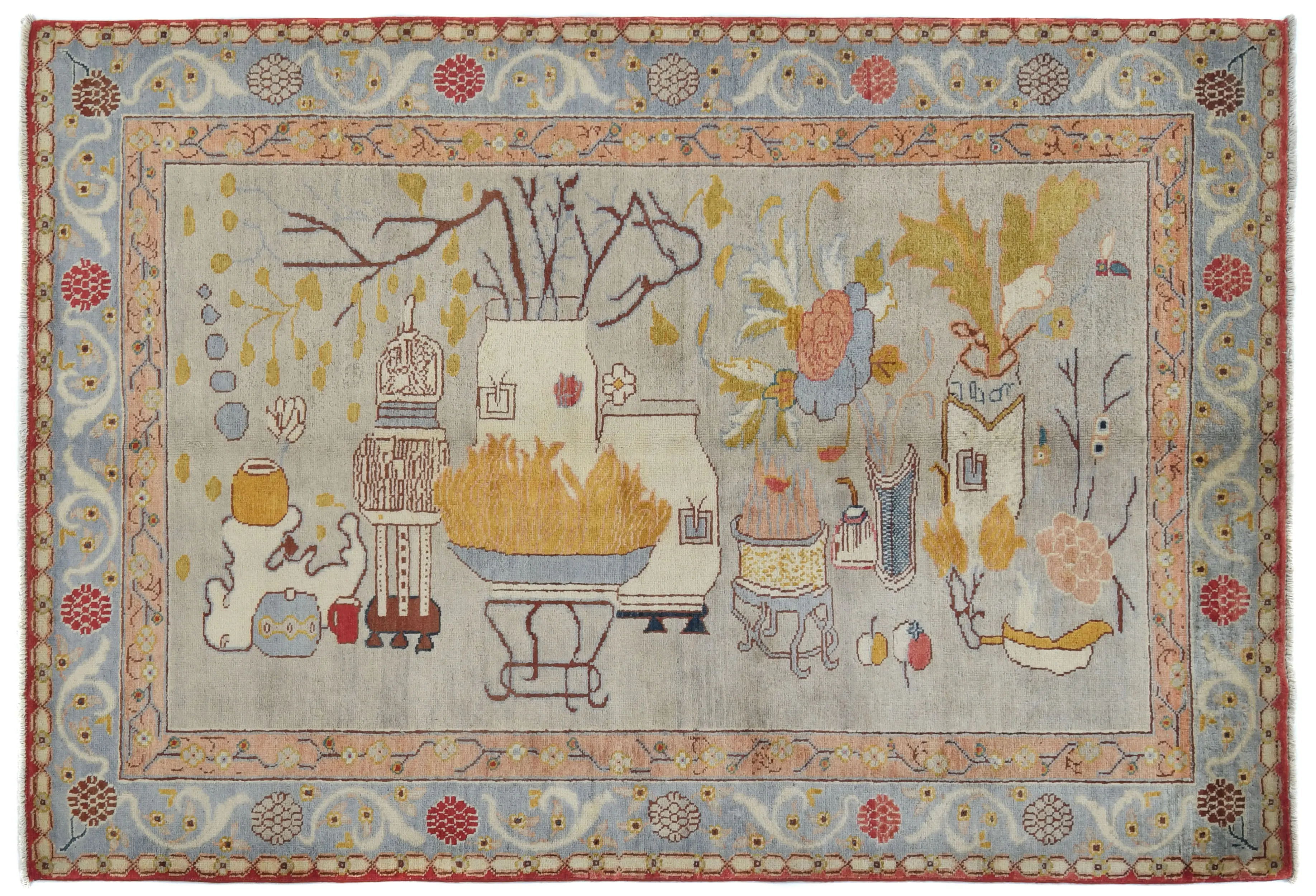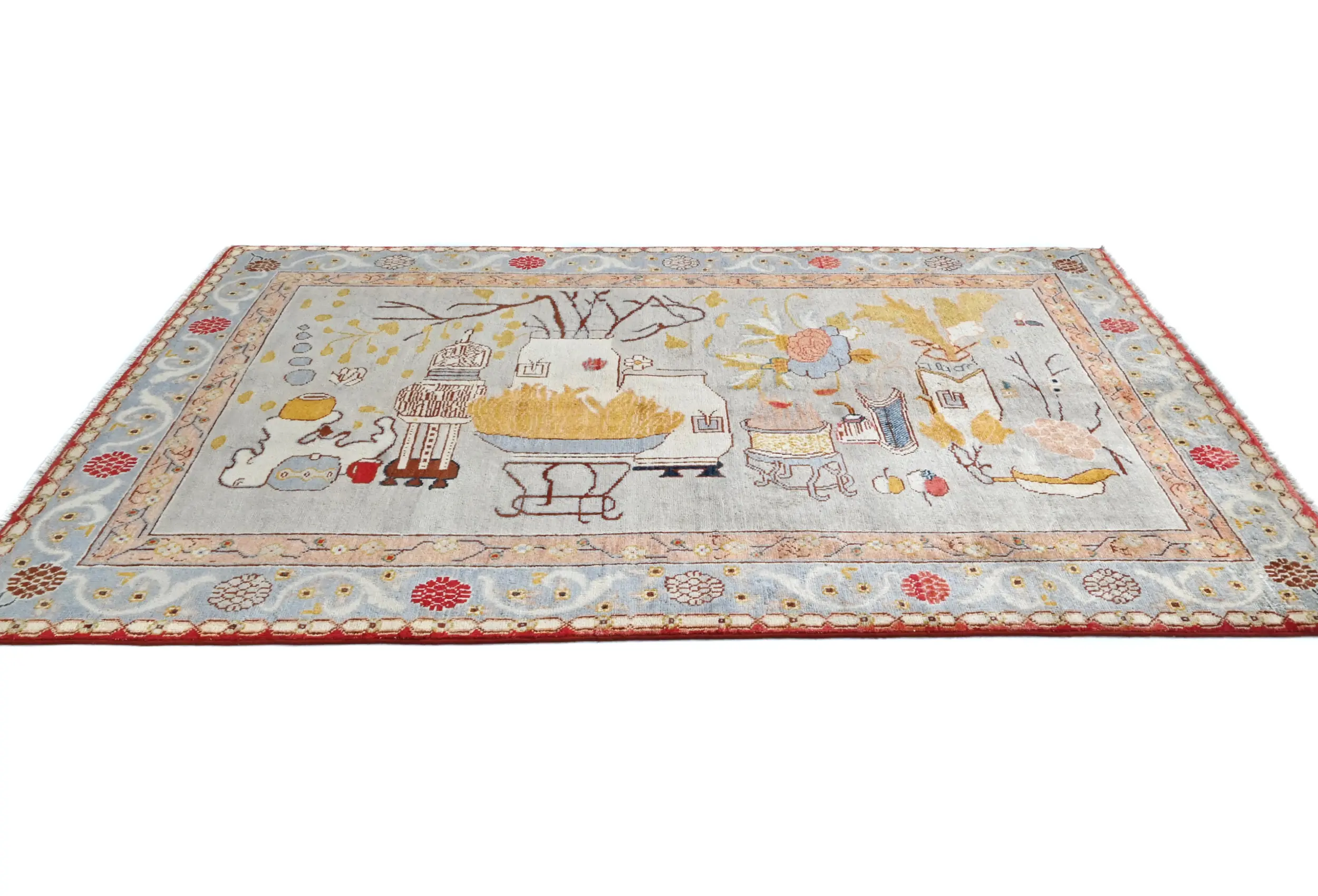 Pastel Gray Pictorial Modern 4'6X7'0 Kazak Pakistan Rug