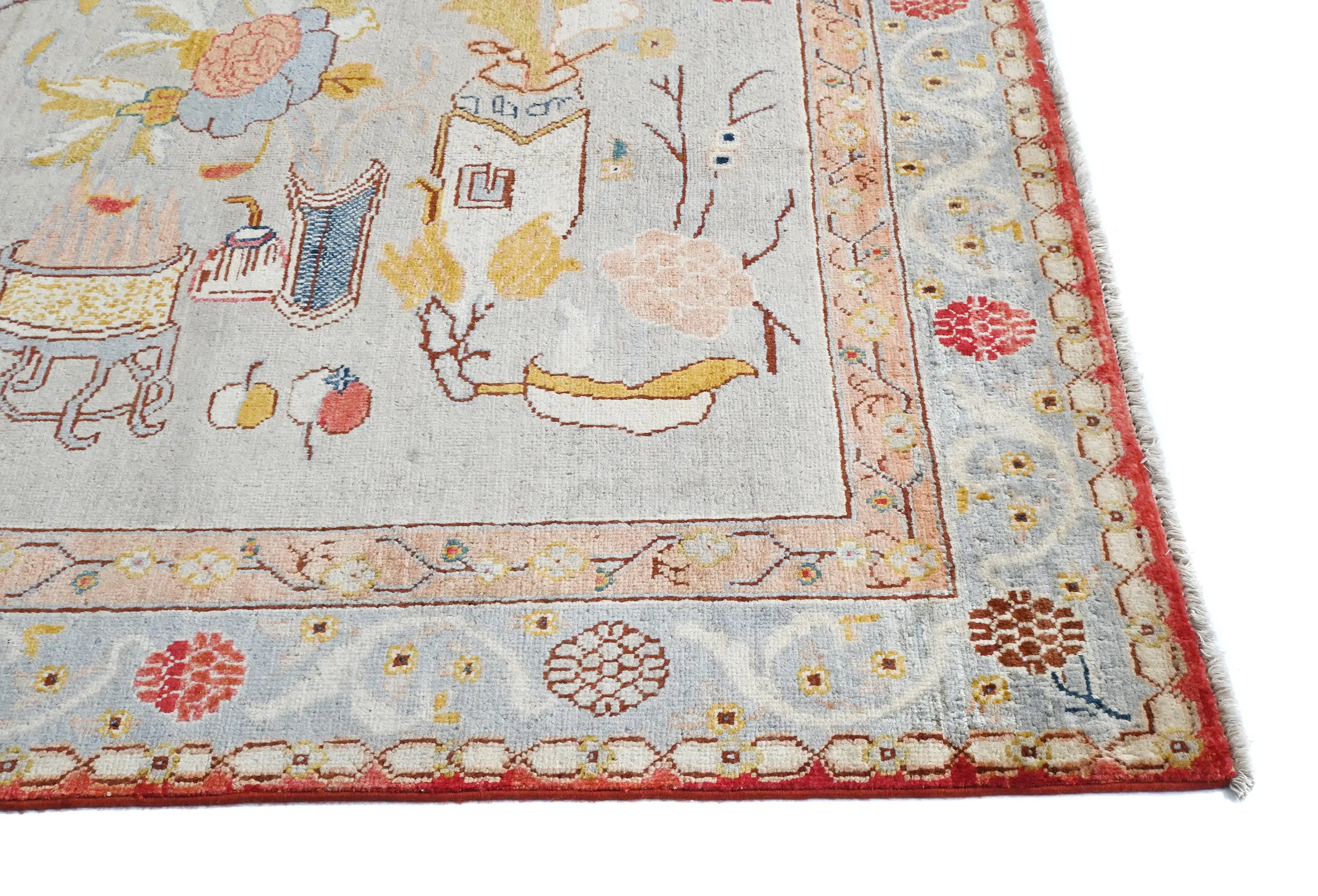 Hand Knotted 4'6X7'0 gray Oriental rug made with vegetable dyes (fine wool pile and cotton foundation), exceptional knot count, and appealing ancient designs. This Oriental rug never will go out of style and would be among your most valuable treasures.