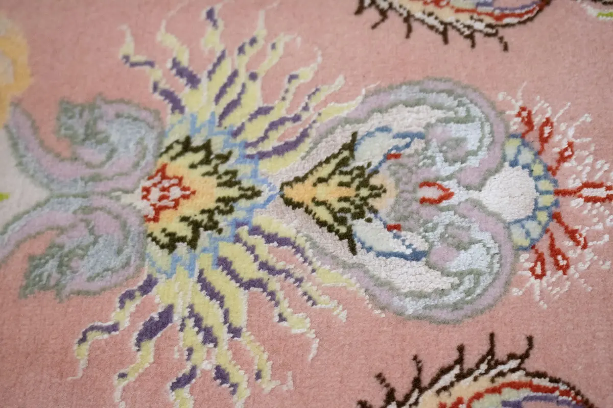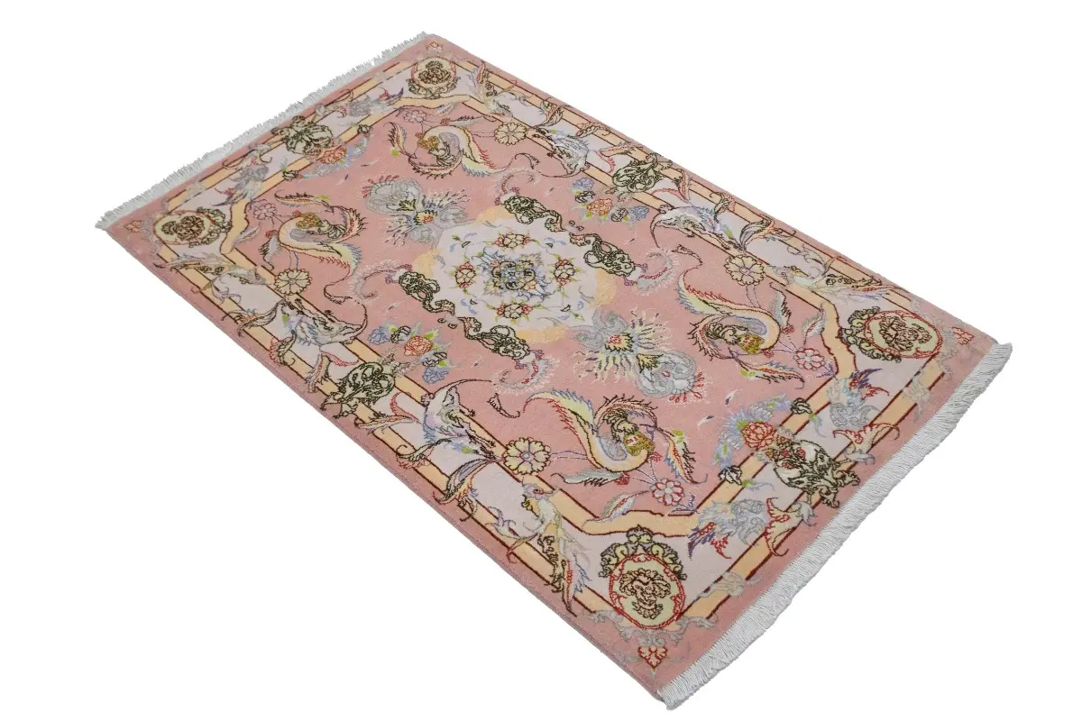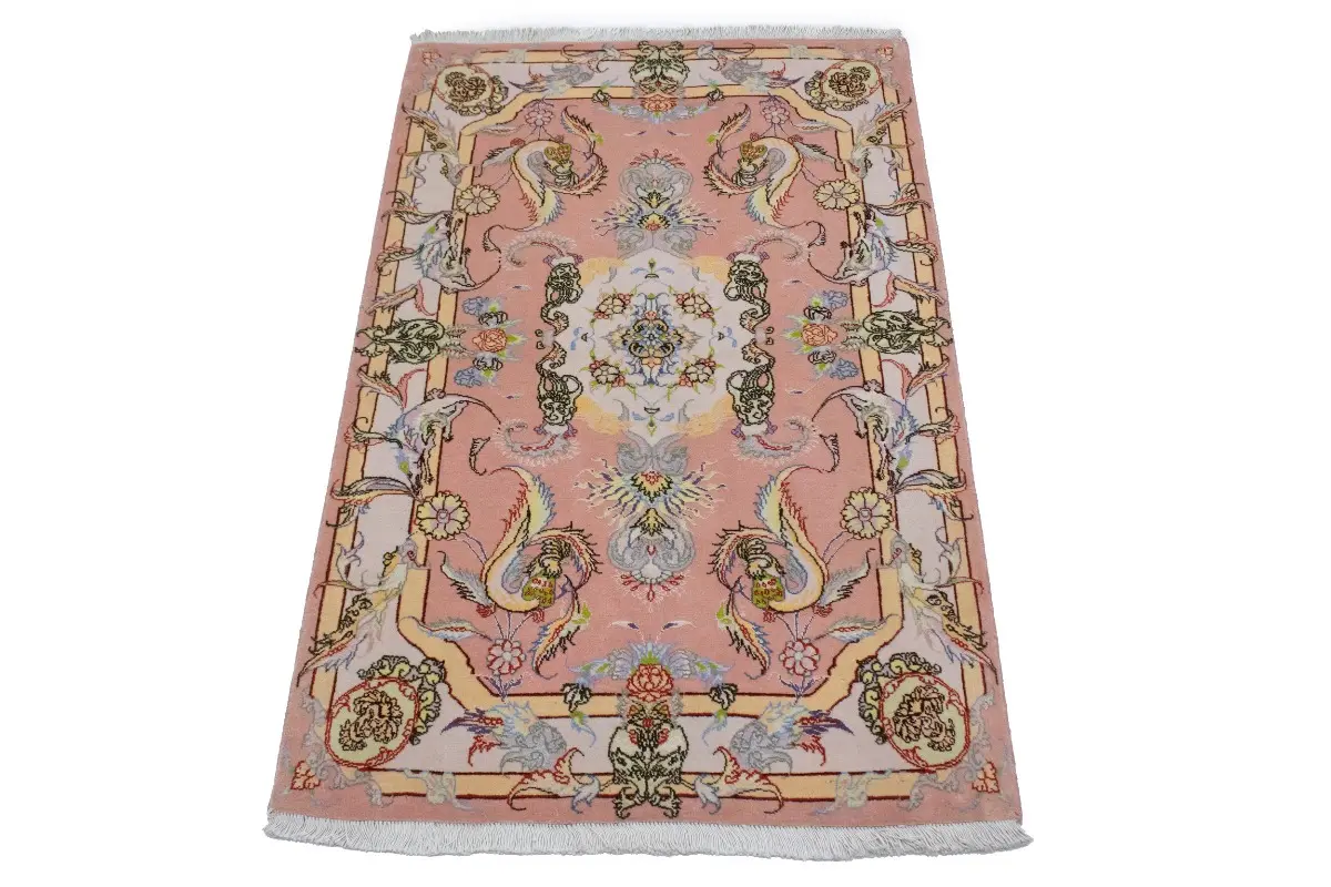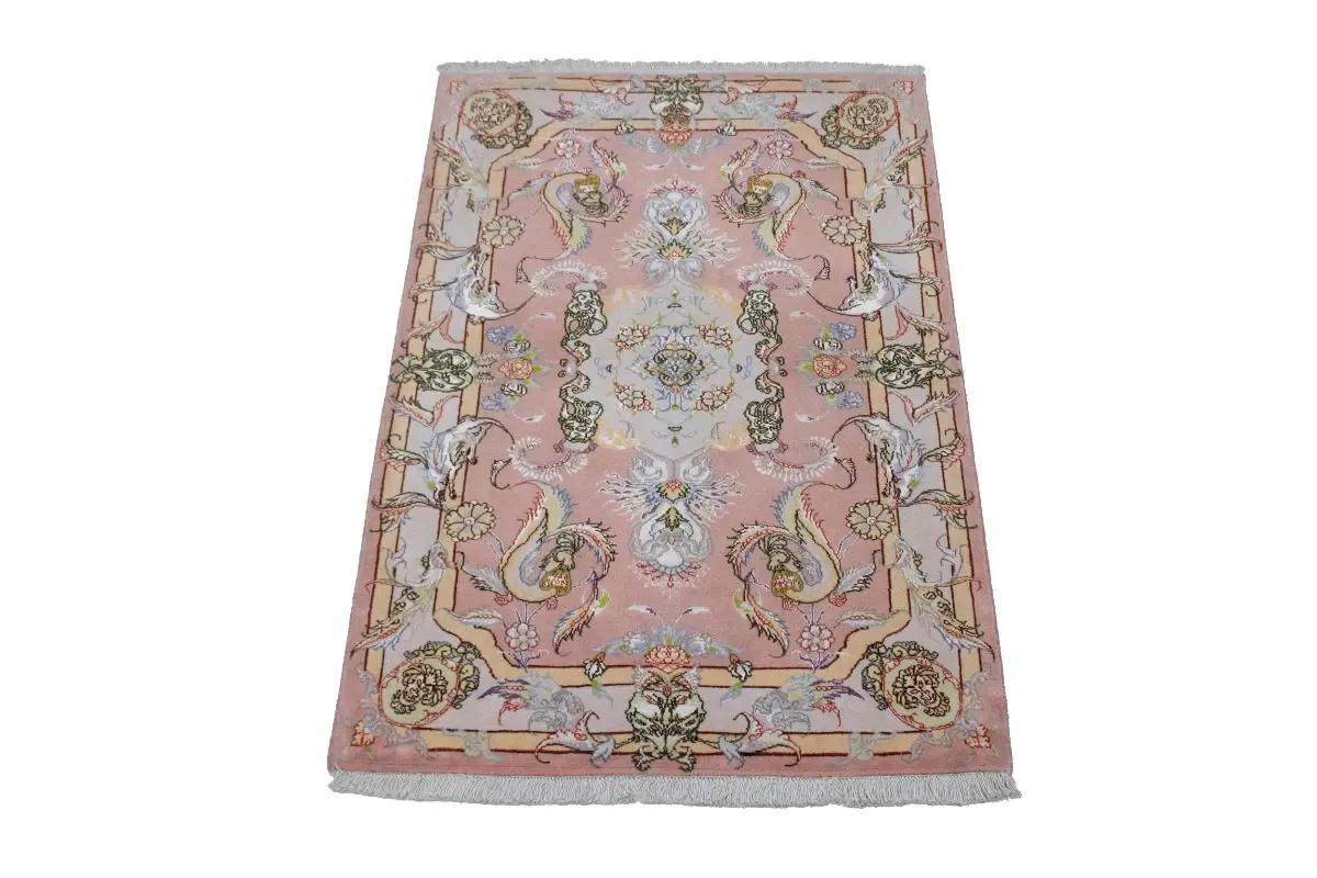 Handmade 3X4 pink Persian rug made with natural dyes (fine wool pile and cotton foundation), superior knot count, and appealing ancient designs. This Oriental rug never will go out of style and would be among your most valuable treasures.