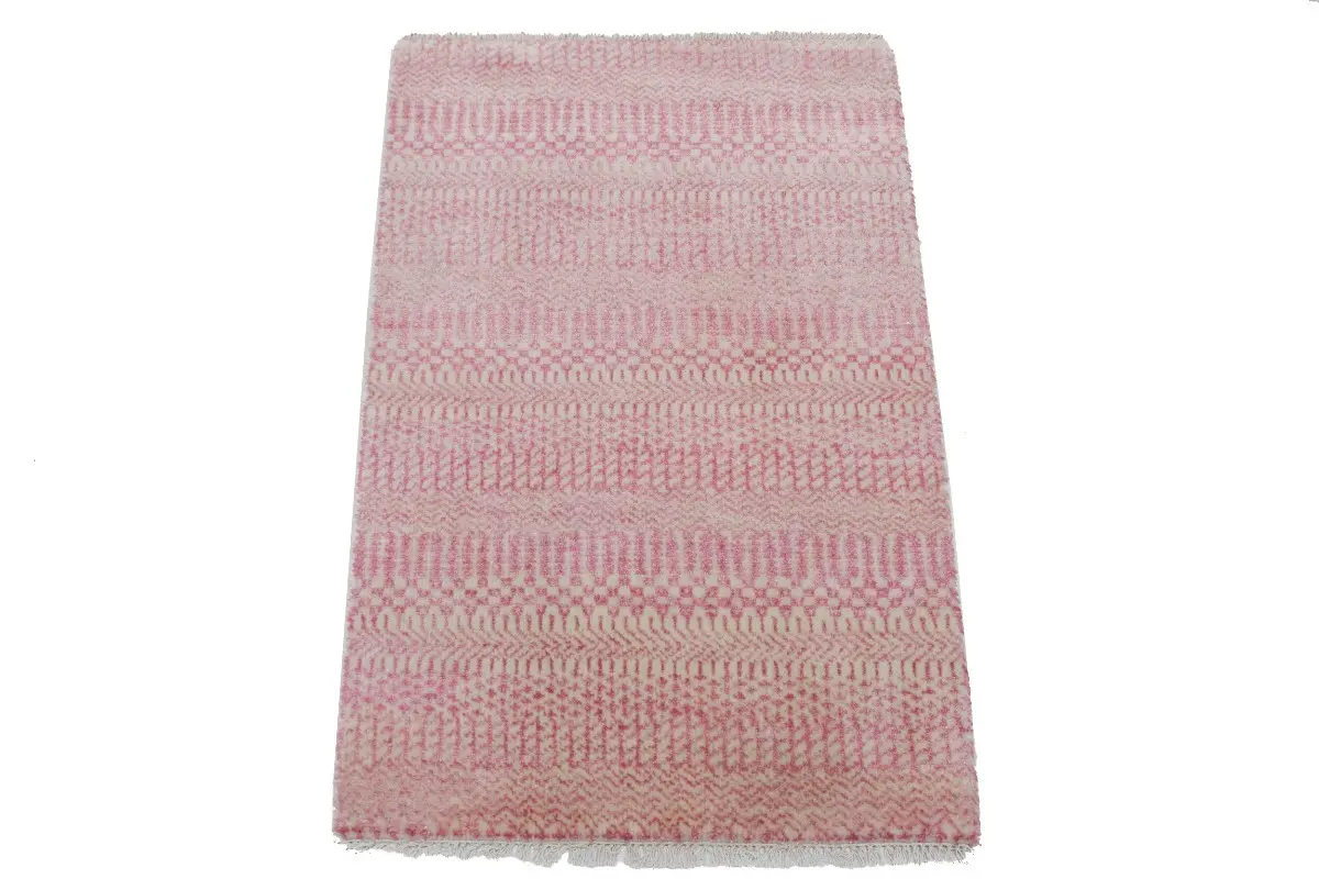 This Beautiful 2X3 Modern Area Rug was made by the hands of gifted weavers inspired by a variety of Decorative artistic designs, to recreate the aged look of the original piece with a richness of color and beautifully elaborated Striped background field. This pink Modern carpet will be completely cozy and inviting that never will go out of style! Also, this Hand-Knotted Oriental rug would be among your most valuable treasures, it is a great investment that increase in value over time, and it will last for generations because was woven with high-quality 100% Wool. Environmentally friendly, opulent yet affordable; this Recently Made Beautiful Modern rug will give you a thorough amount of character to help define your living space with sophistication and warmth that will capture the eyes and attention of your audience (homeowners, designers, decorators, family and friends).