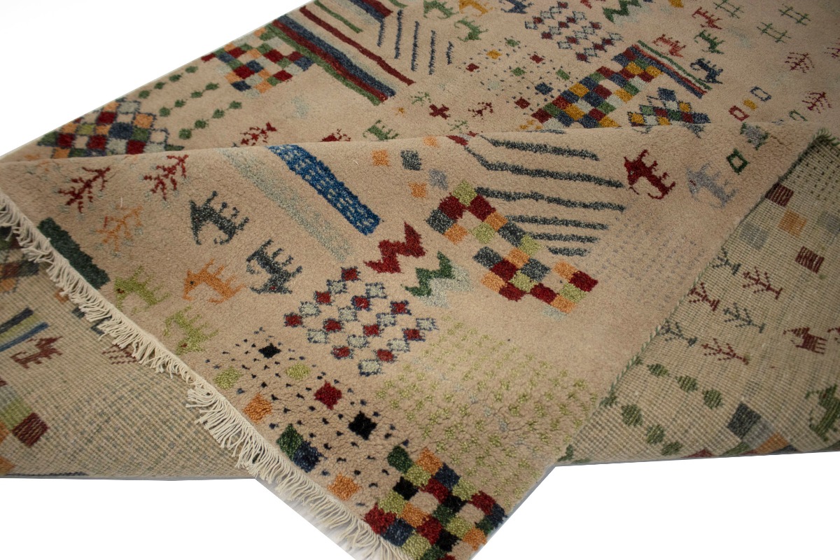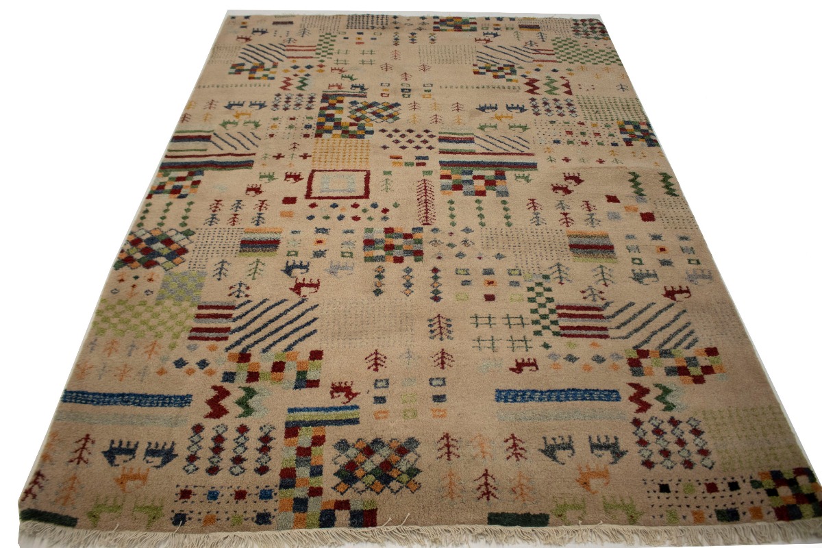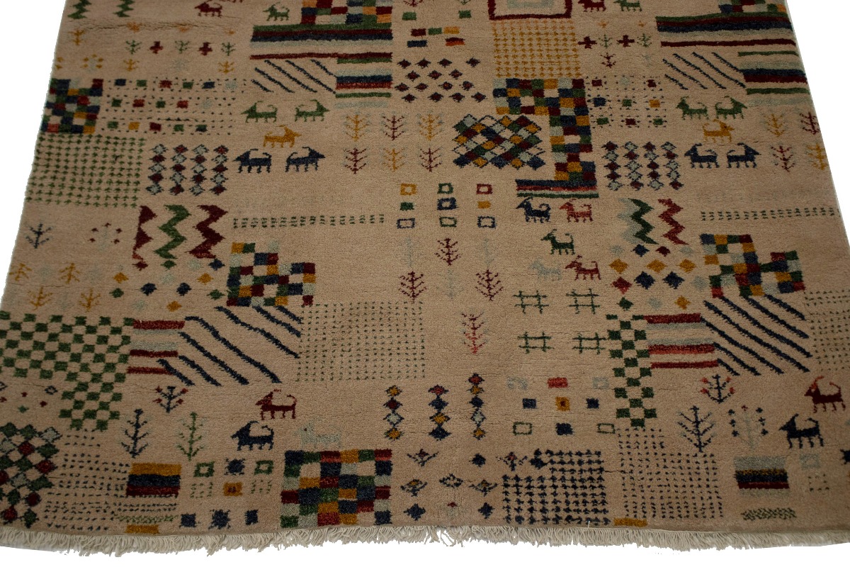 Pinky Beige Tribal 5'6X8 Indo-Gabbeh Oriental Rug