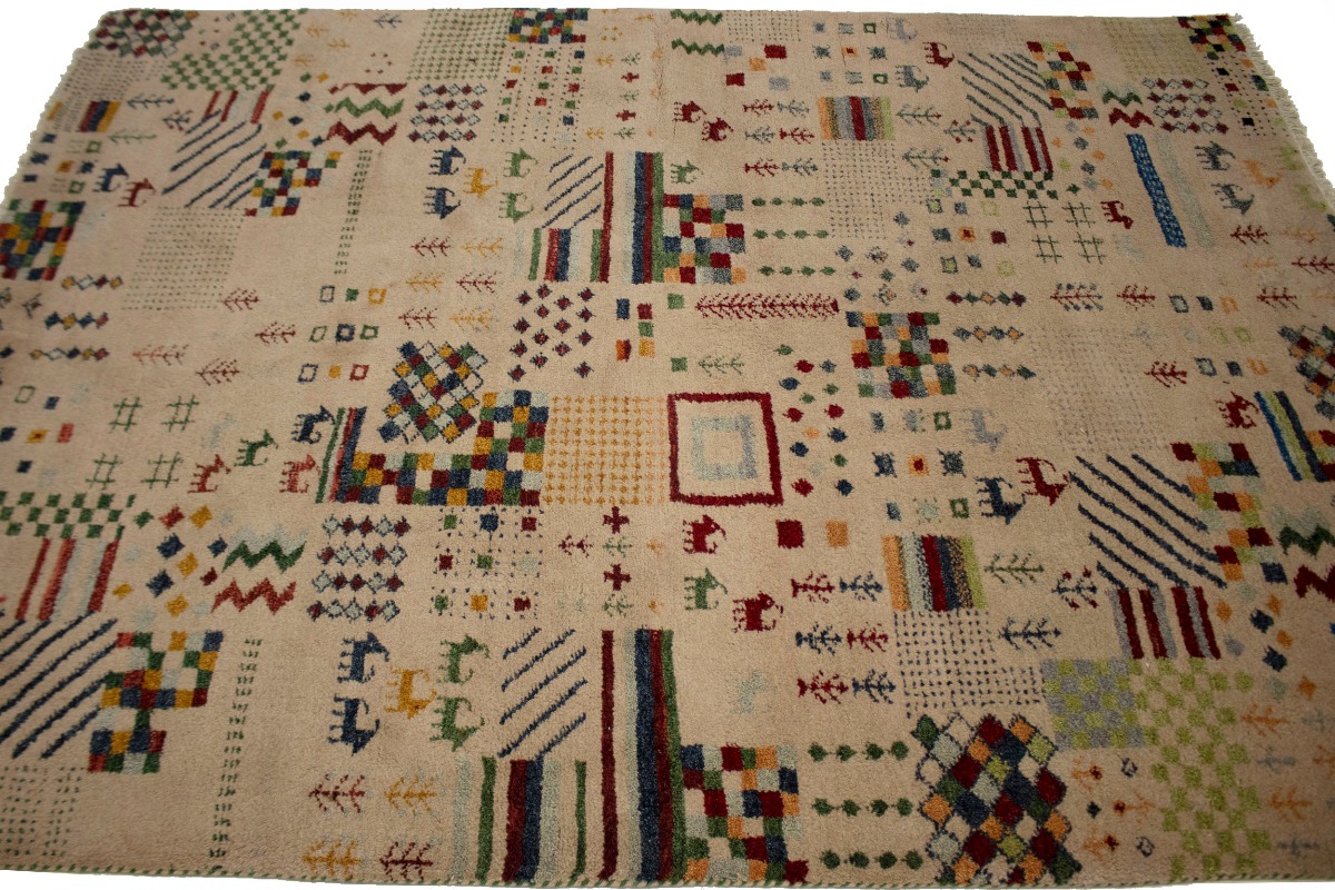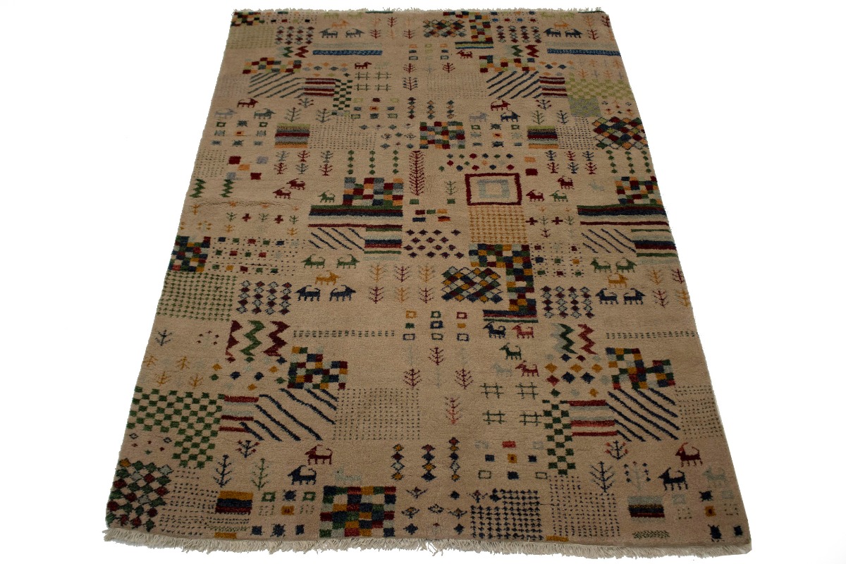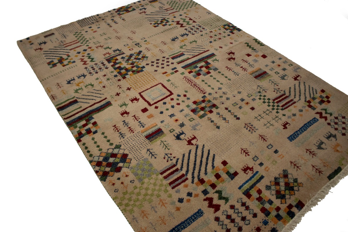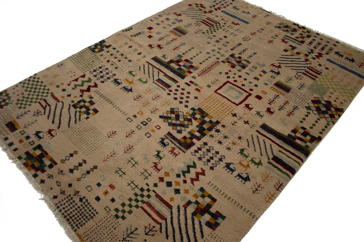 Pinky Beige Tribal 5'6X8 Indo-Gabbeh Oriental Rug