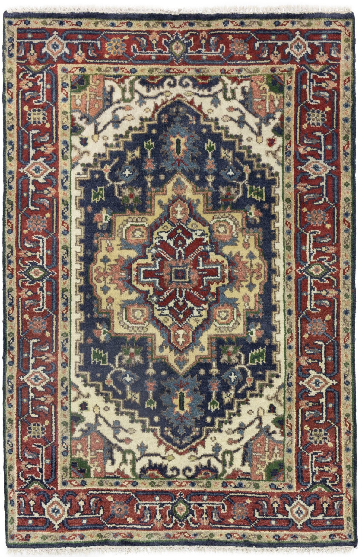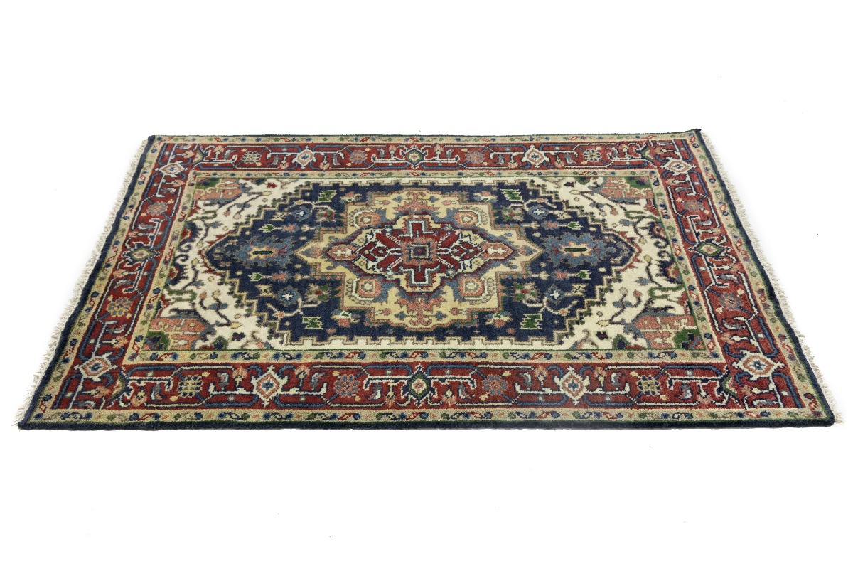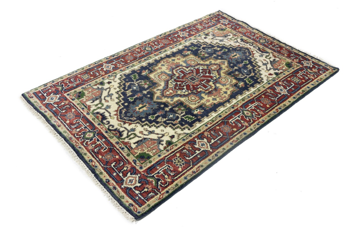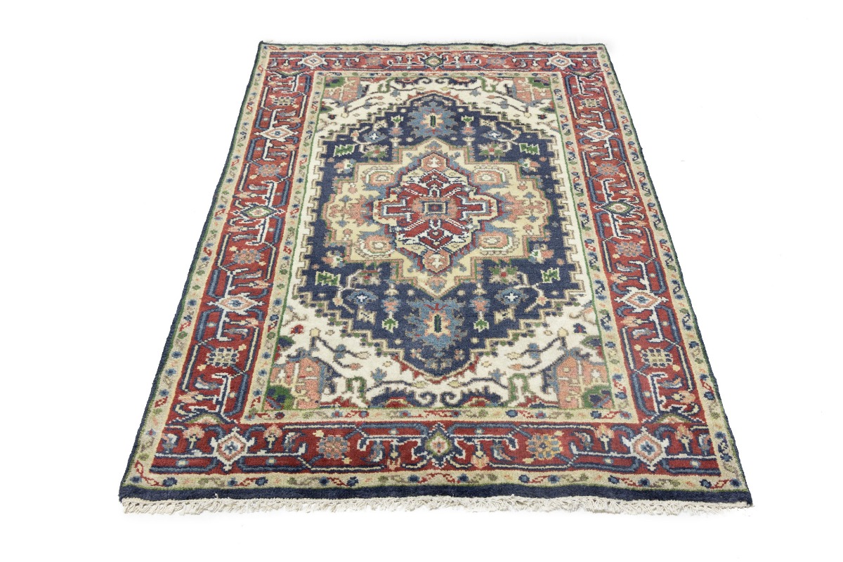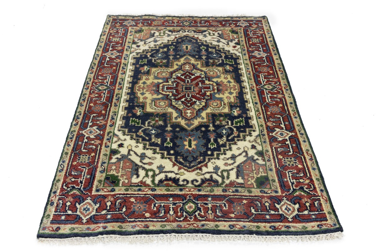 Purple-navy Geometric 4X6 Heriz Serapi Oriental Rug