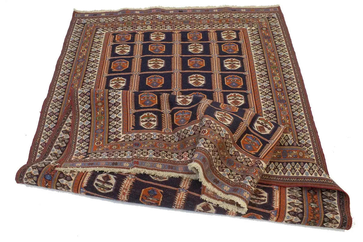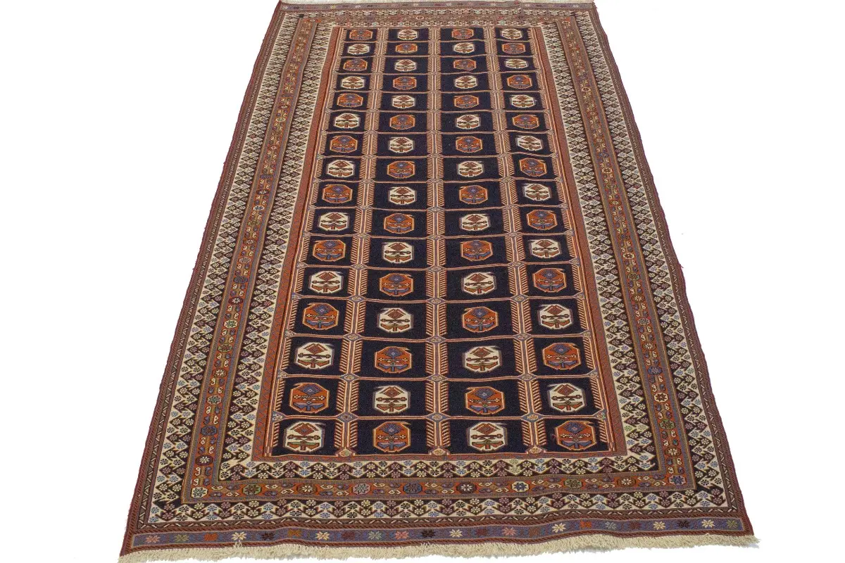 Purple-navy Tribal 4X7 Sumak Persian Rug