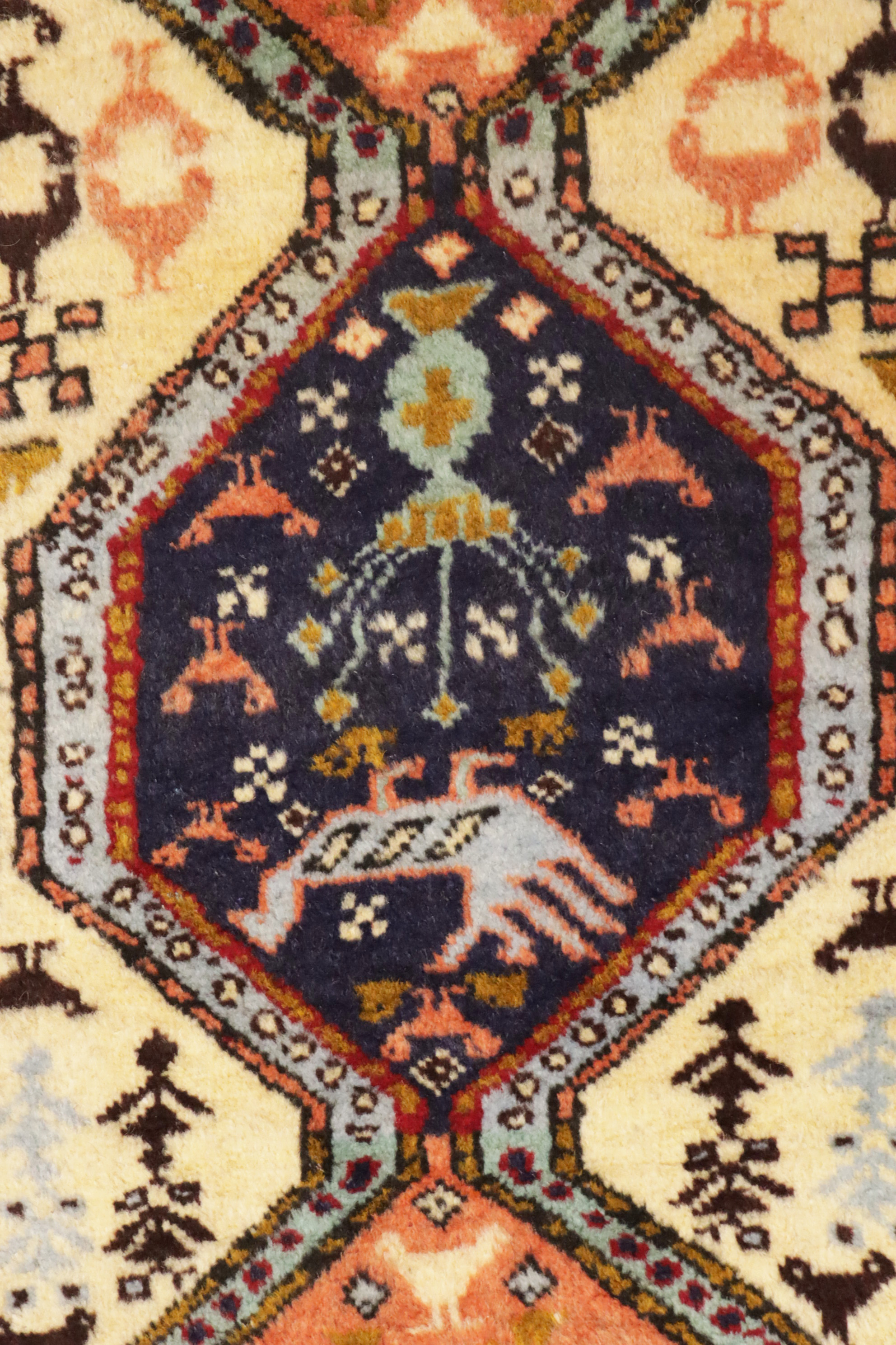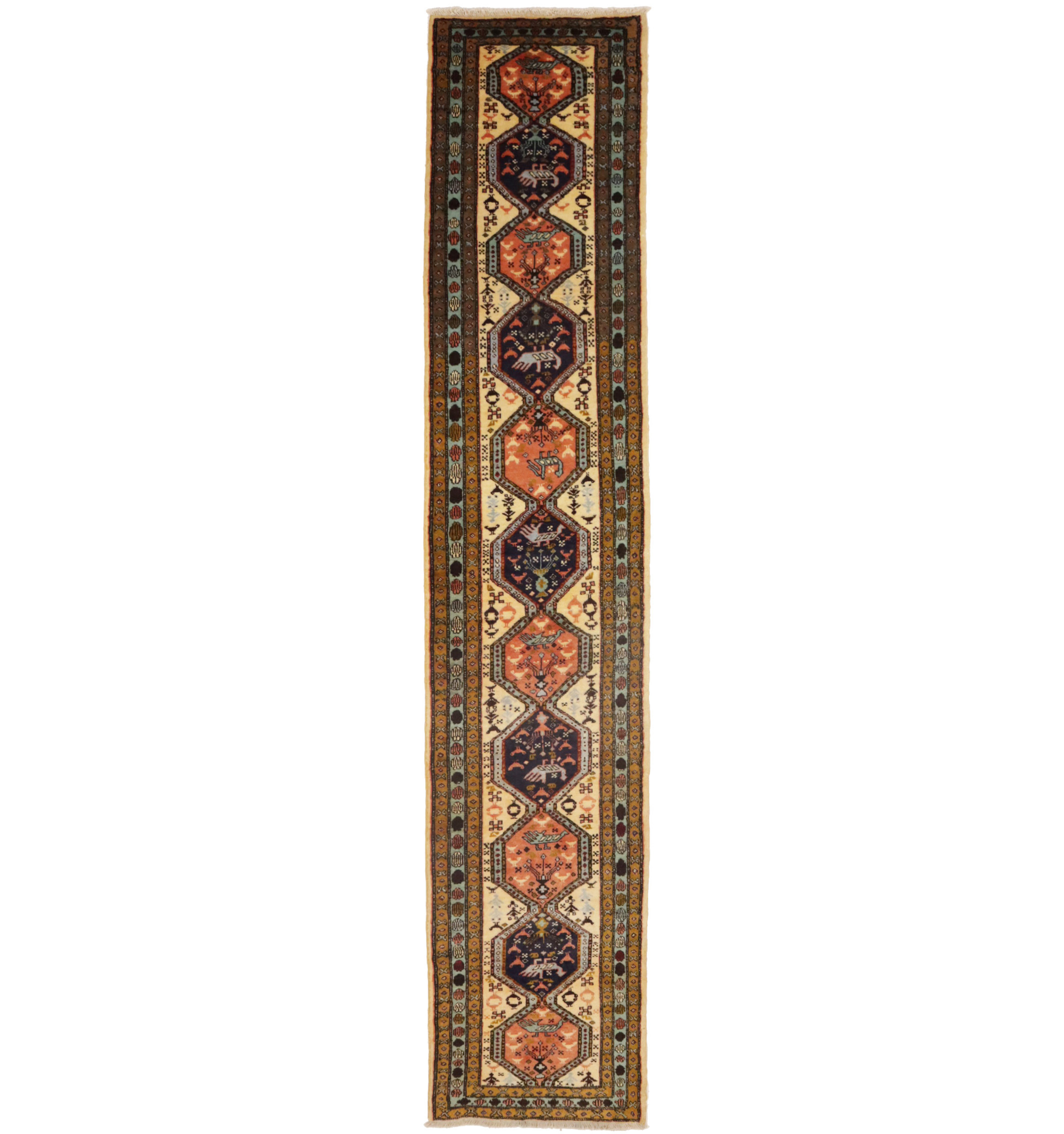 This authentic 2'5X12'9 cream vintage Persian runner was masterly knotted by the hands of weavers inspired by a variety of wonderful artistic designs, to recreate the aged look of the original piece with a richness of color and intricate patterned background field. What set this tribal Oriental area runner from the others are the material and dye used (wool pile and cotton foundation), knot count, antique designs, fantastic grades, and its regional historical connection: it has deep roots, from the story of the people who produced it to the meaning of the symbols and colors displayed across its canvas that have been praised for centuries. This home décor carpet will be completely cozy and inviting that never will go out of style!
