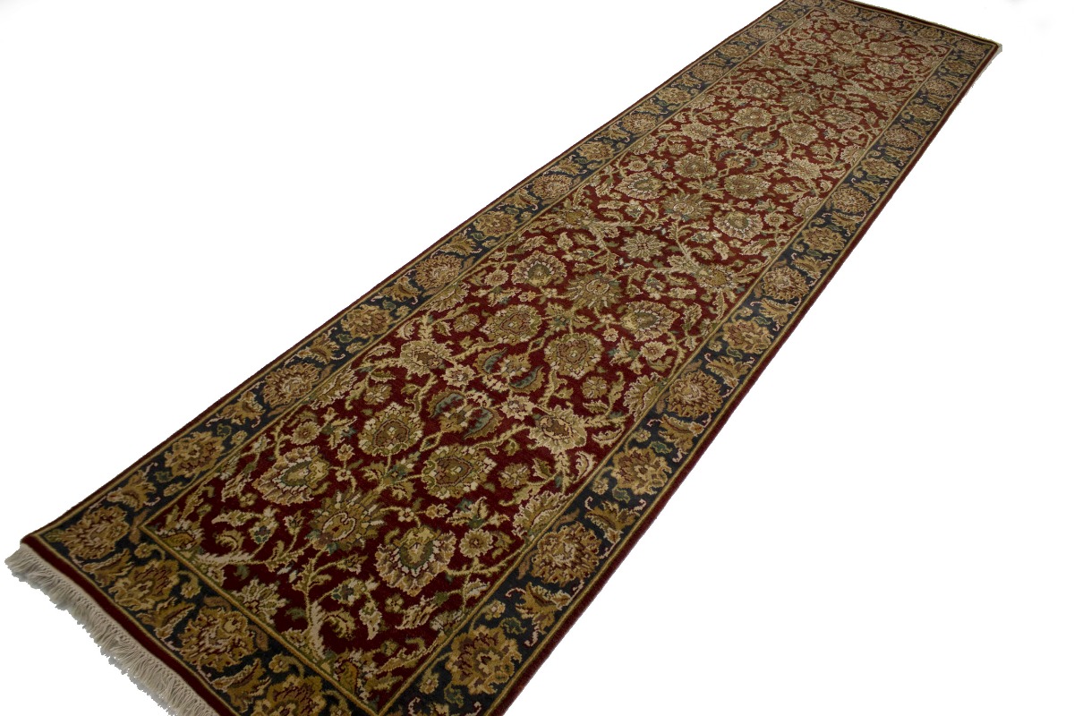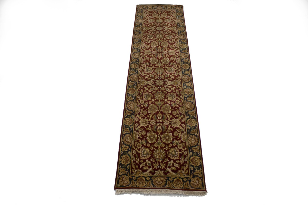 Hand Knotted 3X12 red oriental runner made with vegetable dyes (fine wool pile and cotton foundation), exceptional knot count, and appealing ancient designs. This Oriental runner never will go out of style and would be among your most valuable treasures.