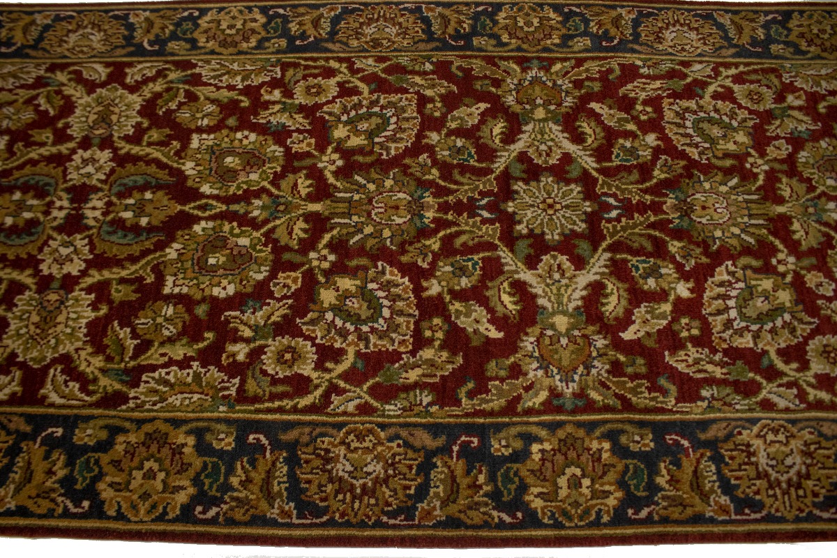 This original 3X12 red new Oriental runner was made by the hands of talented weavers influenced by a variety of gorgeous symmetrical artistic designs, to recreate the aged look of the unique piece with a richness of color and very balanced background field. What set this vintage style Oriental area runner from the others are the material and dye used (wool pile and cotton foundation), knot count, antique designs, fantastic grades, and its regional historical connection: it has deep roots, from the story of the people who produced it to the meaning of the symbols and colors displayed across its canvas that have been praised for centuries. This Indian home décor carpet will be completely cozy and inviting that never will go out of style! Also, this Oriental rug would be among your most valuable treasures, it is a great investment that accrues value over time, and it will last a lifetime because was woven with high-quality, all-natural wool. Eco-friendly, opulent yet affordable; this runner will give you an extra pop of character to help define your home environment with sophistication and warmth that will capture the eyes and attention of your audience (homeowners, designers, decorators, family and friends). OT-4704