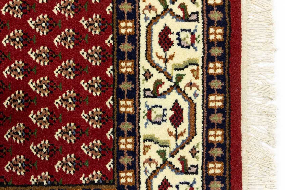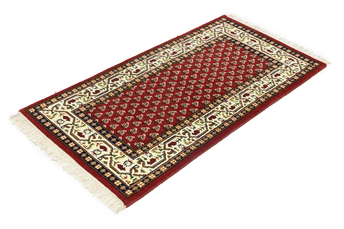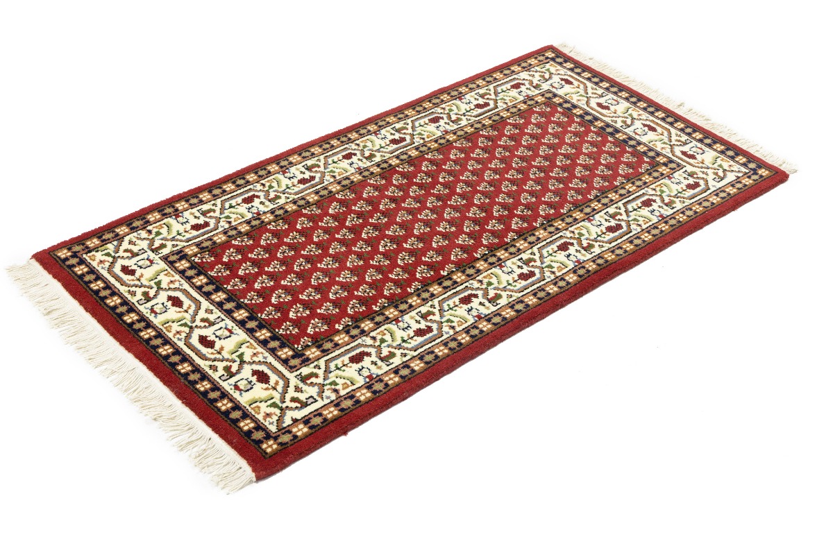 This genuine 2'4X4'8 red new Oriental rug was made by the hands of gifted weavers inspired by a variety of spectacular artistic designs, to recreate the aged look of the original piece with a richness of color and ornately patterned background field. What set this vintage style Oriental area rug from the others are the material and dye used (wool pile and cotton foundation), knot count, ancient designs, fantastic grades, and its regional historical connection: it has deep roots, from the story of the people who produced it to the meaning of the symbols and colors displayed across its canvas that have been praised for centuries. This Indian home décor carpet will be completely cozy and inviting that never will go out of style! Also, this Oriental rug would be among your most valuable treasures, it is a great investment that accrues value over time, and it will last for generations because was woven with high-quality, all-natural wool. Environmentally friendly, opulent yet affordable; this rug will give you a thorough amount of character to help define your living space with elegance and warmth that will capture the eyes and attention of your audience (homeowners, designers, decorators, family and friends). OT-8502