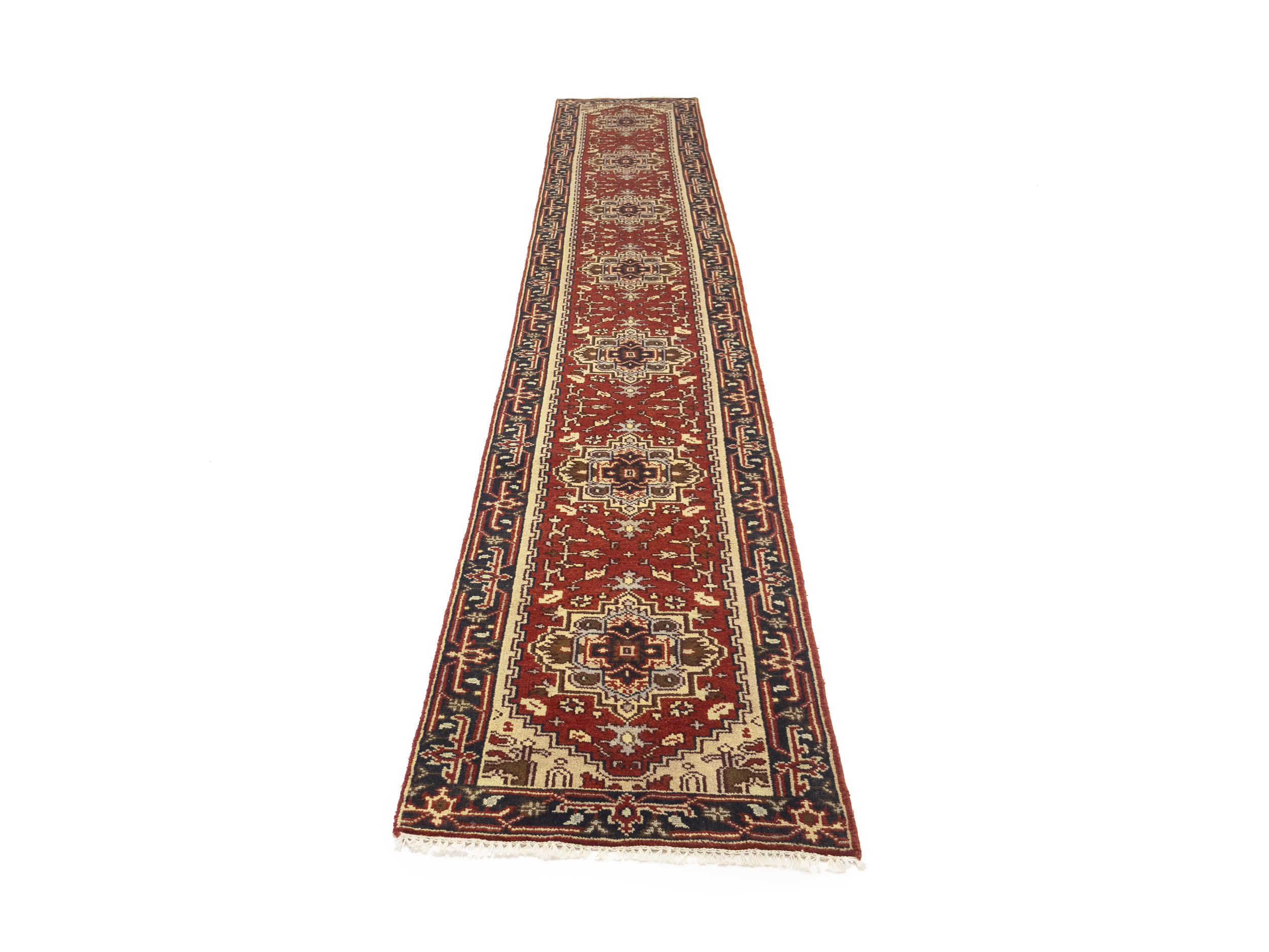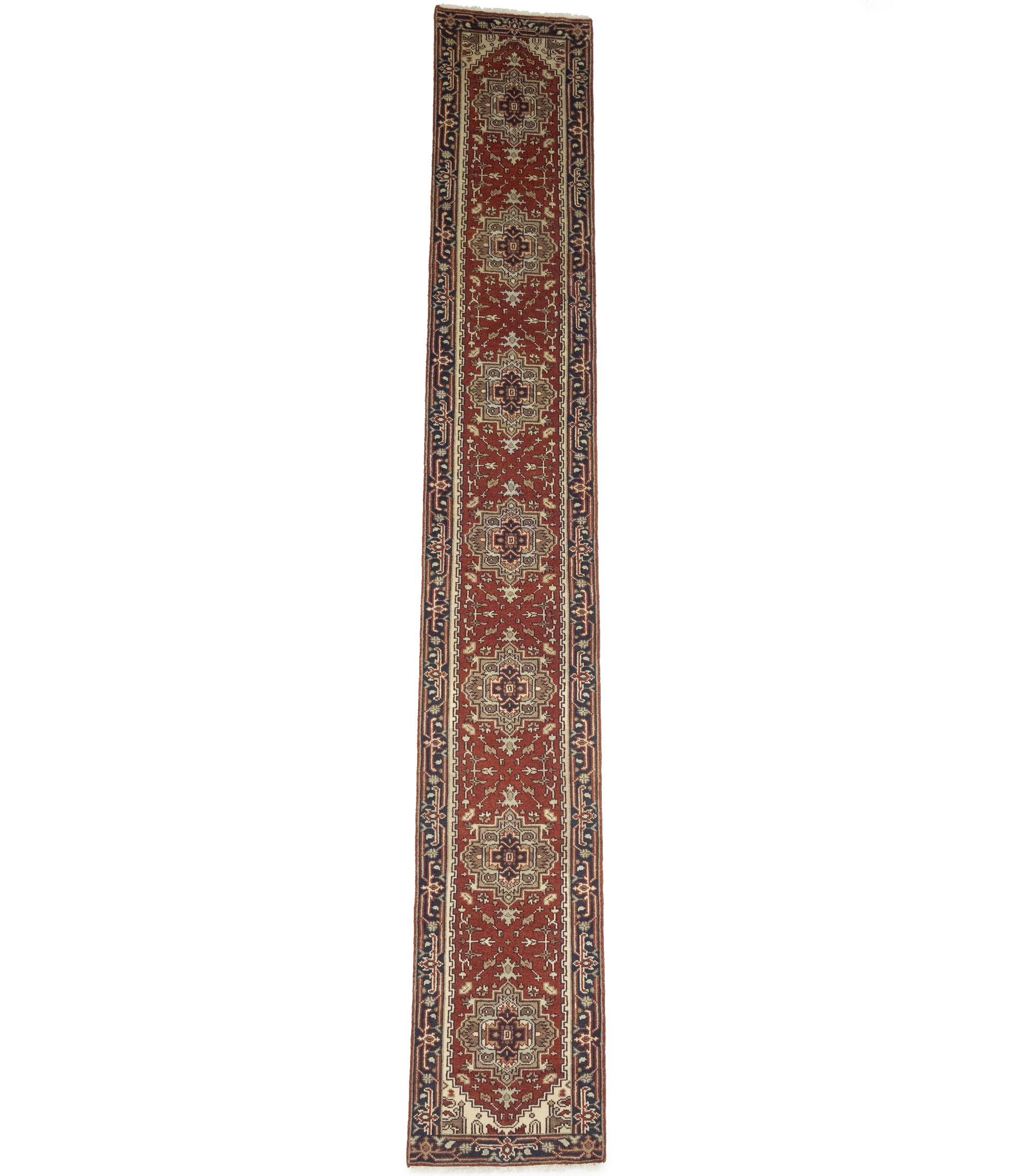 Red Floral 2'5X16 Heriz Serapi Oriental Runner Rug