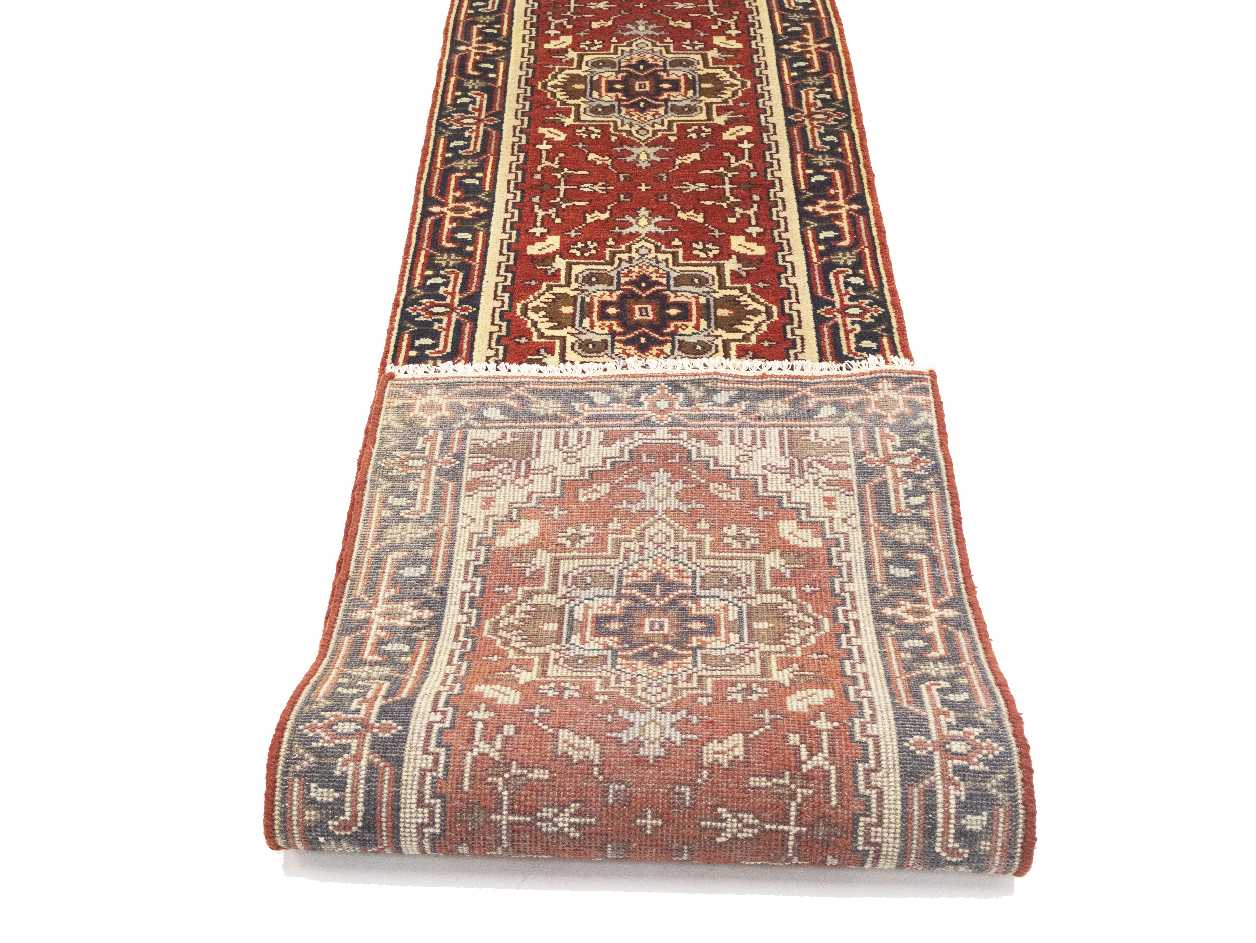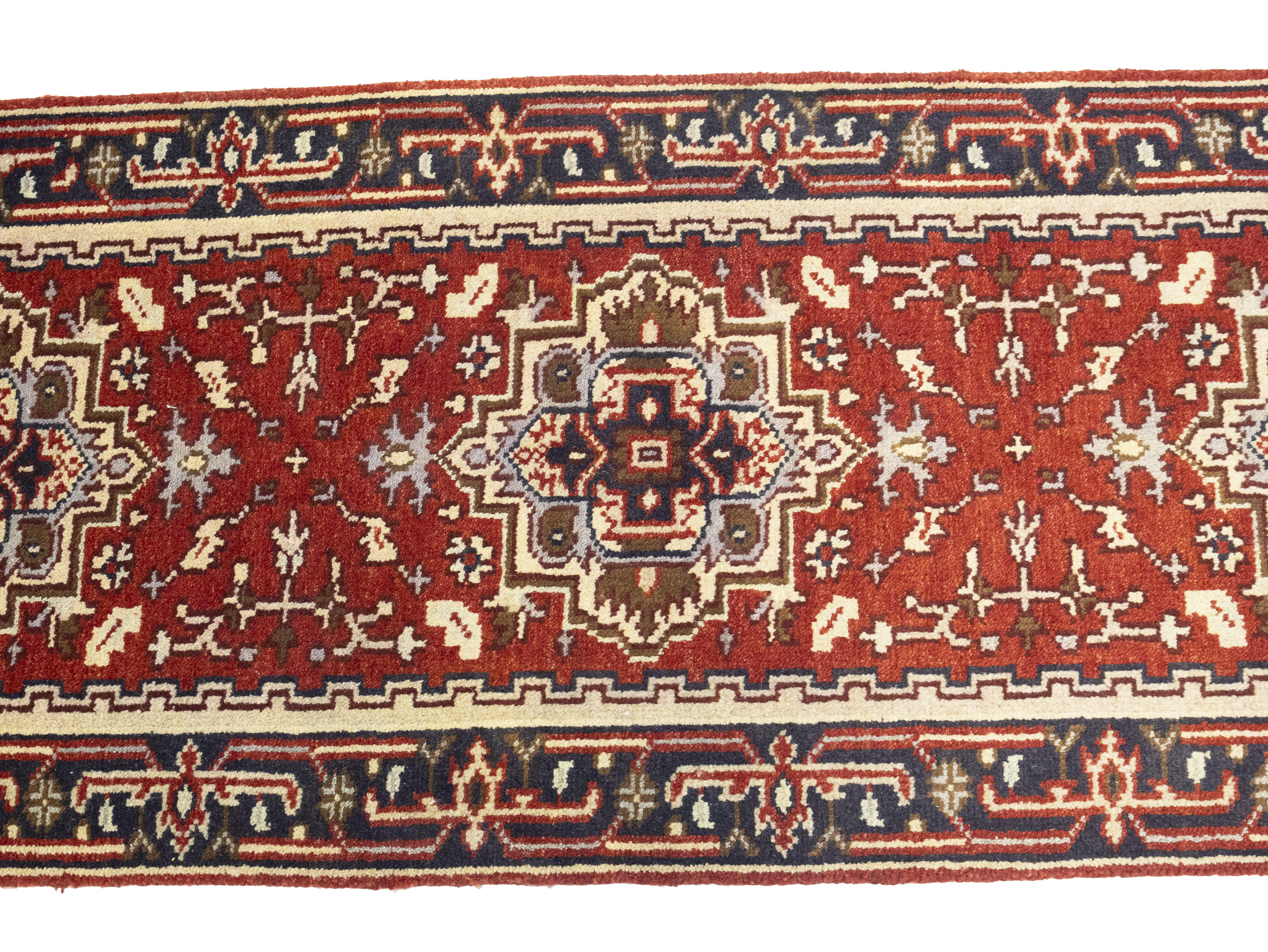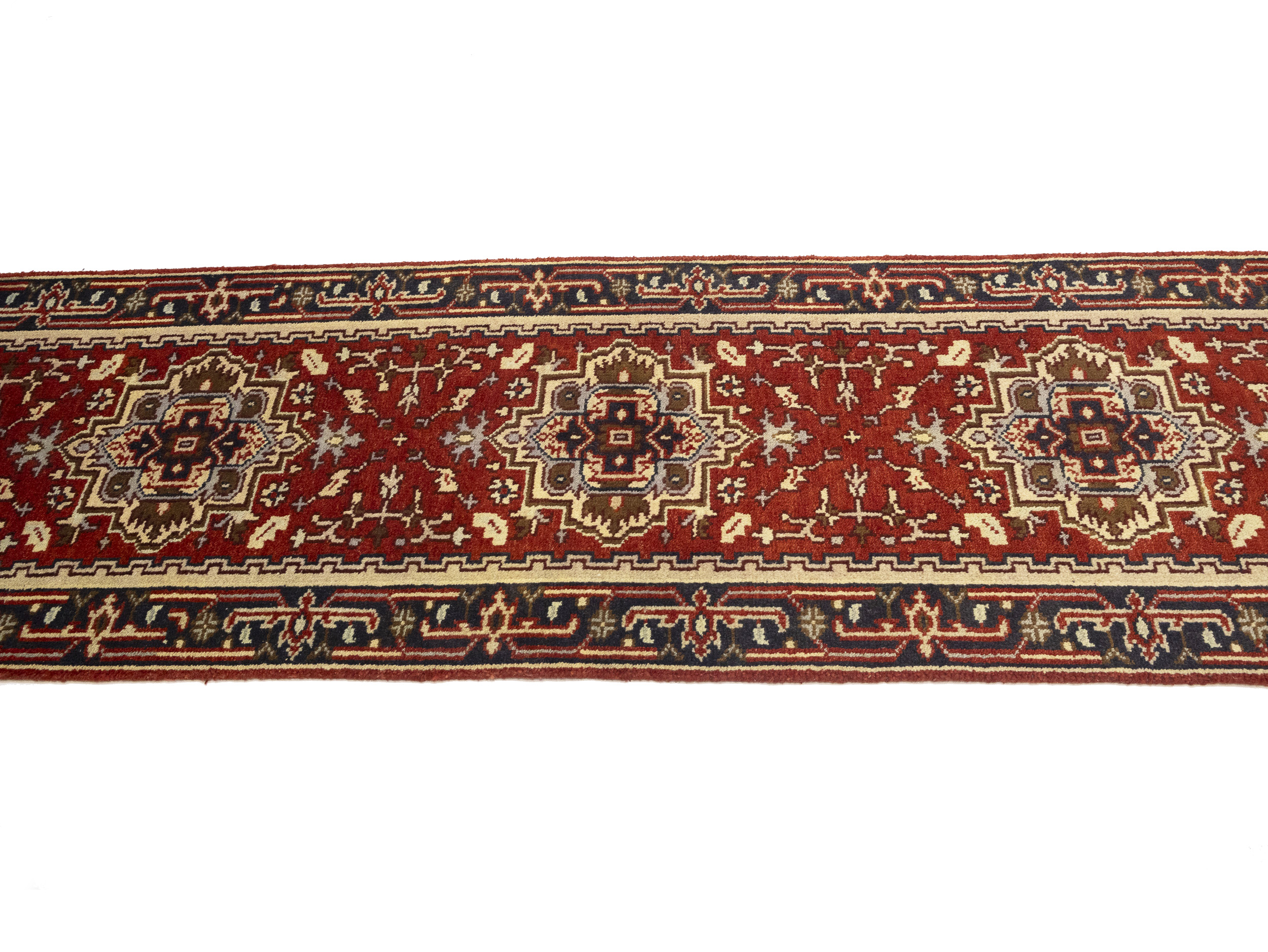 Handmade 2'5X16 red Oriental runner made with vegetable dyes (fine wool pile and cotton foundation), superior knot count, and alluring ancient designs. This Oriental runner never will go out of style and would be among your most valuable treasures.