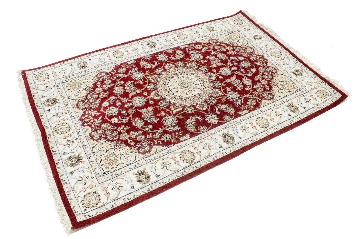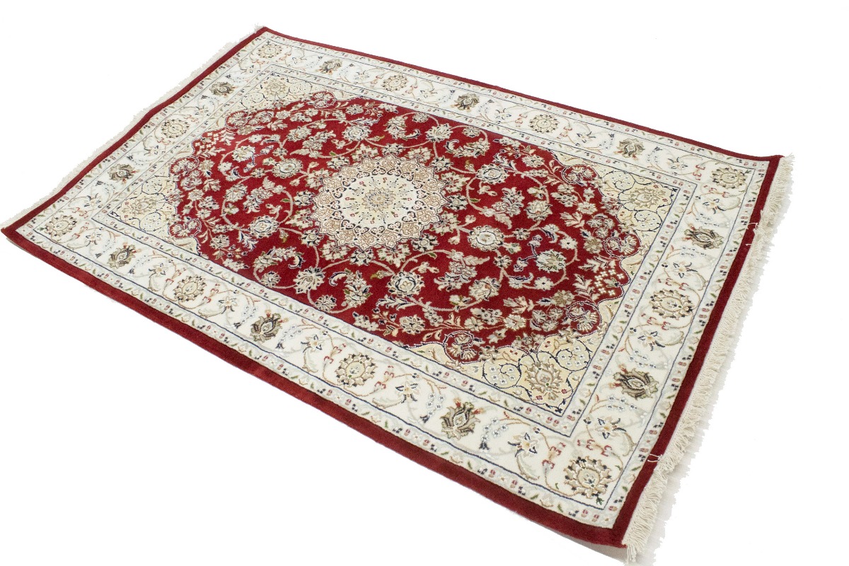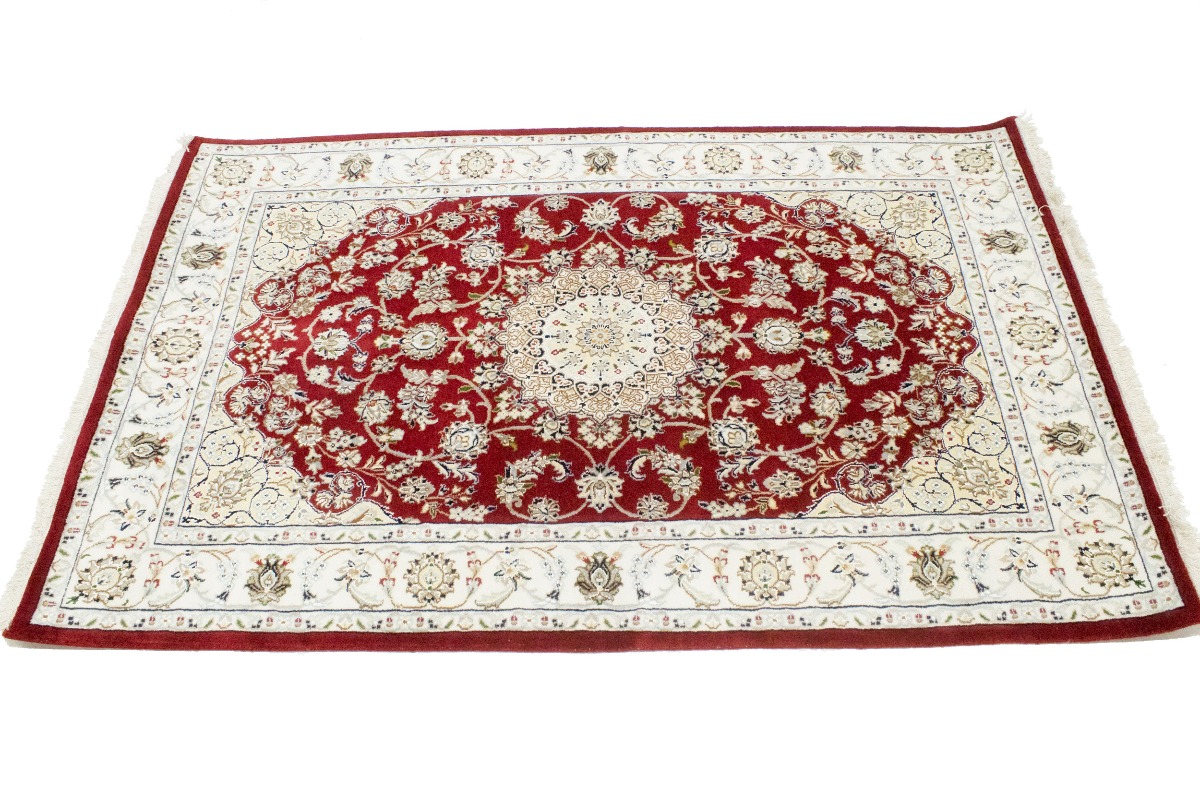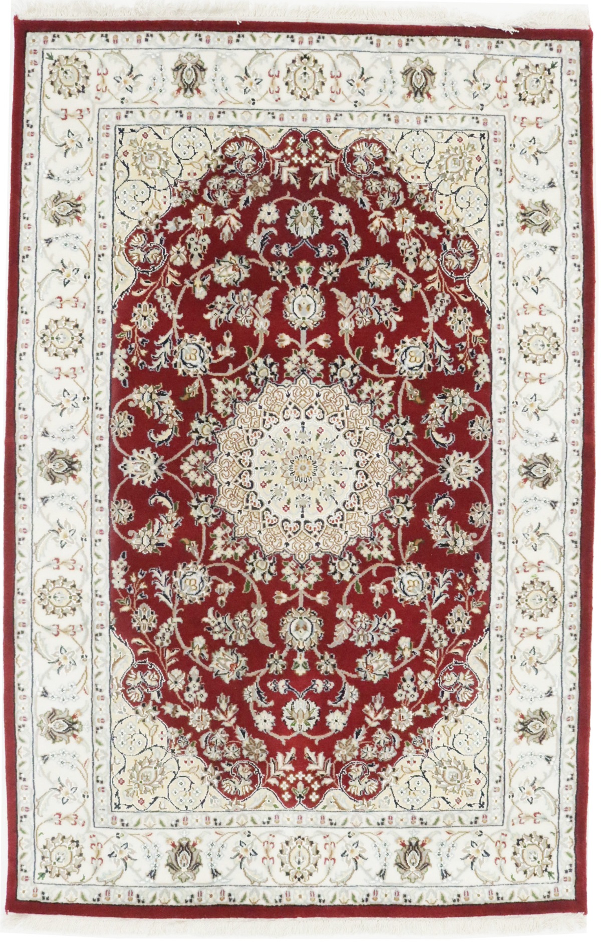 Red Floral 4X6 Indo-Nain Oriental Rug