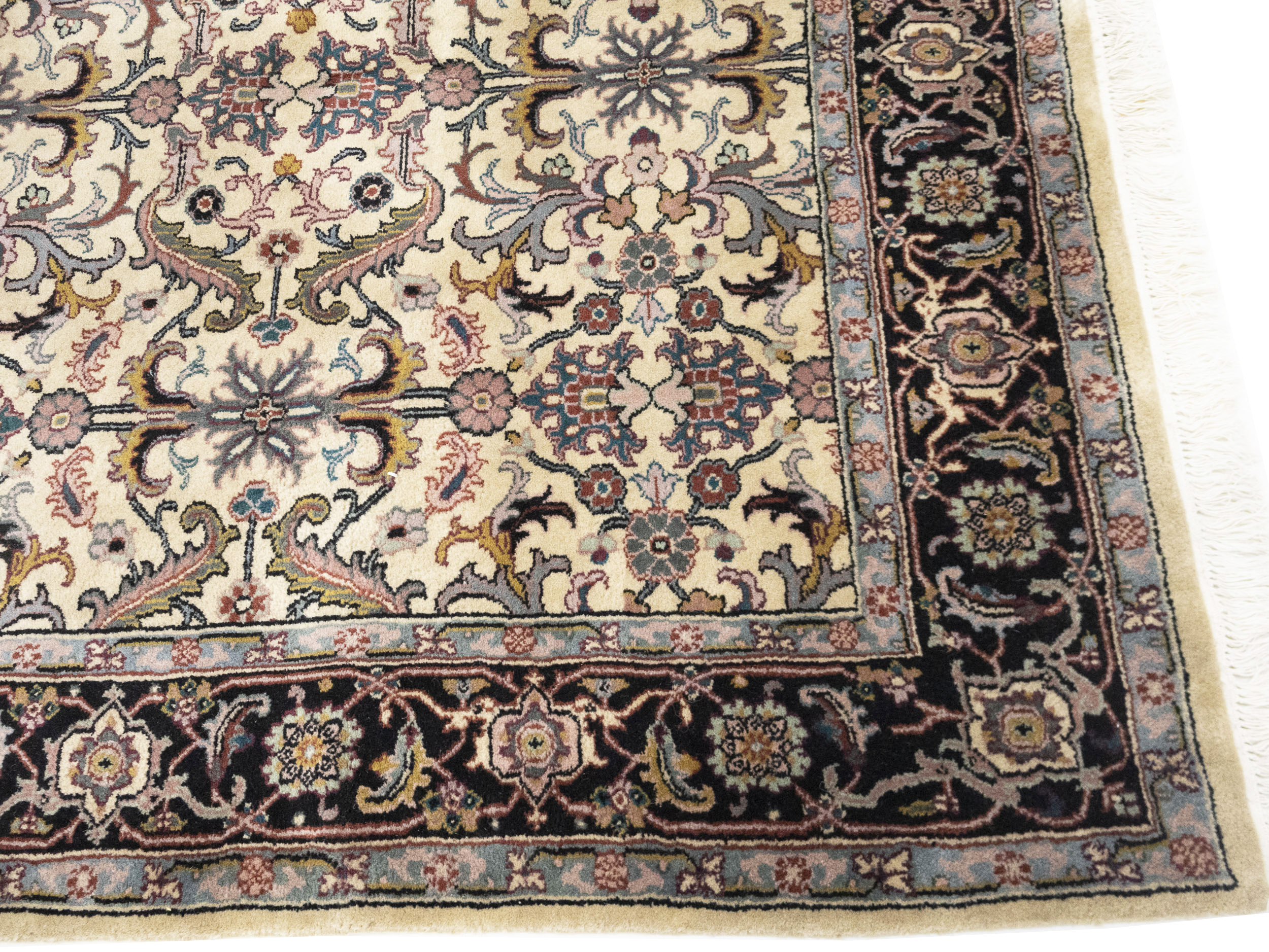 This original 5'8X8'7 Red new Oriental rug was finely knotted by the hands of weavers influenced by a variety of amazing artistic designs, to recreate the aged look of the exceptional piece with a richness of color and embellished background field. What set this vintage style Oriental area rug from the others are the material and dye used (wool pile and cotton foundation), knot count, antique designs, fantastic grades, and its regional historical connection: it has deep roots, from the story of the people who produced it to the meaning of the symbols and colors displayed across its canvas that have been praised for centuries. This Indian home décor carpet will be completely cozy and inviting that never will go out of style! Also, this Oriental rug would be among your most valuable treasures, it is a great investment that increase in value over time, and it will last a lifetime because was woven with high-quality, all-natural wool. Eco-friendly, opulent yet affordable; this rug will give you an extra pop of character to help define your home environment with luxury and warmth that will capture the eyes and attention of your audience (homeowners, designers, decorators, family and friends).