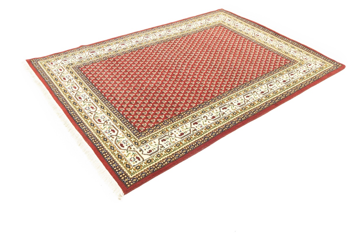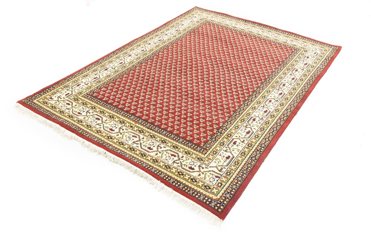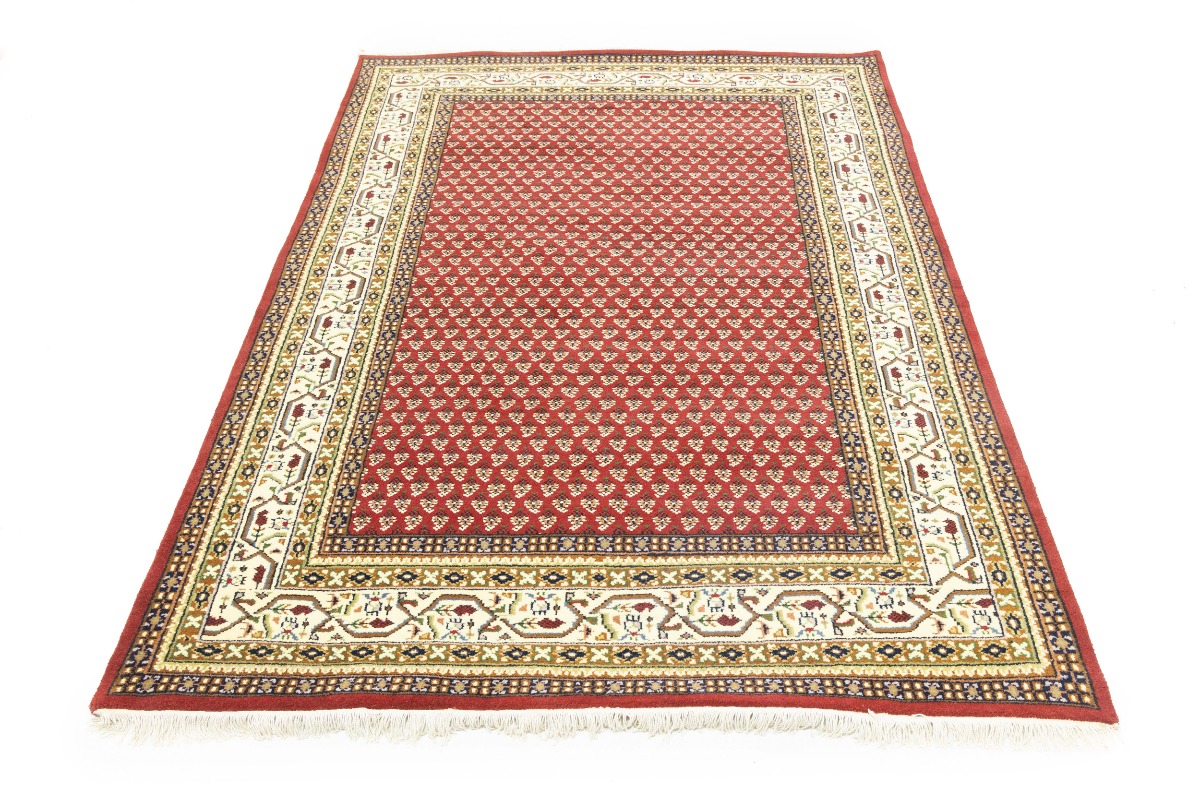 Handmade 6X8 red oriental rug made with vegetable dyes (fine wool pile and cotton foundation), exceptional knot count, and appealing ancient designs. This Oriental rug never will go out of style and would be among your most valuable treasures.