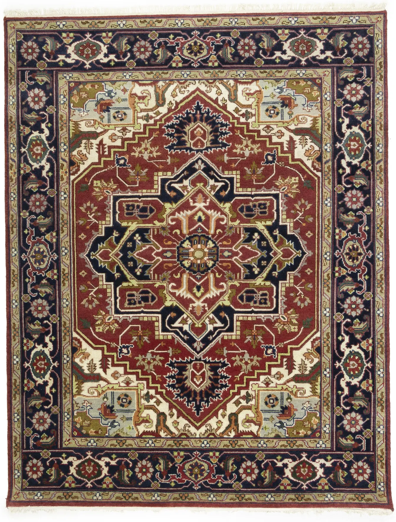 Handmade 8X10 red Oriental rug made with vegetable dyes (fine wool pile and cotton foundation), superior knot count, and appealing ancient designs. This Oriental rug/runner never will go out of style and would be among your most valuable treasures.