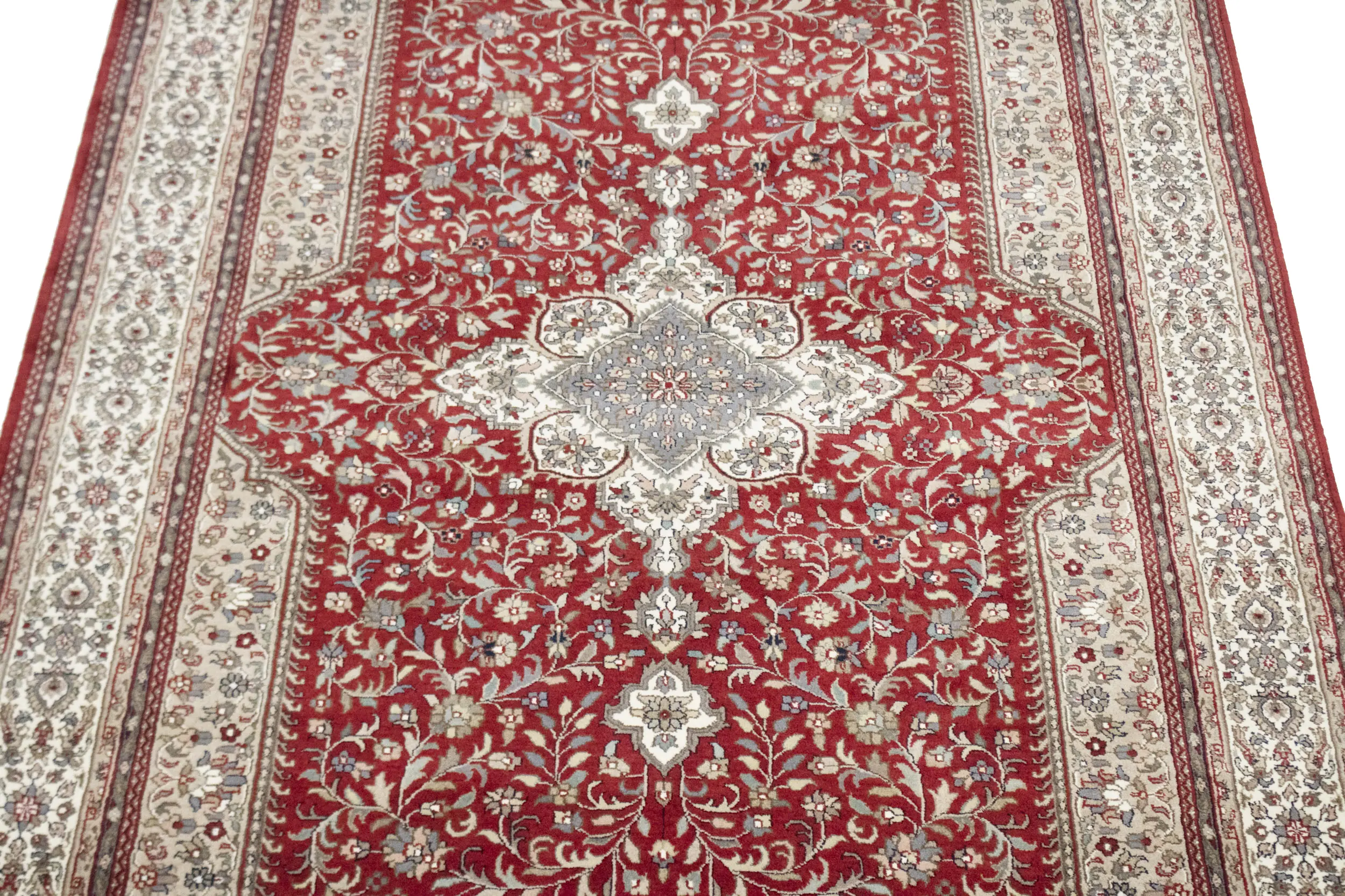 Hand Knotted 6'5X9'9 red rug made with natural dyes (fine wool pile and cotton foundation), superior knot count, and appealing ancient designs. This Oriental rug never will go out of style and would be among your most valuable treasures.