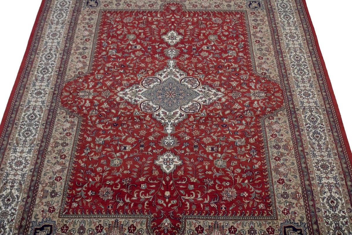 Handmade 8X11 red oriental rug made with vegetable dyes (fine wool pile and cotton foundation), superior knot count, and alluring ancient designs. This Oriental rug never will go out of style and would be among your most valuable treasures.