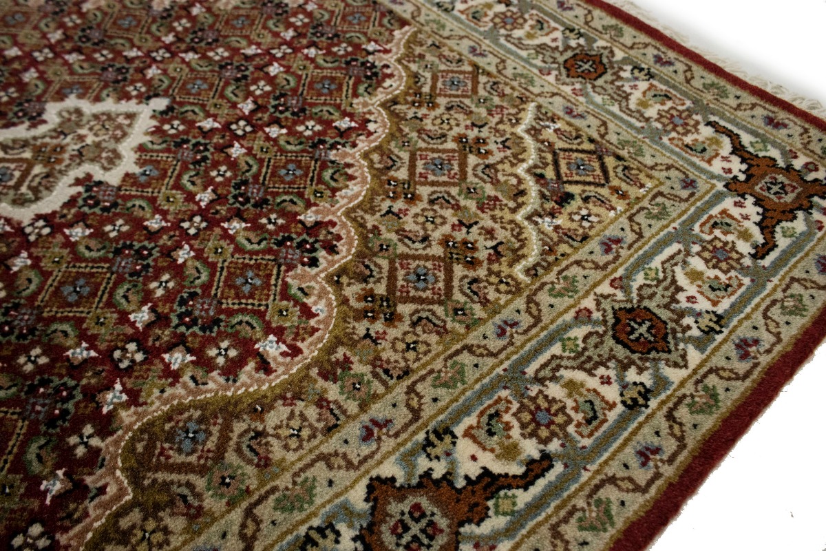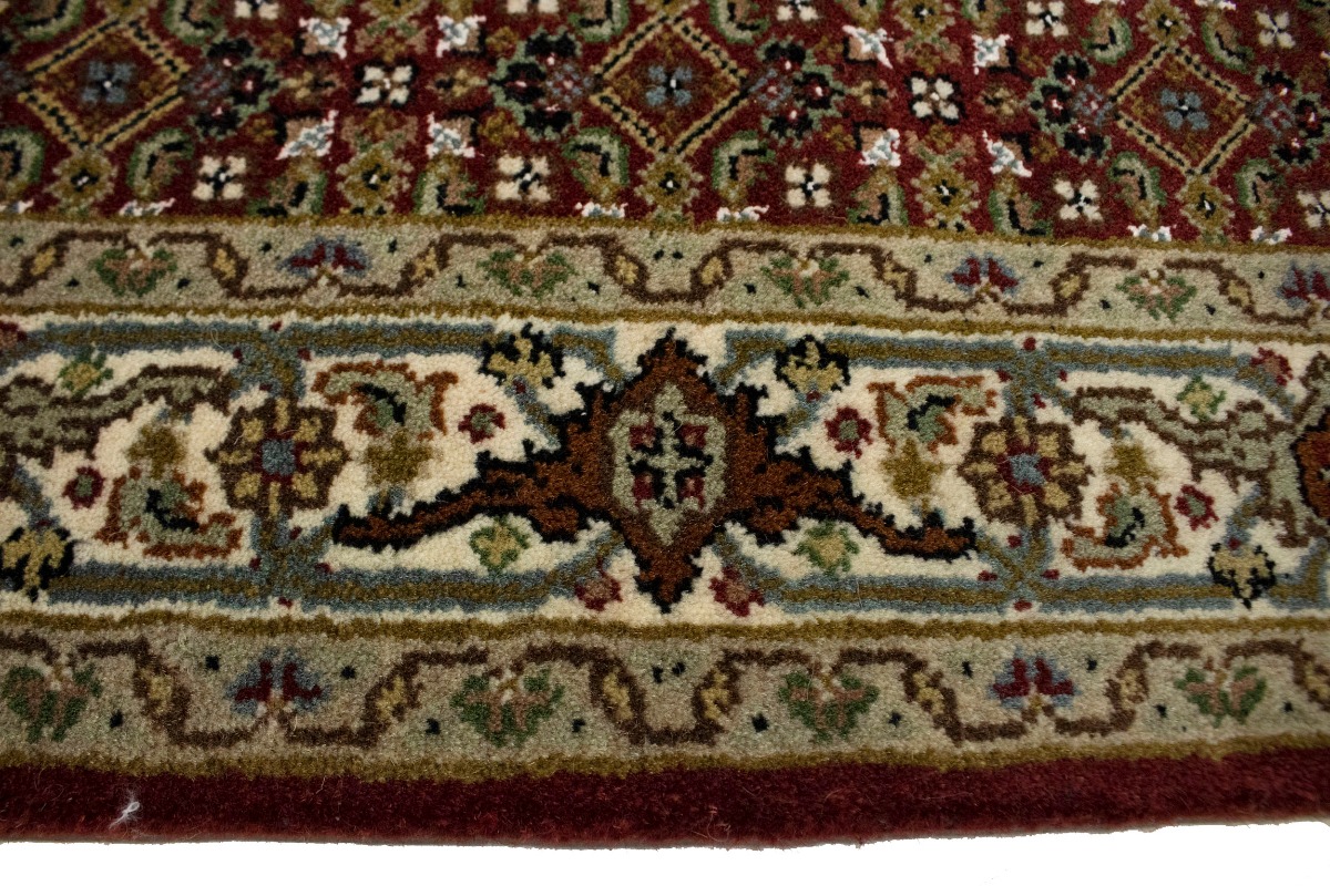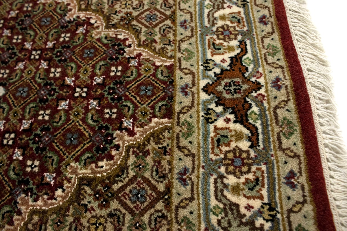 This genuine 3X5 red new Oriental rug was made by the hands of gifted weavers inspired by a variety of spectacular artistic designs, to recreate the aged look of the original piece with a richness of color and ornately patterned background field. What set this vintage style Oriental area rug from the others are the material and dye used (wool pile and cotton foundation), knot count, ancient designs, fantastic grades, and its regional historical connection: it has deep roots, from the story of the people who produced it to the meaning of the symbols and colors displayed across its canvas that have been praised for centuries. This Indian home décor carpet will be completely cozy and inviting that never will go out of style! Also, this Oriental rug would be among your most valuable treasures, it is a great investment that accrues value over time, and it will last for generations because was woven with high-quality, all-natural wool. Environmentally friendly, opulent yet affordable; this rug/runner will give you a thorough amount of character to help define your living space with elegance and warmth that will capture the eyes and attention of your audience (homeowners, designers, decorators, family and friends). OT-2442