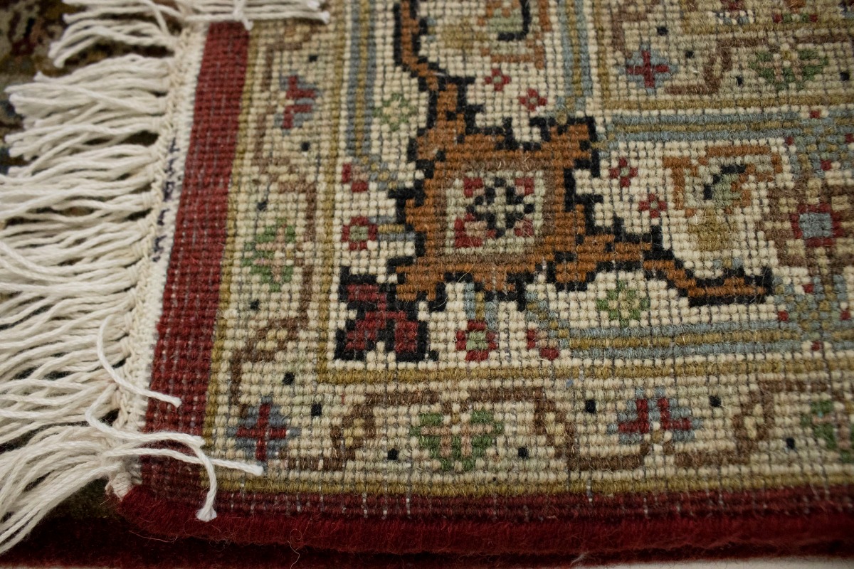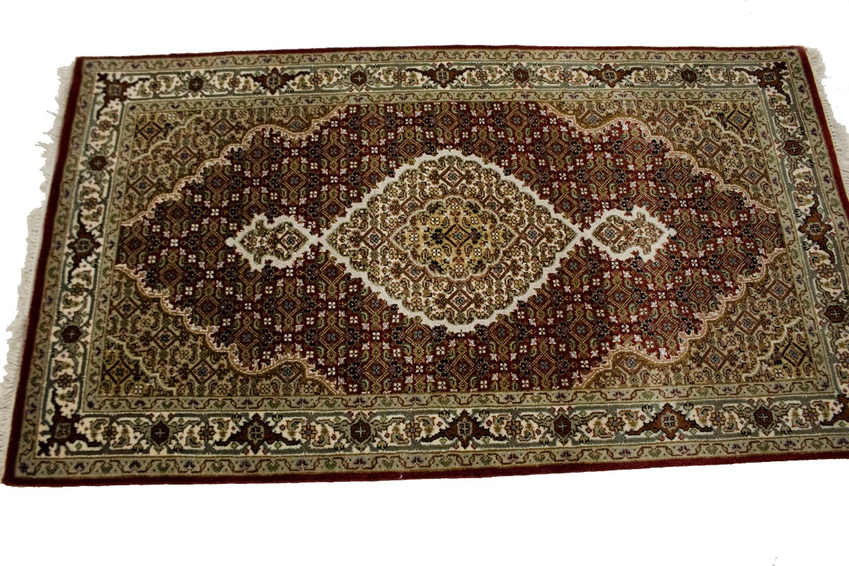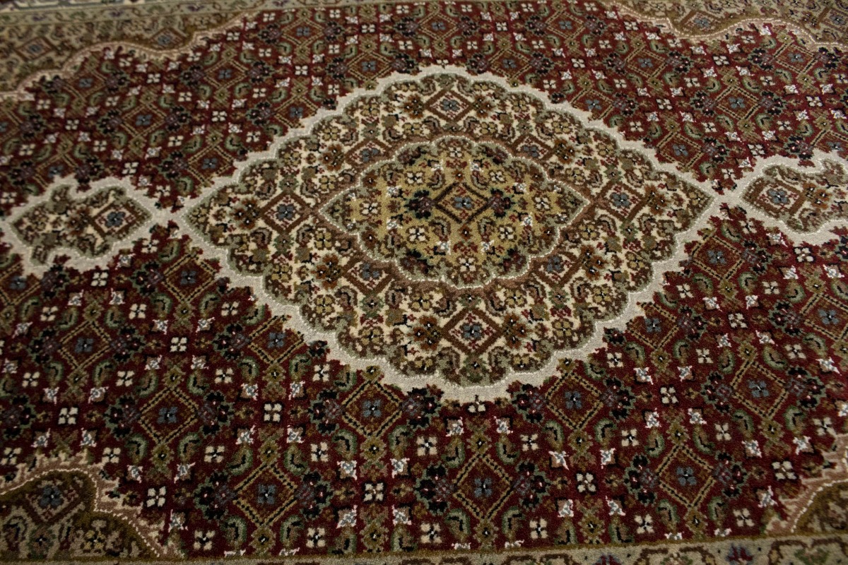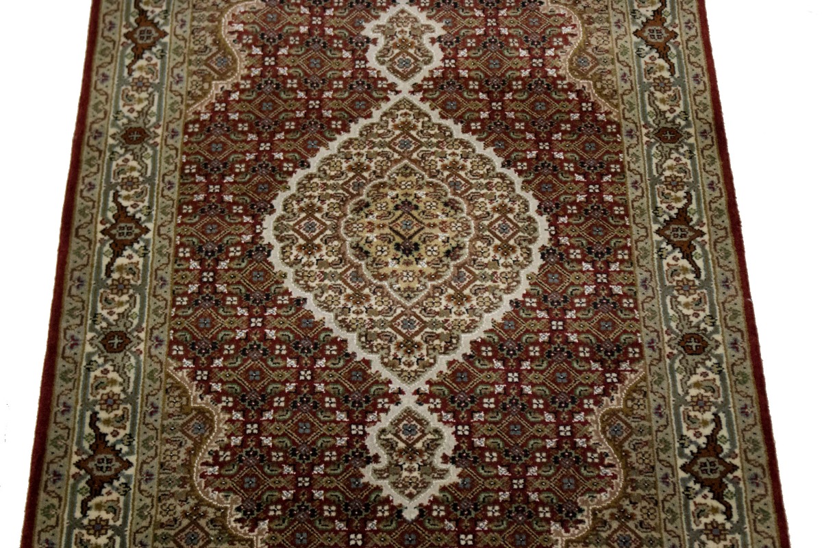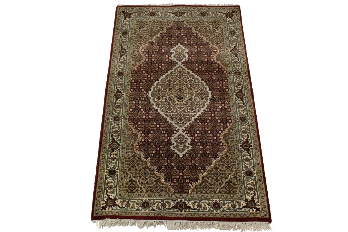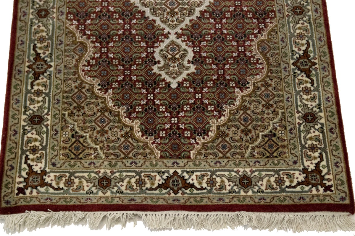 Handmade 3X5 red oriental rug made with vegetable dyes (fine wool pile and cotton foundation), superior knot count, and appealing ancient designs. This Oriental rug never will go out of style and would be among your most valuable treasures.