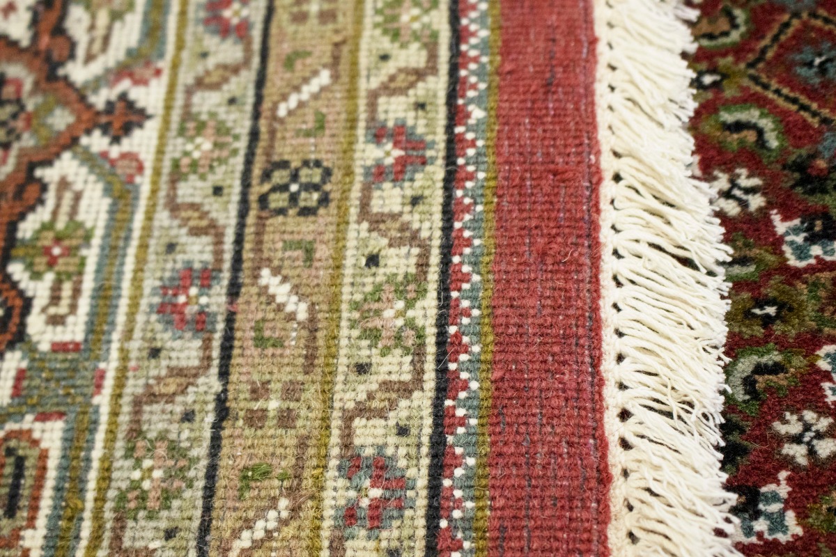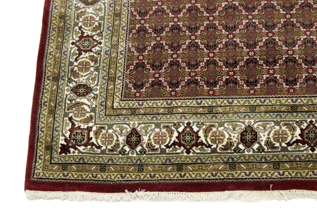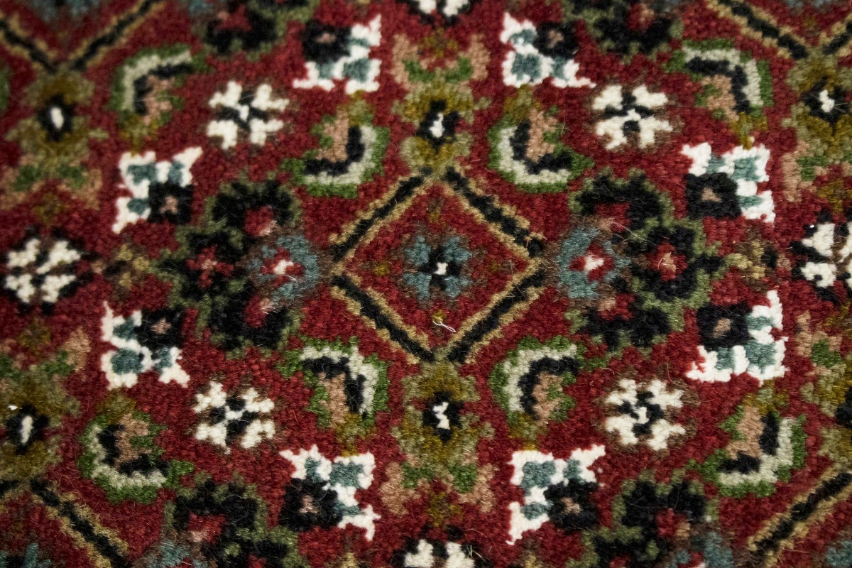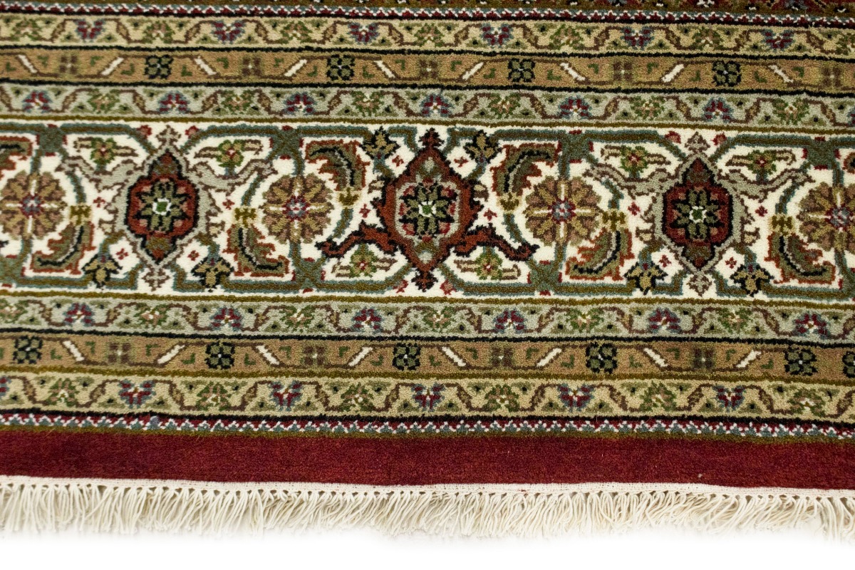 This genuine 7X8 red new Oriental rug was made by the hands of gifted weavers inspired by a variety of spectacular artistic designs, to recreate the aged look of the original piece with a richness of color and ornately patterned background field. What set this vintage style Oriental area rug from the others are the material and dye used (wool pile and cotton foundation), knot count, ancient designs, fantastic grades, and its regional historical connection: it has deep roots, from the story of the people who produced it to the meaning of the symbols and colors displayed across its canvas that have been praised for centuries. This Indian home décor carpet will be completely cozy and inviting that never will go out of style! Also, this Oriental rug would be among your most valuable treasures, it is a great investment that accrues value over time, and it will last for generations because was woven with high-quality, all-natural wool. Environmentally friendly, opulent yet affordable; this rug/runner will give you a thorough amount of character to help define your living space with elegance and warmth that will capture the eyes and attention of your audience (homeowners, designers, decorators, family and friends). OT-2453