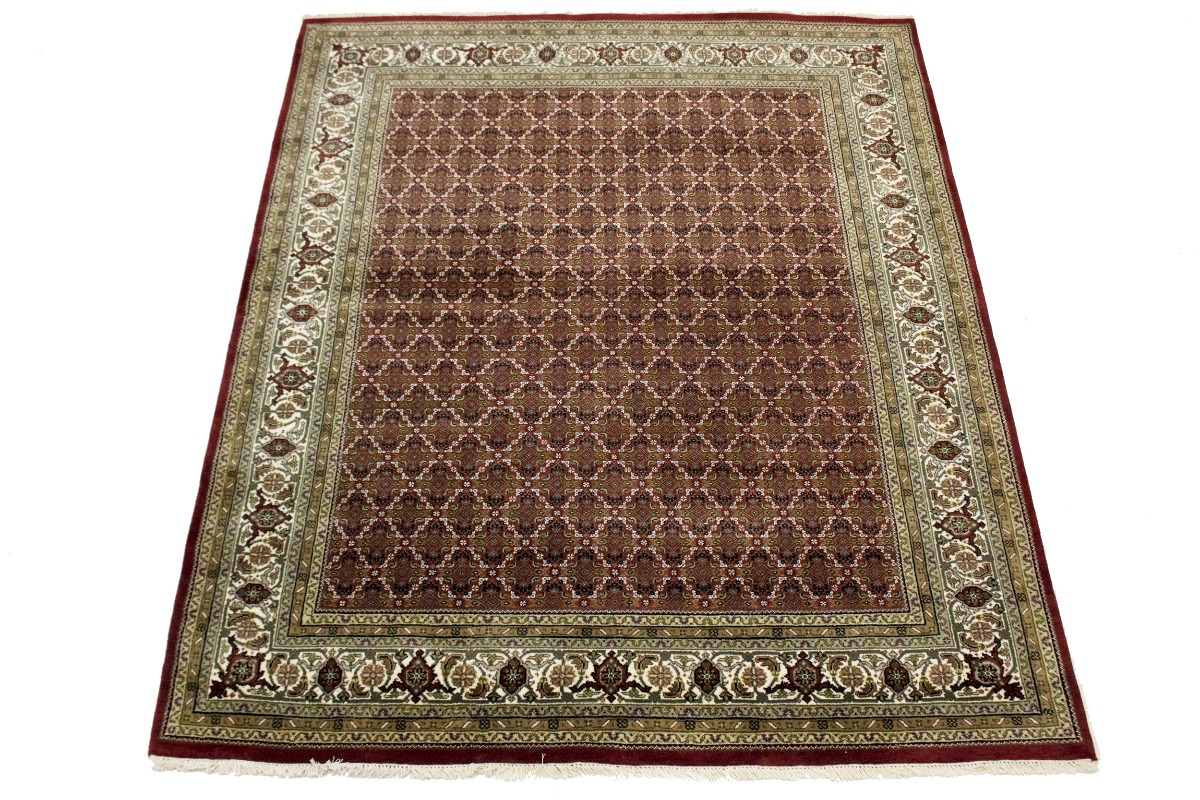 Handmade 7X8 red oriental rug made with vegetable dyes (fine wool pile and cotton foundation), superior knot count, and appealing ancient designs. This Oriental rug never will go out of style and would be among your most valuable treasures.
