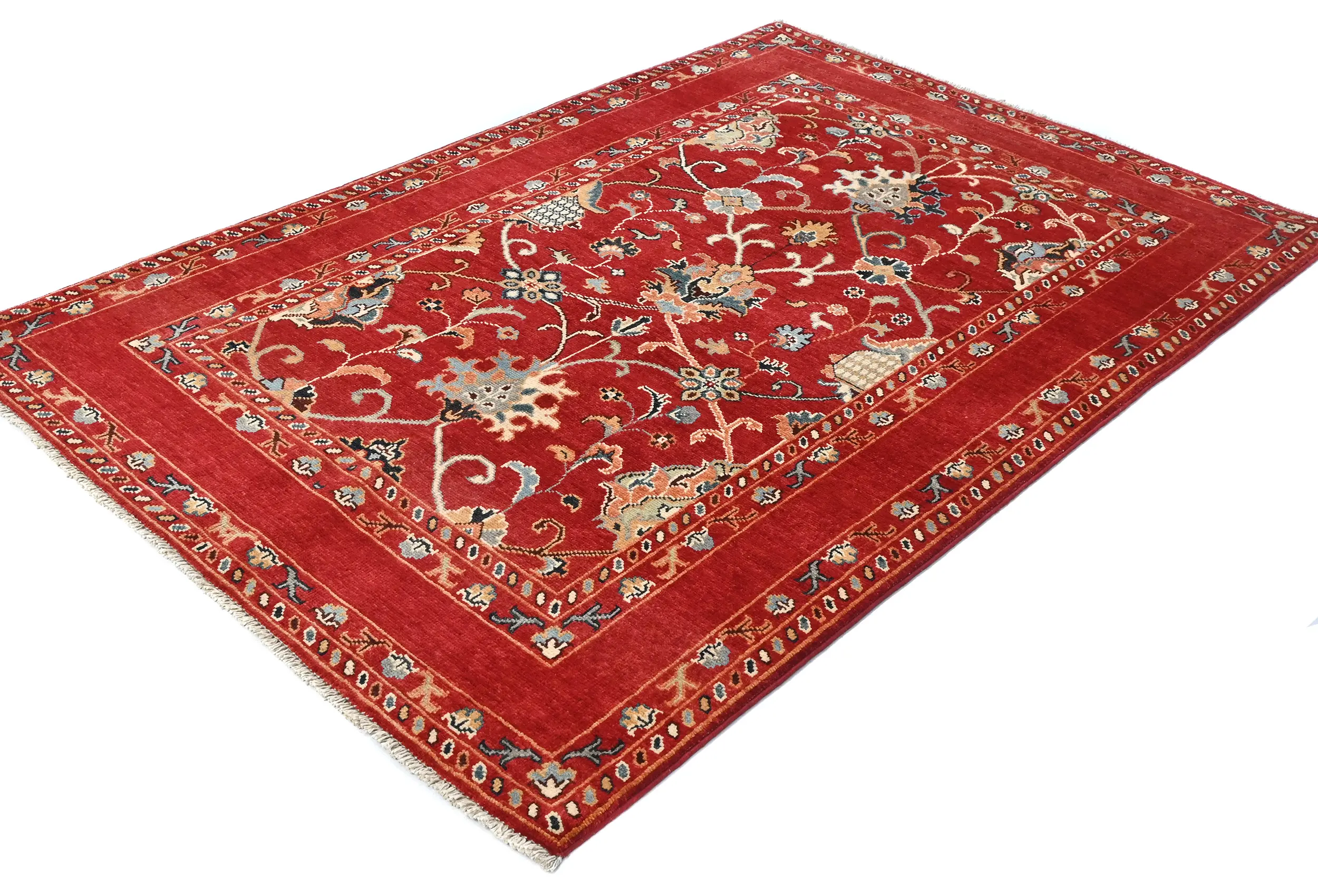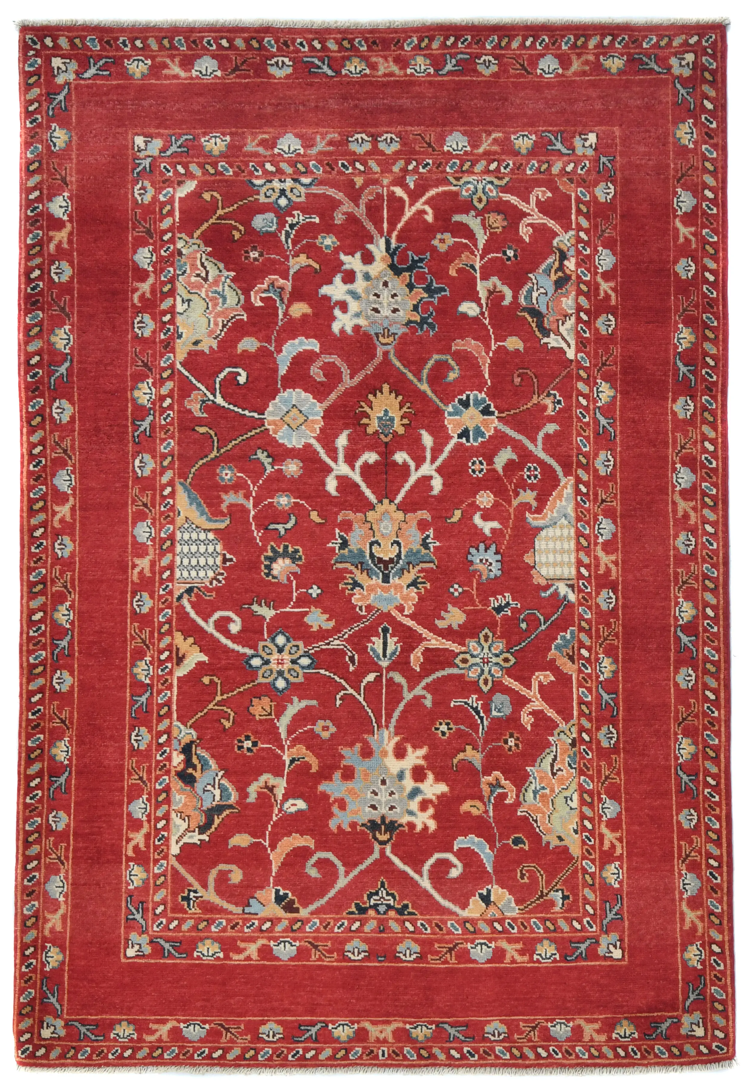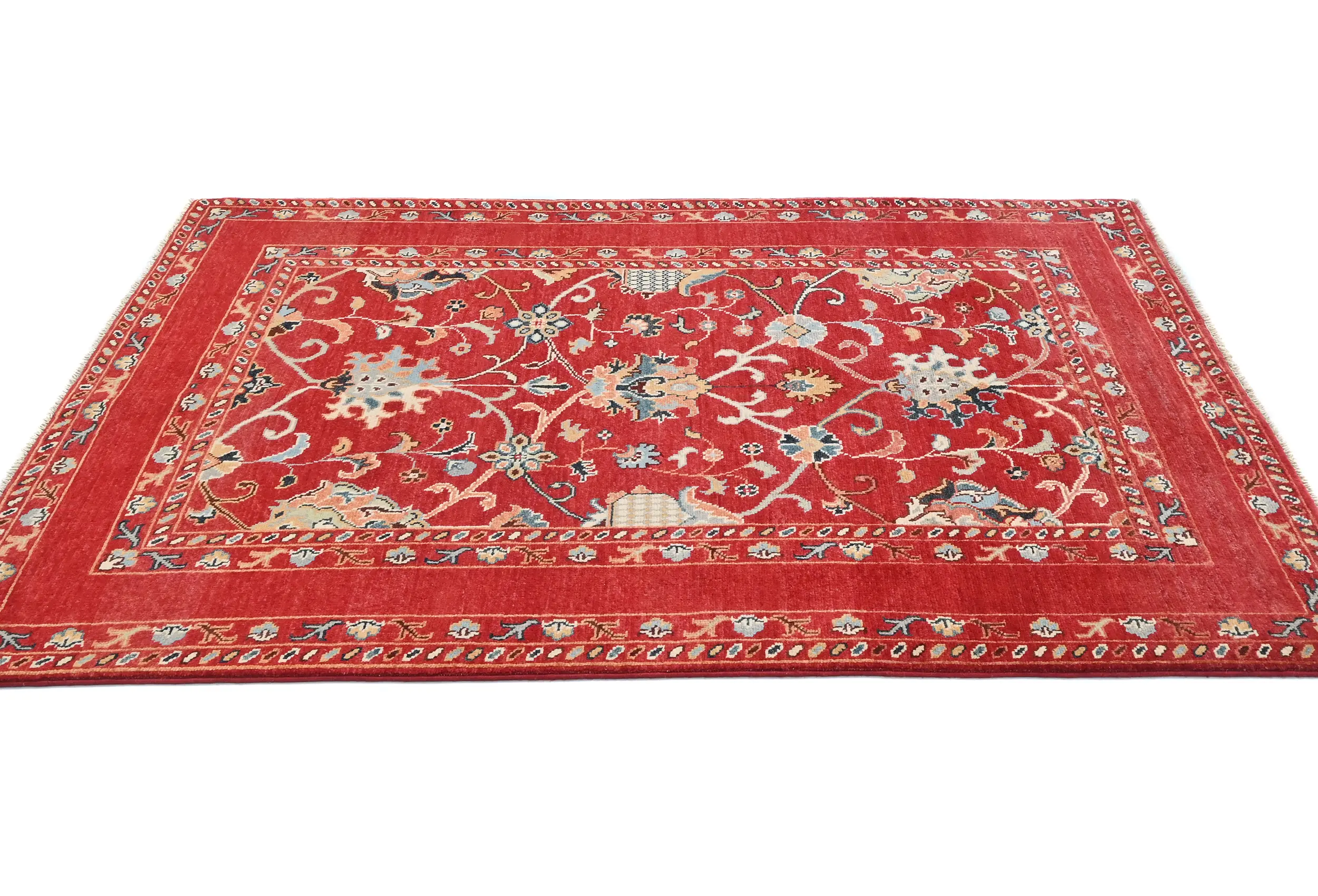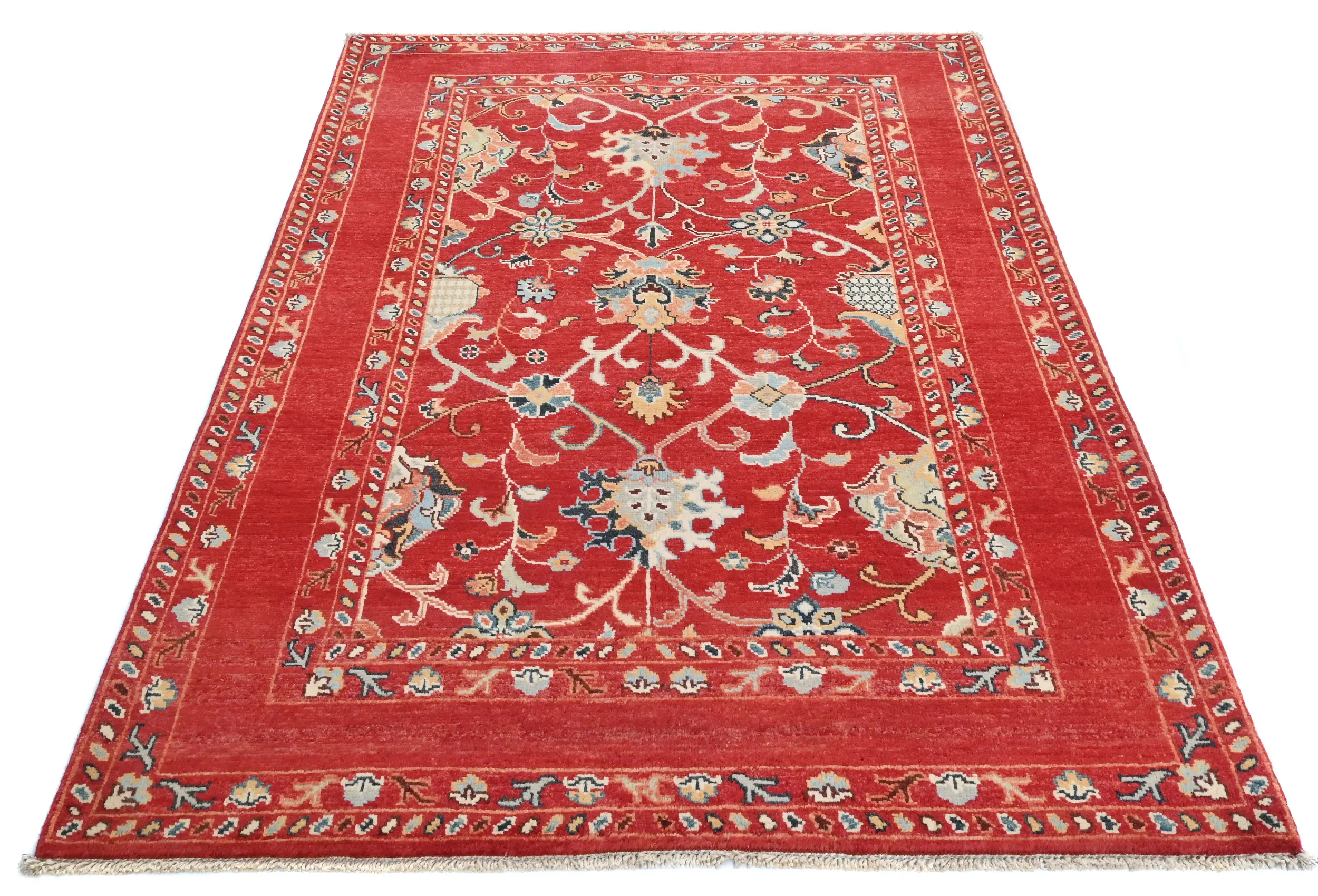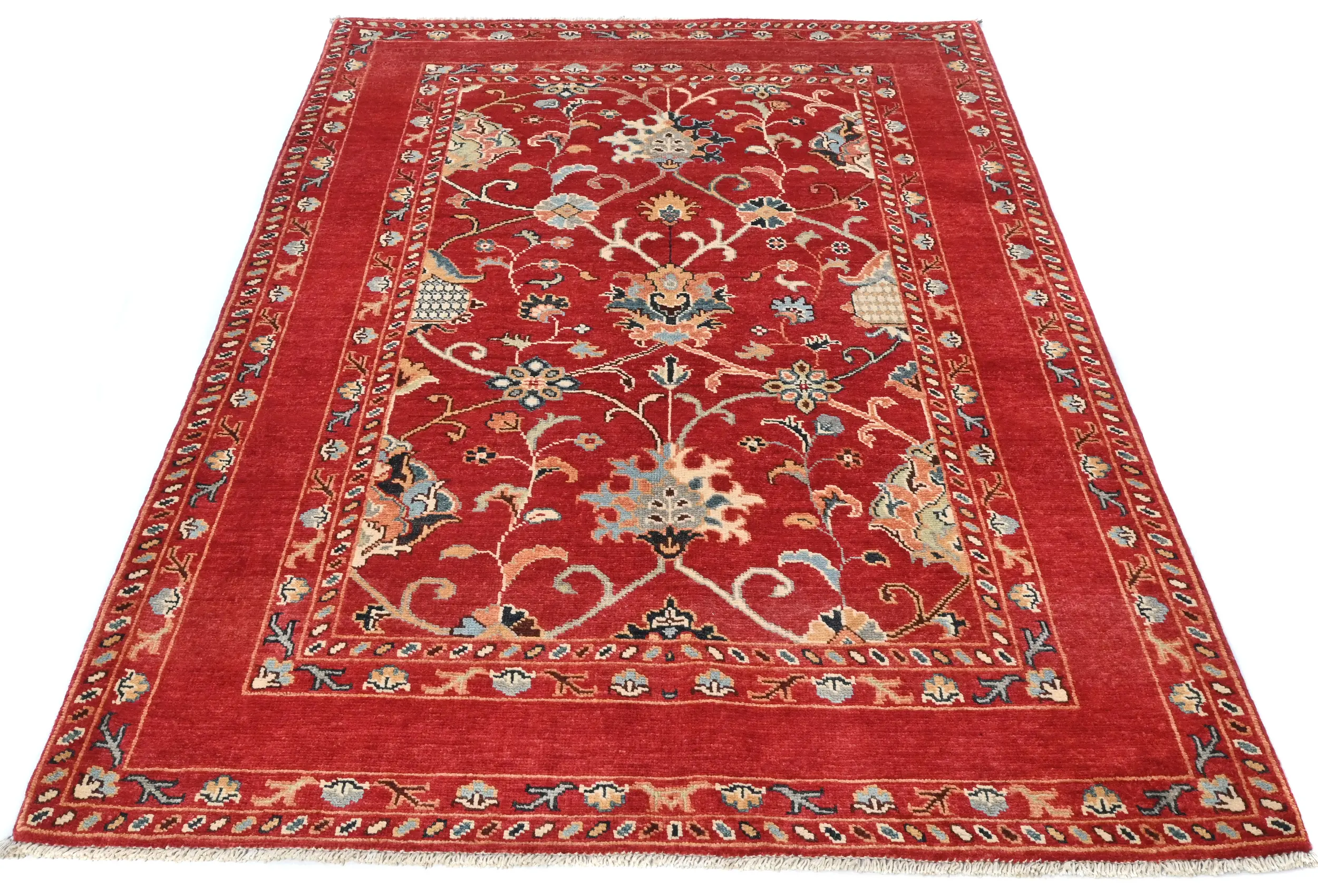 Red Floral Modern 4X6 Kazak Oushak Pakistan Rug