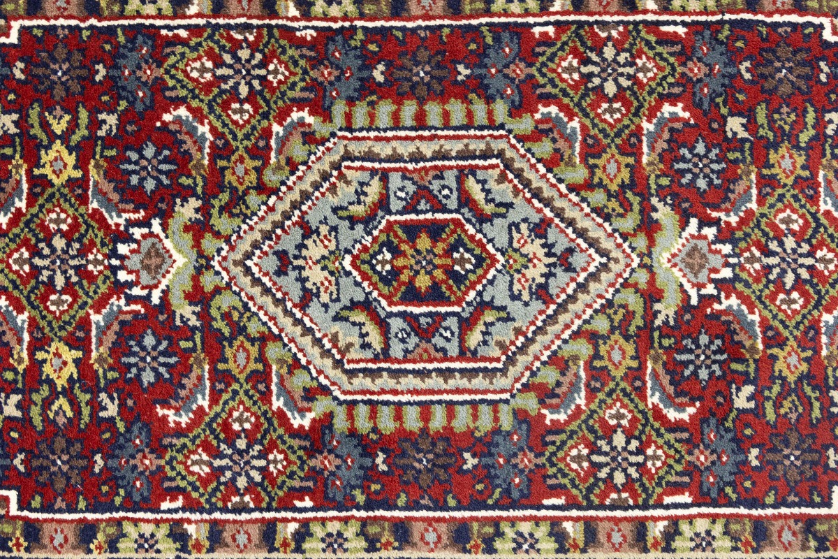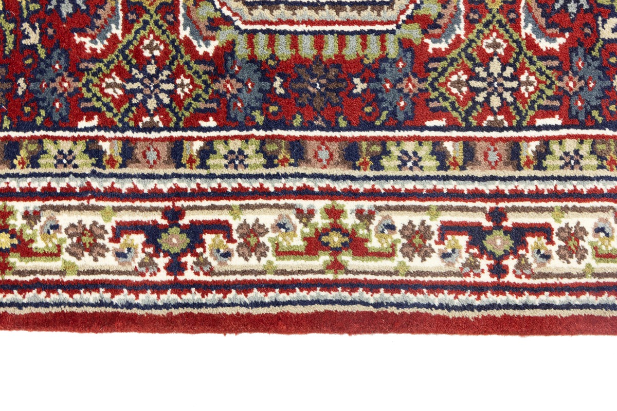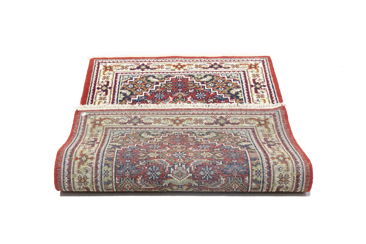 This genuine 3'2X5'4 red new Oriental rug was made by the hands of gifted weavers inspired by a variety of spectacular artistic designs, to recreate the aged look of the original piece with a richness of color and ornately patterned background field. What set this vintage style Oriental area rug from the others are the material and dye used (wool pile and cotton foundation), knot count, ancient designs, fantastic grades, and its regional historical connection: it has deep roots, from the story of the people who produced it to the meaning of the symbols and colors displayed across its canvas that have been praised for centuries. This Indian home décor carpet will be completely cozy and inviting that never will go out of style! Also, this Oriental rug would be among your most valuable treasures, it is a great investment that accrues value over time, and it will last for generations because was woven with high-quality, all-natural wool. Environmentally friendly, opulent yet affordable; this rug will give you a thorough amount of character to help define your living space with elegance and warmth that will capture the eyes and attention of your audience (homeowners, designers, decorators, family and friends). OT-8599