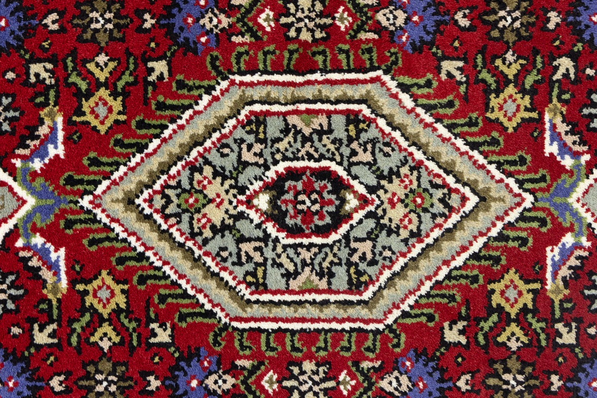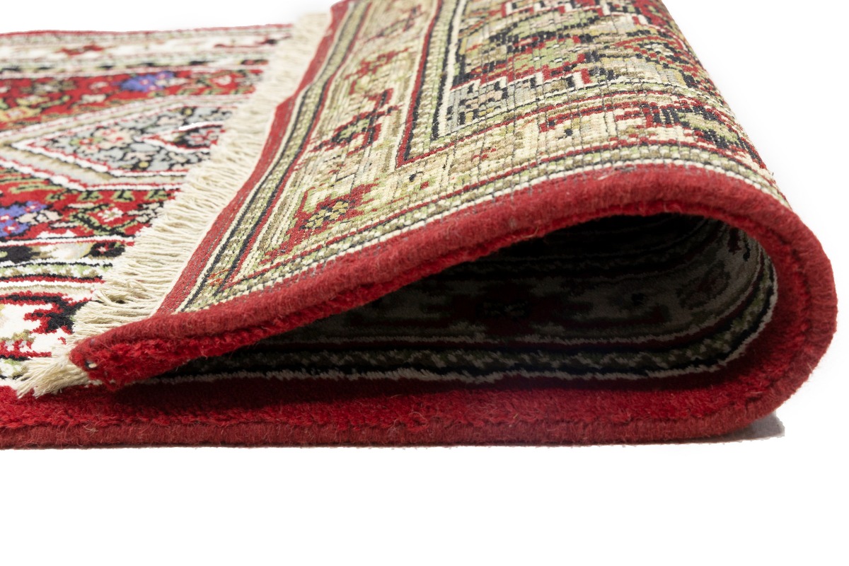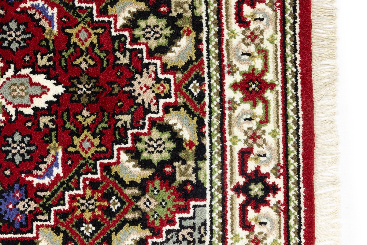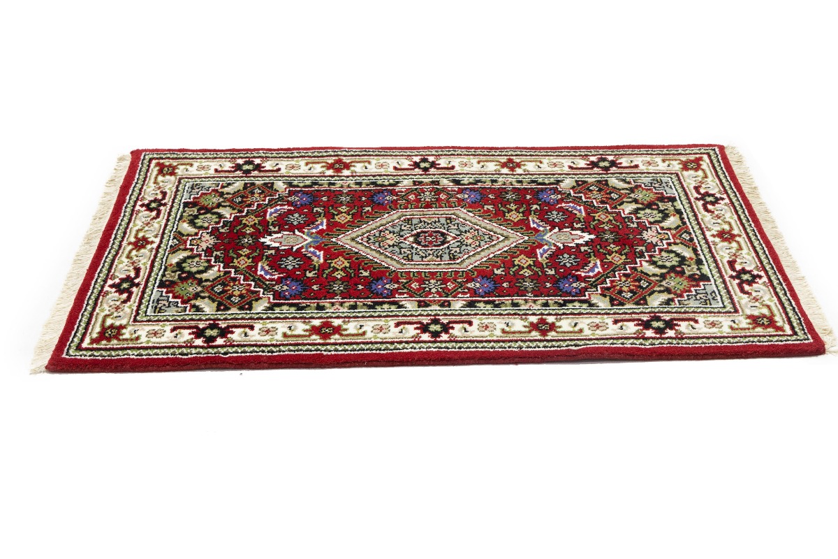 This genuine 3'2X5'6 red new Oriental rug was made by the hands of gifted weavers inspired by a variety of spectacular artistic designs, to recreate the aged look of the original piece with a richness of color and ornately patterned background field. What set this vintage style Oriental area rug from the others are the material and dye used (wool pile and cotton foundation), knot count, ancient designs, fantastic grades, and its regional historical connection: it has deep roots, from the story of the people who produced it to the meaning of the symbols and colors displayed across its canvas that have been praised for centuries. This Indian home décor carpet will be completely cozy and inviting that never will go out of style! Also, this Oriental rug would be among your most valuable treasures, it is a great investment that accrues value over time, and it will last for generations because was woven with high-quality, all-natural wool. Environmentally friendly, opulent yet affordable; this rug will give you a thorough amount of character to help define your living space with elegance and warmth that will capture the eyes and attention of your audience (homeowners, designers, decorators, family and friends). OT-8598