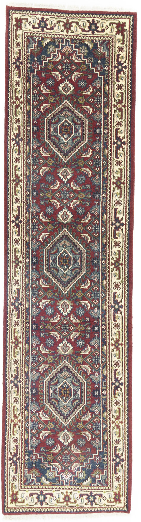 This authentic 3X10 red new Oriental runner was crafted by the hands of skilled weavers enthused by a variety of lovely artistic designs, to recreate the aged look of the unique piece with a richness of color and beautifully elaborated background field. What set this vintage style Oriental area runner from the others are the material and dye used (wool pile and cotton foundation), knot count, ancient designs, fantastic grades, and its regional historical connection: it has deep roots, from the story of the people who produced it to the meaning of the symbols and colors displayed across its canvas that have been praised for centuries. This Indian home décor carpet will be completely cozy and inviting that never will go out of style! Also, this Oriental rug would be among your most valuable treasures, it is a great investment that increase in value over time, and it will last for generations because was woven with high-quality, all-natural wool. Environmentally friendly, opulent yet affordable; this runner will give you a thorough amount of character to help define your living space with sophistication and warmth that will capture the eyes and attention of your audience (homeowners, designers, decorators, family and friends). OT-8680