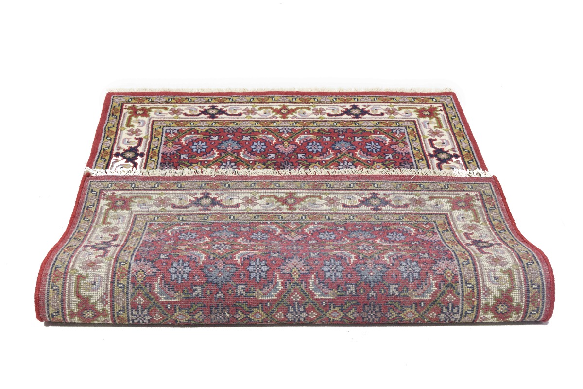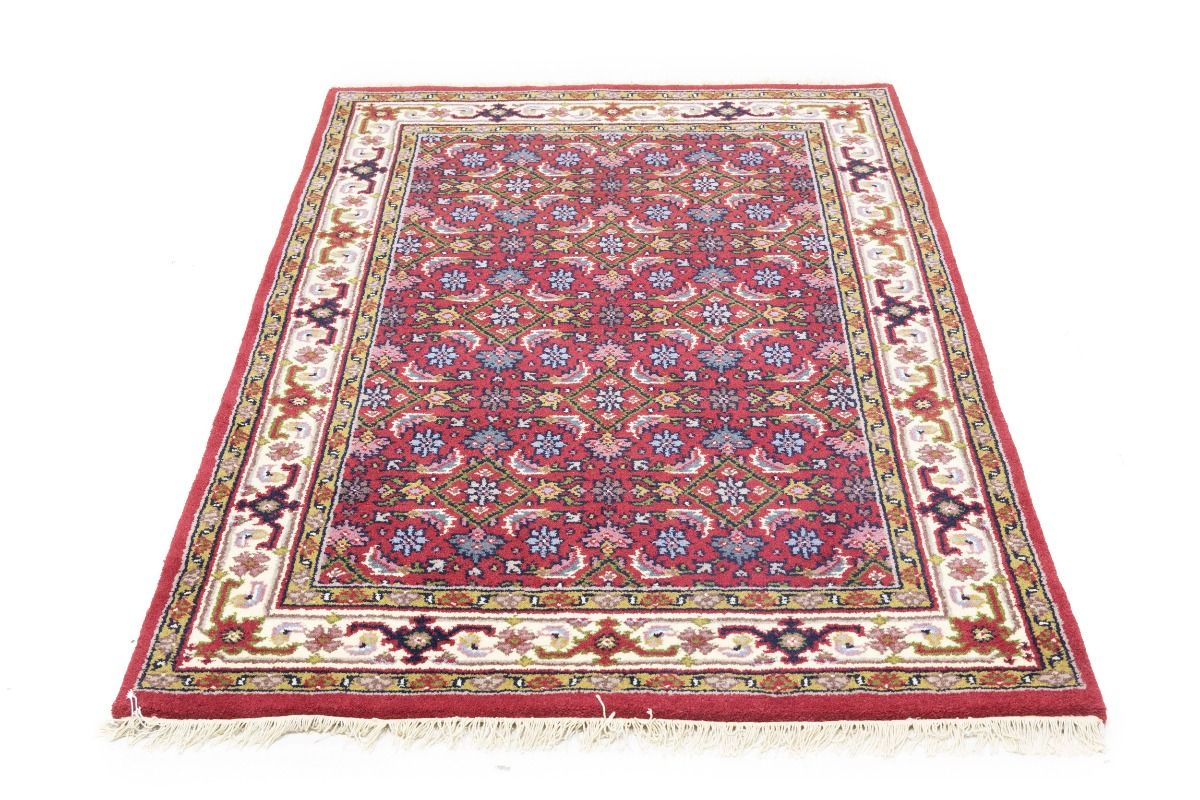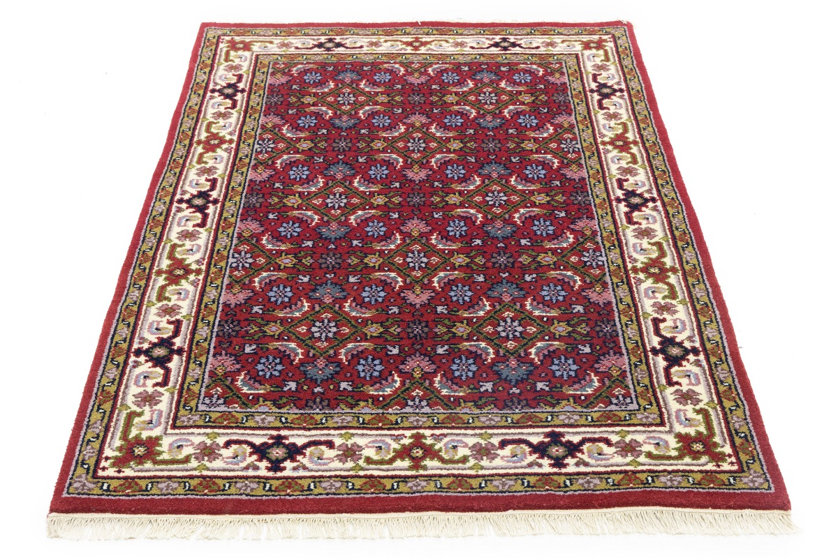 Handmade 4X6 red oriental rug made with vegetable dyes (fine wool pile and cotton foundation), exceptional knot count, and appealing ancient designs. This Oriental rug never will go out of style and would be among your most valuable treasures.