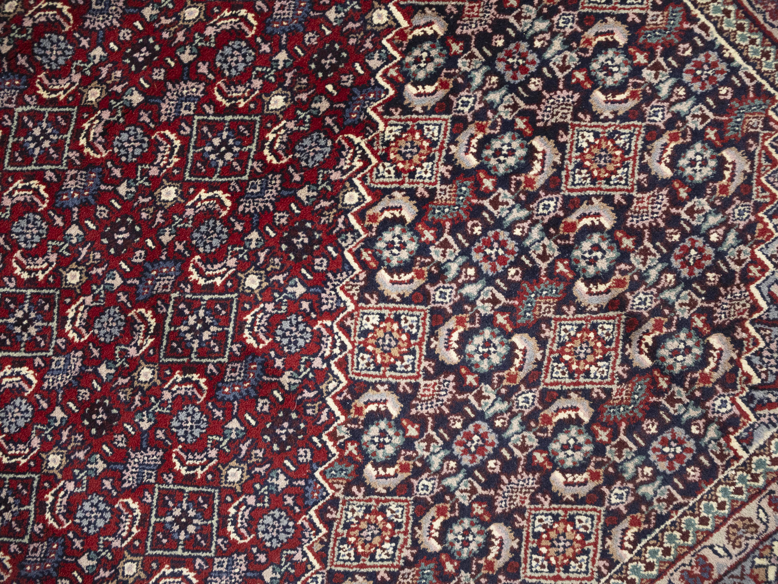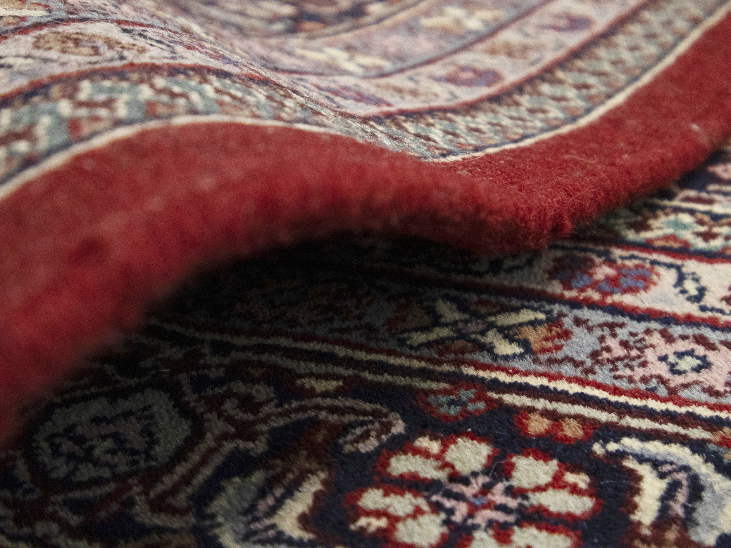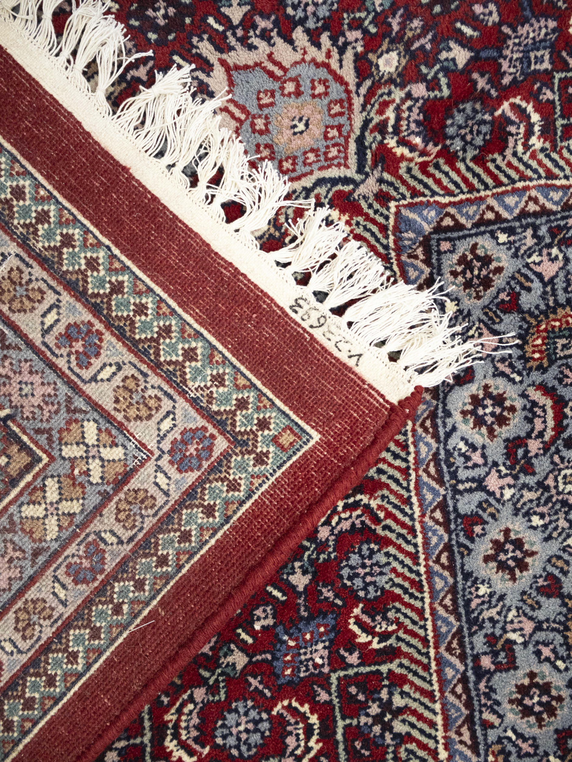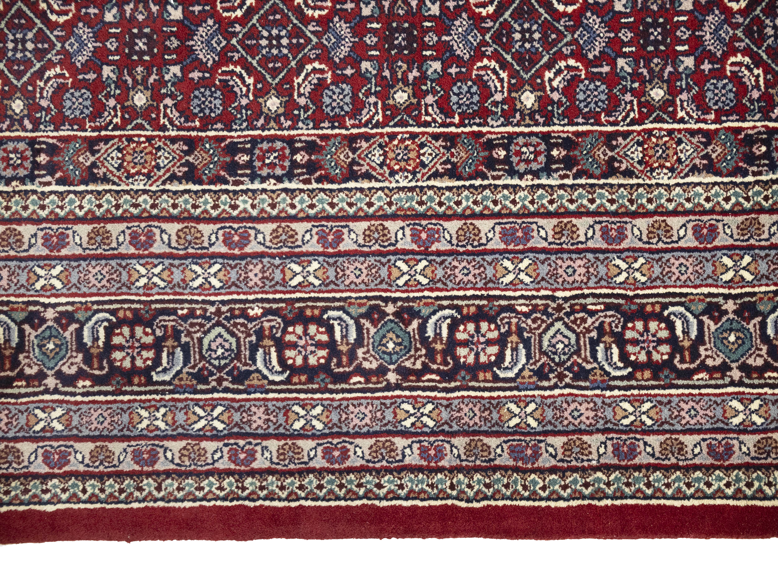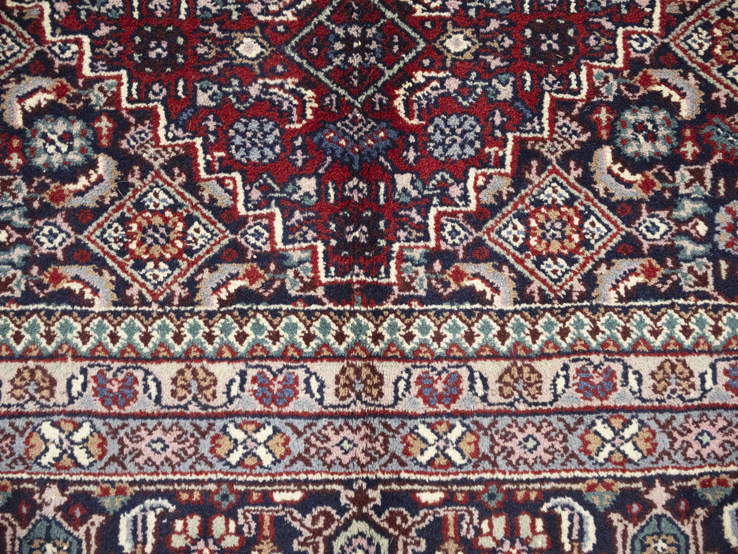 Handmade 8'6X11'6 red oriental rug made with vegetable dyes (fine wool pile and cotton foundation), exceptional knot count, and appealing ancient designs. This Oriental rug never will go out of style and would be among your most valuable treasures.
