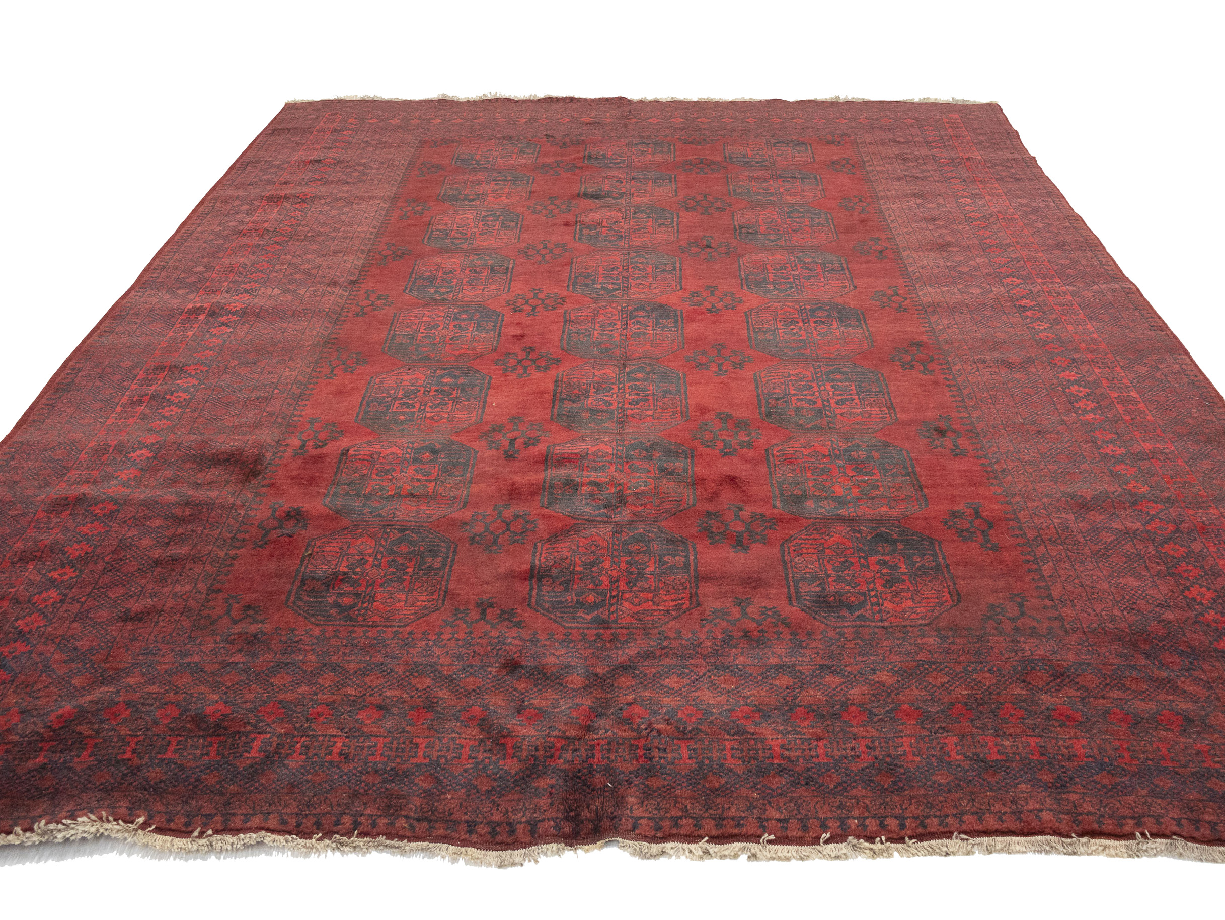 Red Floral Tribal 9'5X11'7 Afghan Herati Vintage Oriental Rug