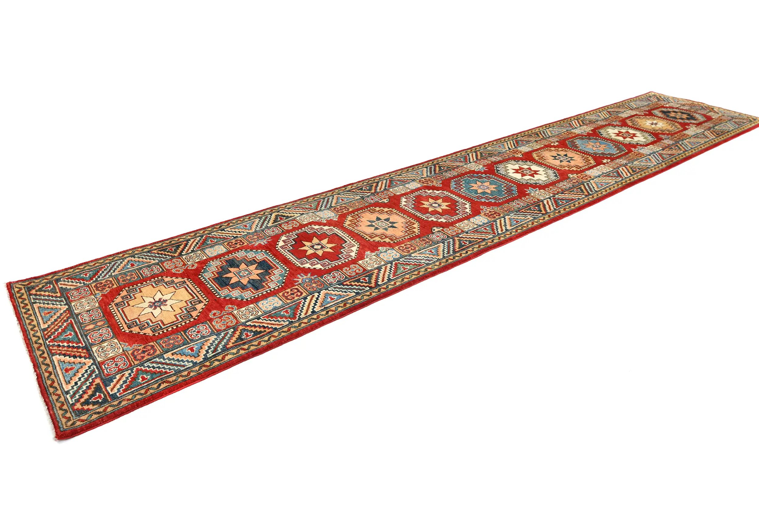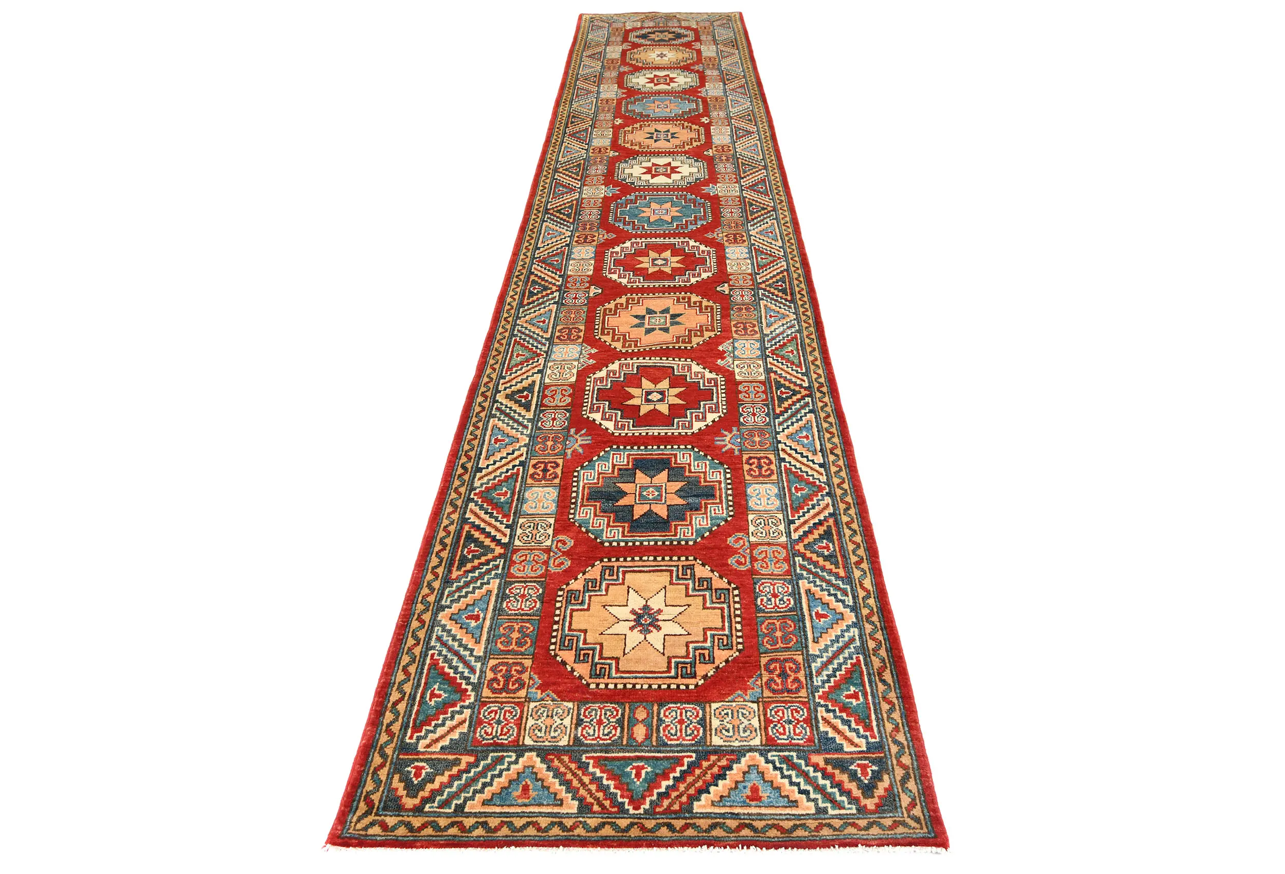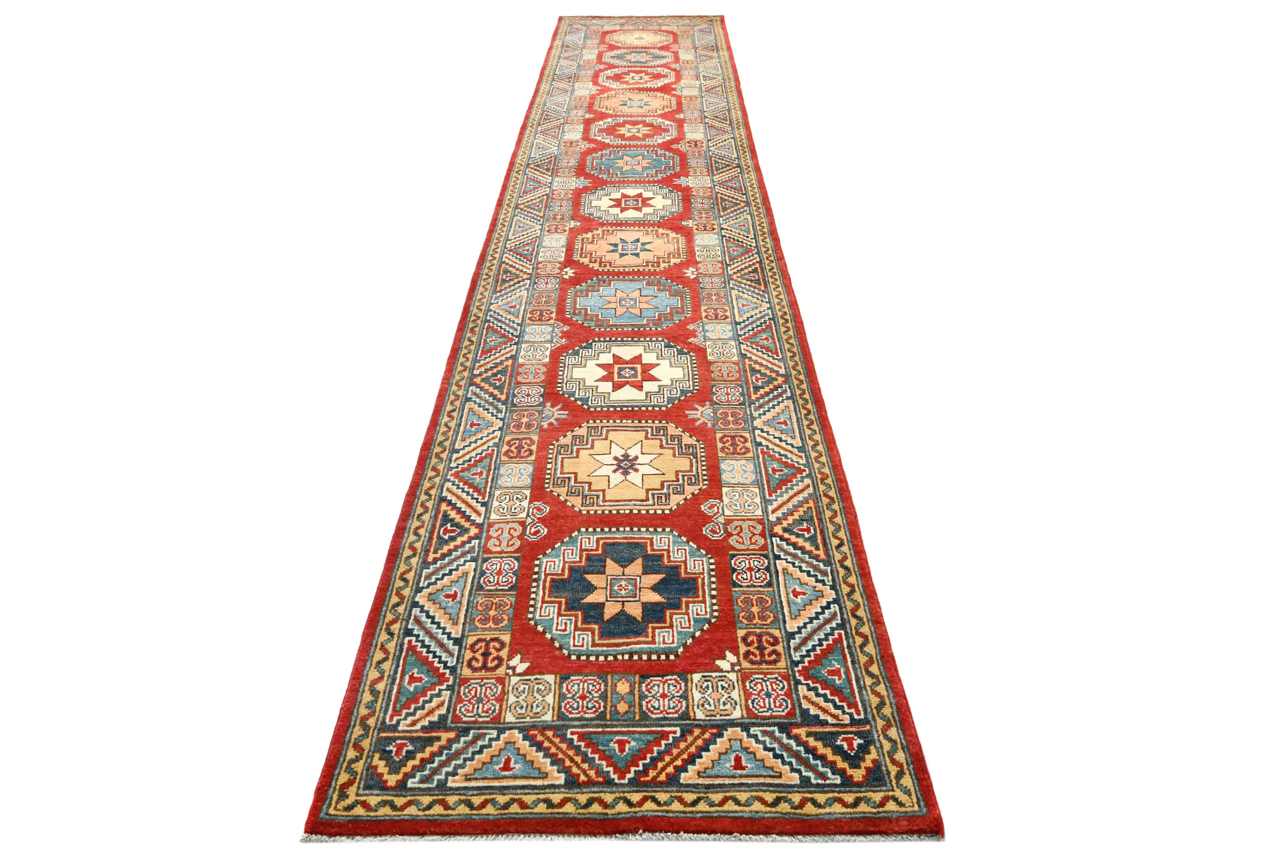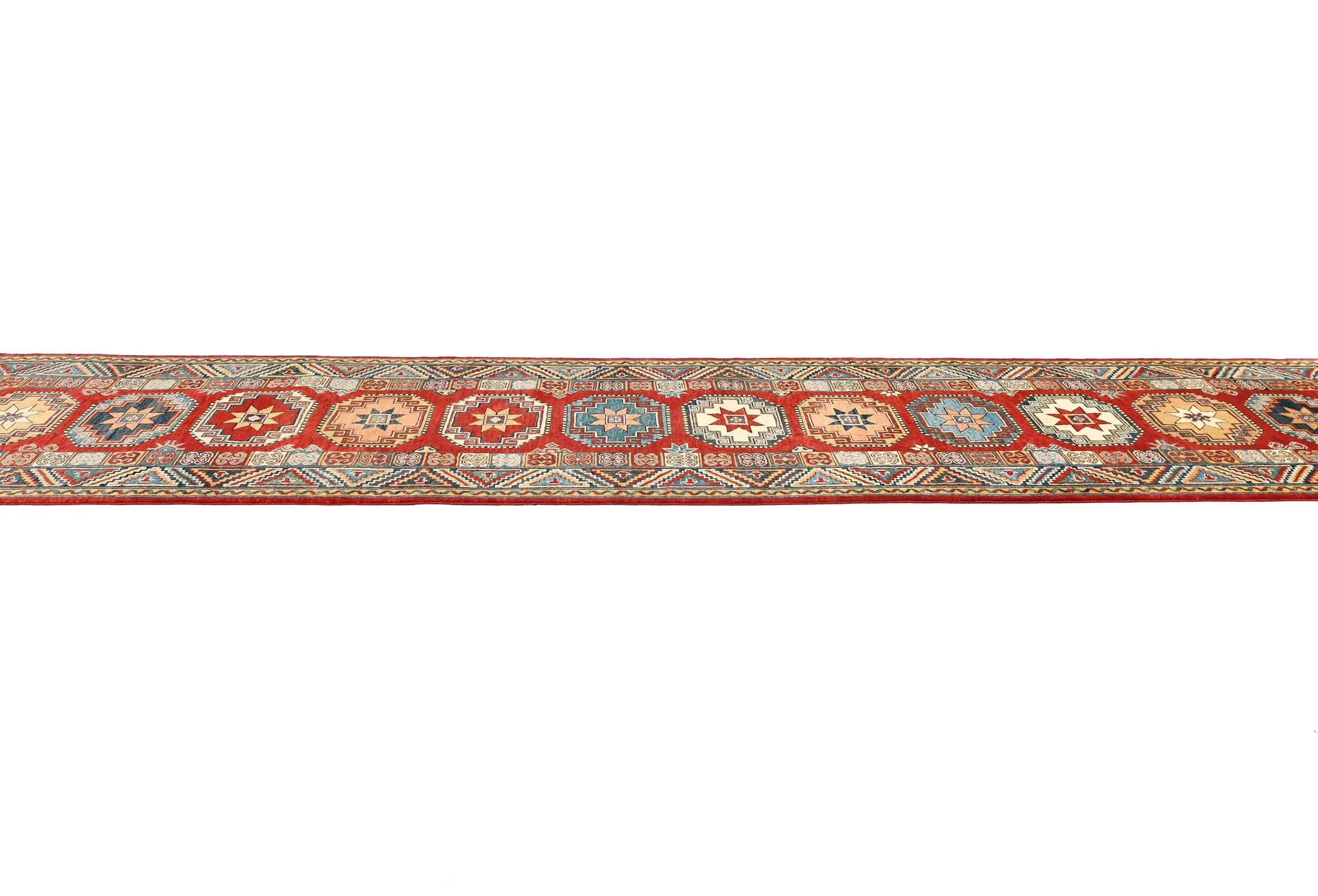 Red Geometric 2'8X13'5 Kazak Oriental Runner Rug